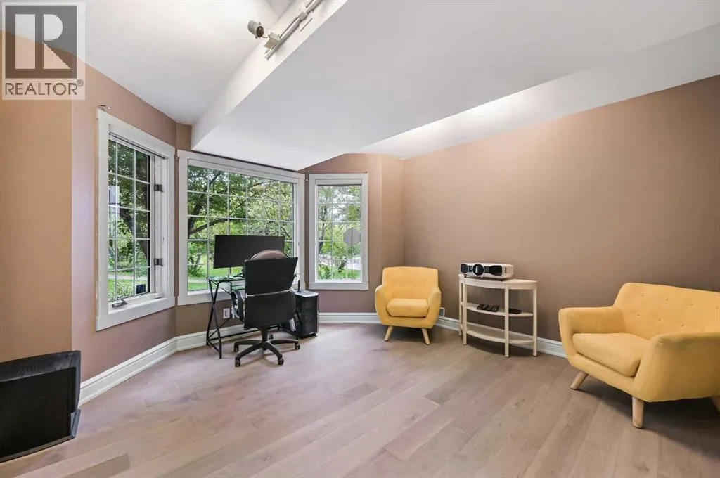 This Executive Townhome offers an elegant & updated living experience in a UNIQUE INNER-CITY LOCATION, FRONTING DIRECTLY ONTO BUCKMASTER PARK. Upon entering, you are welcomed by a ground-floor entrance, with a conveniently tucked away Powder Room, dual entry with the Garage & a Bedroom which is currently being used as a beautiful media room. Its spaciousness offers versatile possibilities as an office, library, study, or guest room.The Second Level features an open-concept layout with natural light flooding throughout. Great view of the Park from every window! It boasts a large living room with a cozy fireplace & a separate dining room, which seamlessly flows into a very big, bright, & beautiful kitchen. The kitchen offers partial city view & is equipped with NEW QUARTZ COUNTERTOPS, NEW BACKSPLASH, NEW REFRIGERATOR, NEW MICROWAVE, NEW KITCHEN SINK & FAUCET. Enjoy here the convenience of Main Floor Laundry together with a breakfast nook leading to a good-sized private balcony/Deck with partial city view. BBQ GAS LINE. The Entire floor features Exquisite CROWN MOUNDLING & BUILT-INS plus NEW HARDWOOD FLOORING, which extends from the Main level all the way up to the upper levels excluding the bedrooms. Moving upstairs, you'll find a very large & bright level with abundant windows, ensuring plenty of natural light. The upper floor consists of a Large Primary Bedroom that accommodates a King size bed, Walk-in-Closet & your own private four-piece ensuite plus a 2nd large bedroom with an additional three-piece bathroom. The curtains in the kids' room have been replaced with high-end, neutral curtains that we think will be appreciated even more! This second bedroom also features a Juliette balcony overlooking the Park for endless hours of tranquilty & beauty. This modern FRESHLY PAINTED 1855sq ft residence has been meticulously renovated with contemporary finishes, allowing you to Move In immediately & enjoy the home & its surroundings. Updates in recent years include NEWER ROOF(2016), HOT WATER TANK (2019), WATER LINES (2021), NEW HARDWOOD FLOORING(2024), NEW TOILET(Sept 2025), & ALL THE AFOREMENTIONED KITCHEN UPGRADES DONE IN SEPT 2025. Beautiful Home with FLAT CEILINGS through out,also comes with the luxury of a DOUBLE REAR ATTACHED GARAGE!. Location is truly paramount here, right across from Buckmaster Park & overlooking downtown Calgary. It's a prime inner-city location within minutes of downtown, with close walking distance to shops & restaurants along 17th Avenue SW. This immaculate townhome in the sought after community of Bankview offers the perfect blend of comfort, convenience, & tranquility. Great value for a beautiful home in a unique location that you will be proud to call home, ideal for young professionals & young families alike. The priceless advantage of Buckmaster Park at your doorstep truly enhances the living experience. We invite you to view this beautiful townhouse in a Well Managed complex .Check out the Virtual Tour! You will not be disappointed! (id:27476)