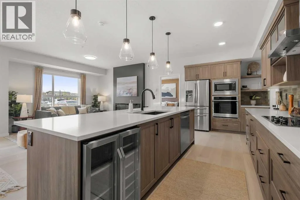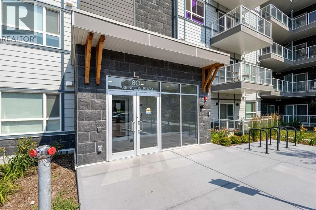 Welcome to 80 Carrington Plaza NW â a former Cedarglen show home offering elevated design, premium upgrades, and outstanding long-term value. This 1,283 sq ft main-floor condo features 3 bedrooms and 2 full bathrooms, combining refined finishes with a highly functional layout ideal for both discerning homeowners and savvy investors. The open-concept living space is anchored by a stylish fireplace and flows seamlessly into a designer kitchen complete with built-in appliances, upgraded cabinetry, a pantry, and a built-in wine fridgeâfeatures that elevate everyday living while enhancing rental desirability. As a former show home, this unit stands apart with thoughtful details, timeless finishes, and a level of quality rarely found in condo living. The primary suite offers a walk-in closet and private 4-piece ensuite, while two additional bedrooms provide flexibility for guests, home office use, or family living.Additional highlights include air conditioning, in-suite laundry, generous storage, and private main-floor patio access, adding comfort, convenience, and year-round appeal.The location is a major asset â everyday amenities, shops, dining, and services are just steps away, making the property exceptionally walkable and attractive to tenants and owners alike. With quick access to Stoney Trail (Highway 201), commuting across the city or heading out of town is effortless. Situated in the growing NW community of Carrington, surrounded by parks and pathway systems, this area continues to see strong demand and long-term growth.A rare opportunity to own a show homeâquality condo that delivers luxury living today and enduring investment value for the future. (id:27476)