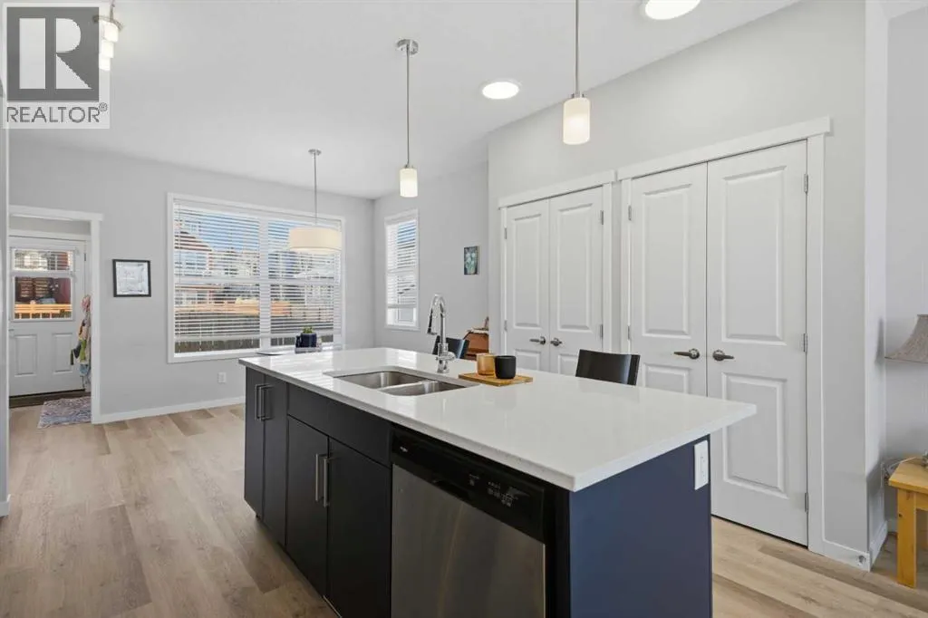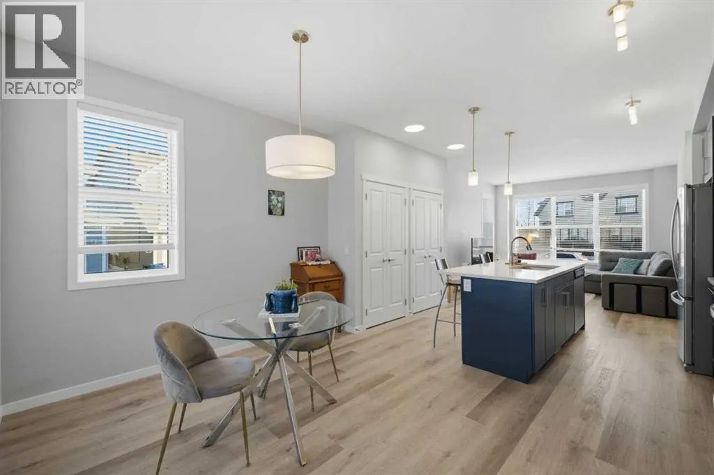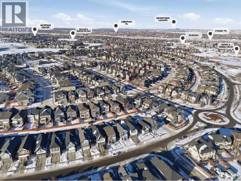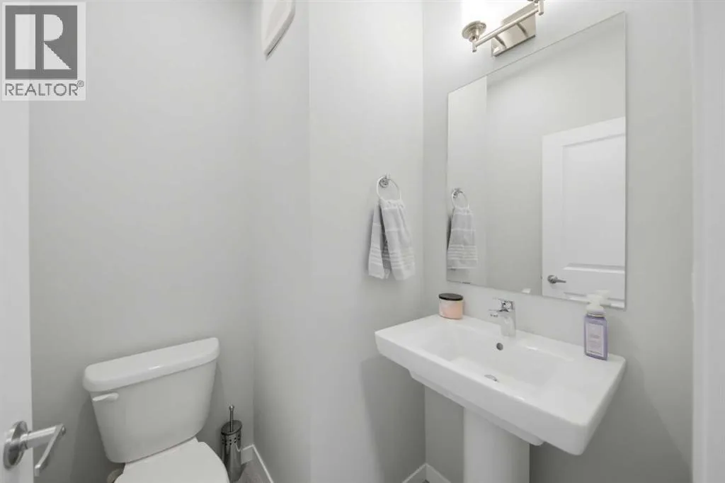 Value Priced to Sell!!! Welcome to this beautifully finished 3-bedroom, 2.5-bath detached home in the vibrant lake community of Mahogany. Offering 1,441 sq. ft. above grade with upgraded 9-ft basement ceilings, this property combines modern style with everyday functionality in one of Calgaryâs most desirable neighborhoods. The main floor features high ceilings and an open-concept layout highlighted by midnight blue kitchen cabinetry, stone countertops, and a premium Blanco Horizon undermount sink. Upstairs, enjoy the convenience of a front-load washer and dryer, along with a spacious primary suite complete with a walk-in closet and private 3-piece ensuite. Two additional bedrooms provide flexibility for family, guests, or a home office. The basement is ready for future development with its impressive ceiling height, an egress window for a large bedroom, and rough-in plumbing for a full bathroom. Outside, the home offers a low-maintenance front yard, a fully fenced backyard, and paved lane access to an oversized parking pad. Located just 1 km from the Mahogany Beach House, youâll enjoy year-round amenities including swimming, fishing, tennis, paddleboarding, skating (with a 2.4 km skating path), hockey, volleyball, playgrounds, a gymnasium, splash park, basketball courts, and firepits. This is an ideal opportunity to enjoy the best of lake living in Mahogany. Book your private tour today! (id:27476)
