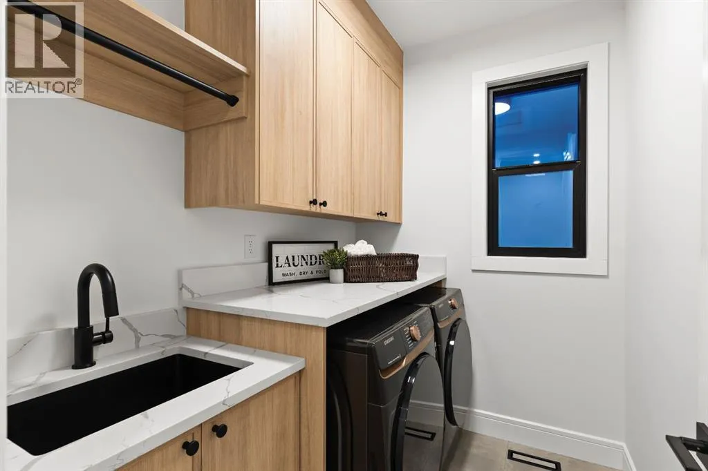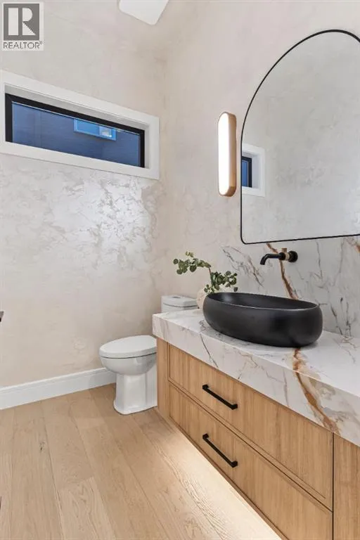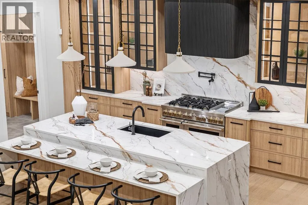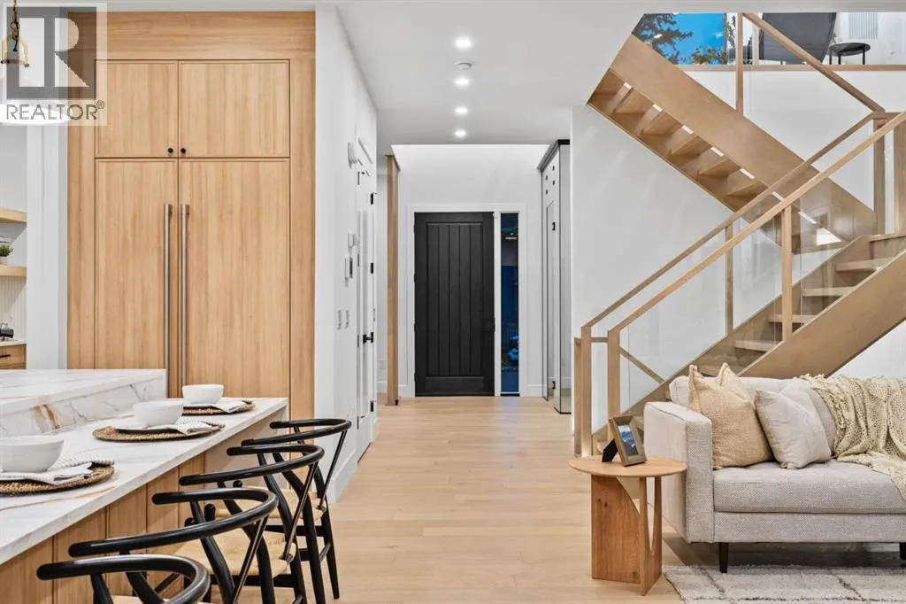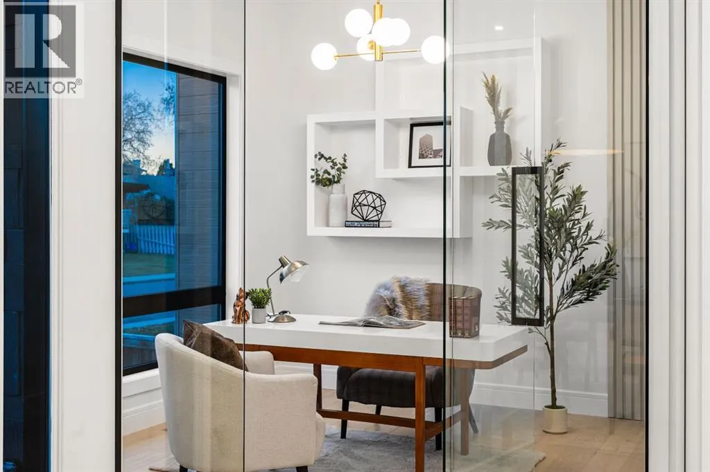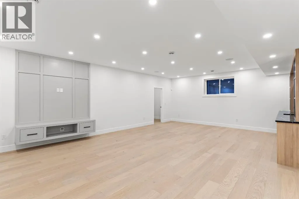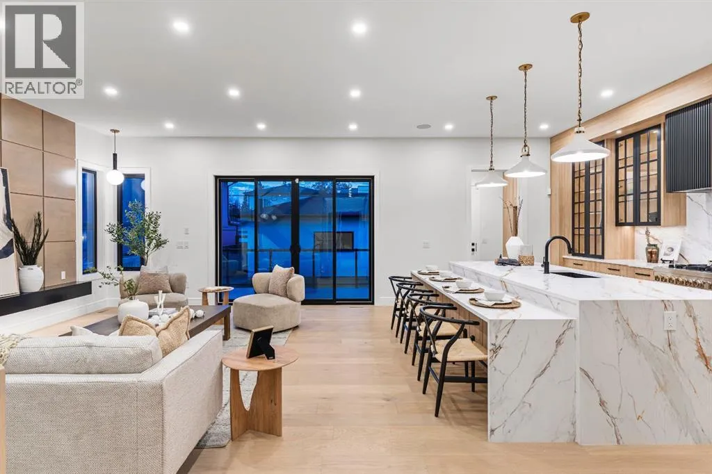 Designed with intention and built with precision, this custom two-storey home in Winston Heights showcases over 3,900 square feet of luxury living where craftsmanship meets modern design. As you enter, the main floor immediately impresses with soaring 10-foot ceilings, open-to-below ceilings, a gorgeous chandelier, wide-plank hardwood, and an abundance of natural light that fills every corner. The front foyer opens into a thoughtfully designed office enclosed by glass walls, with large windows creating a bright and quiet workspace. Just beyond, the formal dining area provides an elegant setting for gatherings, seamlessly connected to a butler's kitchen and full pantry for added storage and prep space. The chefâs kitchen is the centrepiece of the home, featuring Jenn-Air built-in appliances, a 48â 6-burner Jenn-Air stove, an oversized multi-tier quartz island, quartz backsplash, undermount and inside cabinet lighting, and a striking custom range hood. It opens to a spacious living room anchored by a sleek gas fireplace, custom panelled feature wall with wood grid detailing and oversized windows overlooking the deck and backyard. A stylish powder room with custom San Marcopolo Luxury Oro waterproof paint and a large mudroom with built-ins complete the main level. Heading upstairs from the beautiful maple hardwood open riser stairs, a central family room provides a relaxed lounge area with large windows and built-ins separating the bedrooms for added privacy. The primary suite is a retreat of its own, complete with an oversized walk-in closet featuring custom millwork and access to the laundry room. The ensuite is finished to perfection with a freestanding tub, double vanities, a makeup vanity, a steam shower with body jets, and heated floors. Two additional bedrooms offer generous space, each with built-in closets, and share a full bathroom. The fully developed basement extends the living space with a large open recreation room ideal for entertaining, a custom wet bar , a private gym, a full bathroom, and an additional bedroom perfect for guests. Finishes are carried throughout with the same high-quality craftsmanship, lighting, and millwork found upstairs. Outside, the home sits on a landscaped lot with a spacious rear deck and an oversized three-car detached garage offering ample parking and storage. Additional upgrades include rough-ins for built-in interior and exterior speakers, A/C rough-in, and a security system including exterior cameras. The location is exceptional, steps from Winston Golf Club, surrounded by schools, parks, and playgrounds, and just minutes from downtown, and Deerfoot Trail. This home blends refined design, comfort, and convenience in one of Calgaryâs most sought-after inner-city communities. Call today to book your private tour. (id:27476)