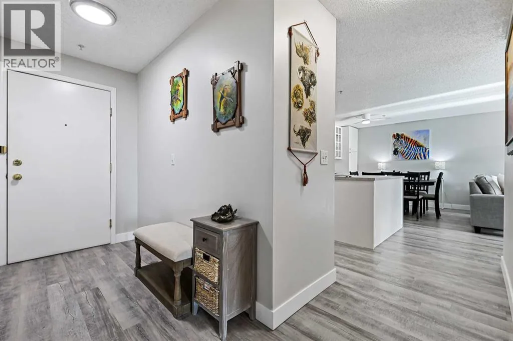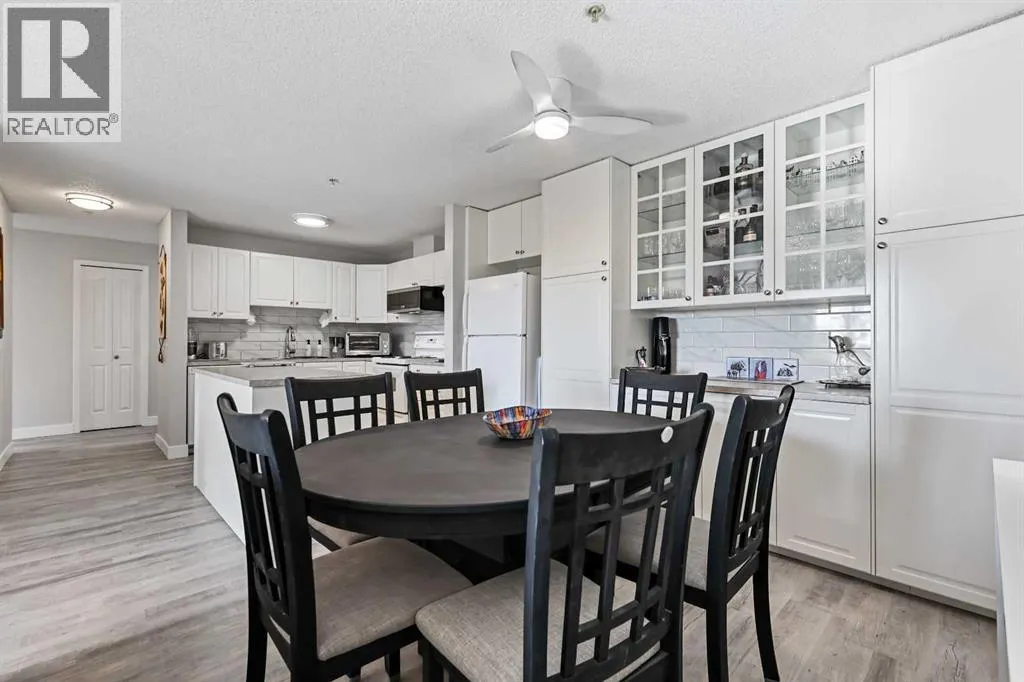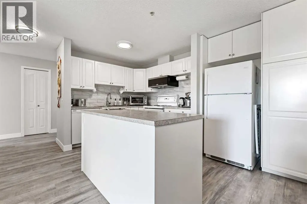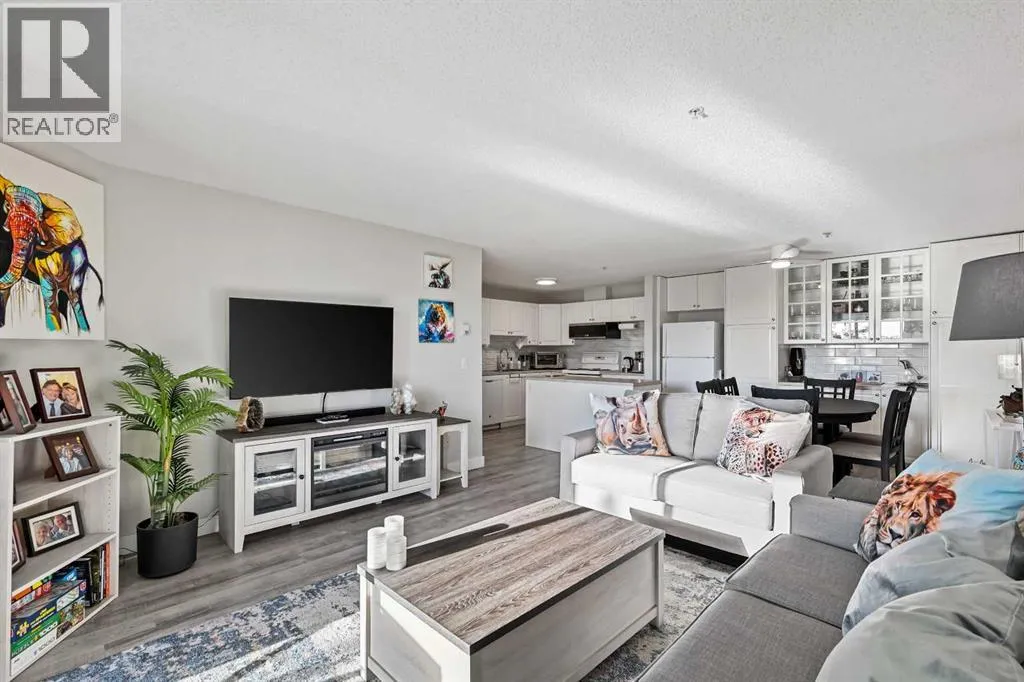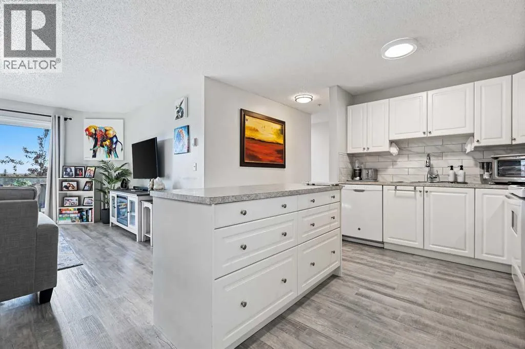 **6 MONTHS CONDO FEES WILL BE PAID**Welcome to this impeccably upgraded 2-bedroom, 2-bath condo in the sought-after Somerset Crossing â one of the largest floor plans available in the complex, offering over 1,000 square feet of beautifully designed living space. Nestled in the heart of Somerset, just steps from Shawnessyâs shopping, dining, and amenities, this stunning home combines comfort, function, and style in one of Calgaryâs most walkable neighborhoods. Step inside to discover brand-new luxury vinyl plank flooring flowing seamlessly throughout the main living areas, giving the home a modern yet warm feel. The kitchen has been completely reimagined with a custom flush central island, perfect for prepping meals, entertaining guests, or enjoying your morning coffee. Extended cabinetry, finished with elegant glass insets and a matching countertop, stretches into the spacious dining areaâproviding tons of extra storage and display space, rarely found in condo living. The open-concept living room is generous in size, basking in sun-soaked Southeast exposure with unobstructed views of the peaceful courtyard and shimmering pond beyond. Step through the sliding glass doors onto your covered patio, where you can relax and enjoy the viewâpatio furniture included, so youâre ready to unwind from day one. Both bedrooms are privately tucked away, each enjoying bright southeast light. The primary suite features a large closet and a beautifully renovated 3-piece en suite with a stunning oversized walk-in shower, floor-to-ceiling tile, and sleek glass doors. A second 4-piece bath is perfect for guests or family. Practical touches abound, including a spacious entryway with room for a bench and a massive in-suite laundry/storage roomâcomplete with the original island repurposed as a folding station or work surface, along with built-in shelving for smart, out-of-sight organization. Youâll also enjoy the convenience of one titled underground parking stall, and peace of mind knowing you're in a well-managed, sought-after building where residents tend to stay for the long haul. With quick access to Macleod Trail & Stoney Trail, Spruce Meadows just minutes away, and walkable access to everything from groceries to coffee shops and fitness studios, this location truly has it all. With quick access to the Somerset C-Train, heading to down town to enjoy all that Calgary has to offer is ideal - perfect to enjoy a nice blend of urban and suburban. Rarely do units like this come availableâespecially with these upgrades, size, and that unbeatable view. Donât miss your chance to make this exceptional condo your next home! (id:27476)