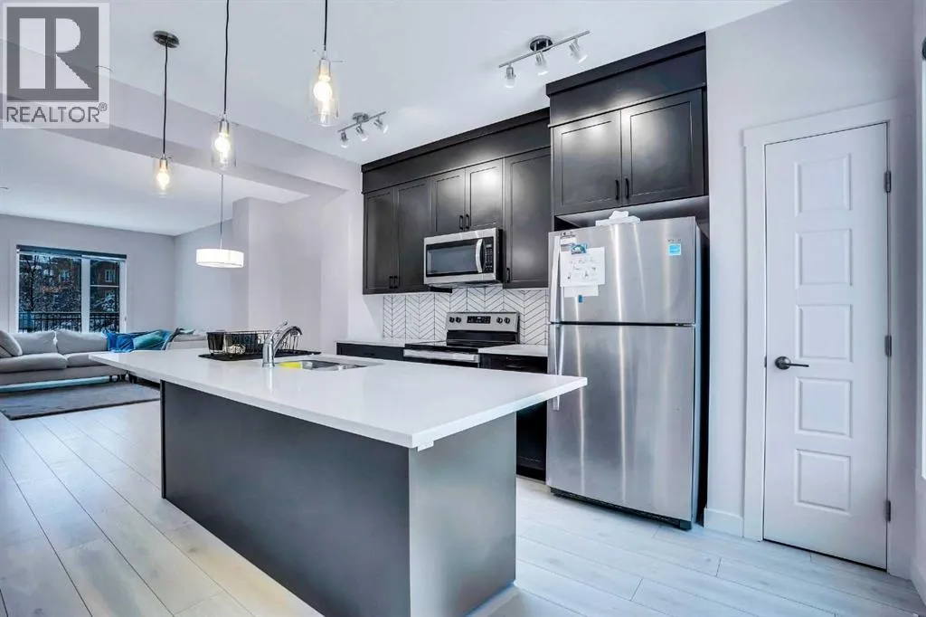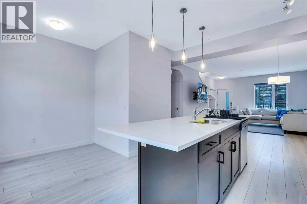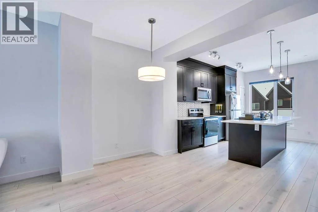 Experience contemporary living in the heart of Livingston with this bright and spacious 3-bedroom, 2.5-bathroom townhouse. Ideally located within walking distance to the future community hub, this home offers both comfort and convenience in one of Calgaryâs most exciting up-and-coming neighborhoods.Step inside to discover an open-concept layout featuring 9-foot ceilings and expansive windows that flood the space with natural light. The modern kitchen is a chefâs dream, complete with a large island, quartz countertops, and sleek finishes. Just off the kitchen, a built-in work nook provides a flexible space for a home office or study area.Upstairs, you'll find three generously sized bedrooms, including a serene primary suite with a walk-in closet and private ensuite bathroom. Additional features include ample storage and a double attached garage for added convenience.Enjoy the outdoors on your private, fenced front patio â perfect for relaxing or entertaining.Livingston is a thoughtfully master-planned community offering scenic walking paths, parks, and easy access to major roadways and future amenities at the community hub. (id:27476)