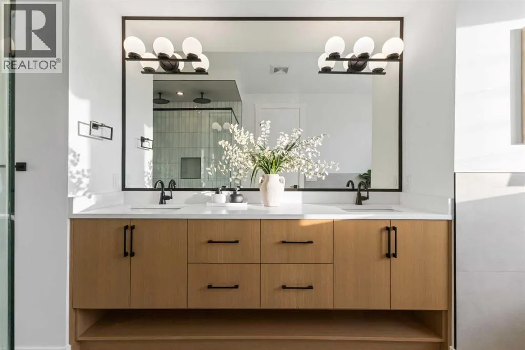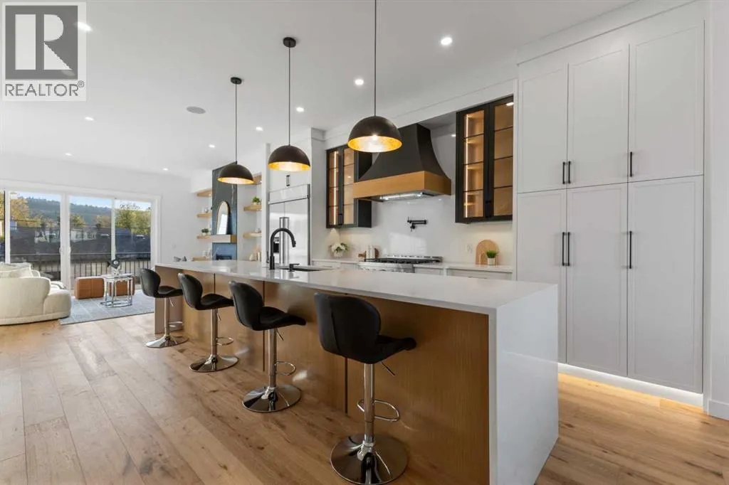 This BRAND NEW, MOVE-IN READY infill in MONTGOMERY checks all the boxes for stylish, functional inner-city livingâwith the added bonus of a fully private 1-BED LEGAL WALKOUT SUITE. Whether you're looking for extra income, space for guests, or a little more flexibility in your day-to-day, this one delivers. Step inside to a bright, welcoming foyer with a full coat closetâsimple, clean, and easy to come home to. At the front of the home, the dining area offers space for a full-size table and flows naturally into the heart of the home: the kitchen. The kitchen brings a timeless feel with classic SHAKER-STYLE CABINETS, a custom-built hood fan with oak accents, glass display shelves with LED lighting, and a quartz-topped island with waterfall edges. Youâll also find an upgraded KITCHENAID APPLIANCE PACKAGE, including a gas range with pot filler and a large KitchenAid French door fridge. Thereâs also a convenient coffee or beverage station, complete with room for a beverage fridge. The living room is warm and elevated, featuring an INSET GAS FIREPLACE with full-height tile surround and built-in display shelving with closed cabinetry for extra storage. Natural light pours in through large rear sliders, leading out to the sunny SOUTHWEST-facing back deck with privacy screens already installed. Off the rear entry, the mudroom includes built-in shelving, a bench, and cubbies, with access to the powder roomâprivate, polished, and finished with a skirted quartz counter and decorative framed mirror. Upstairs, the primary suite is a calm retreat with a tray ceiling, spacious walk-in closet, and a stunning ensuite that includes a freestanding soaker tub, walk-in shower with DUAL RAIN HEADS, and double vanity. Two more bedrooms, a full bath with attractive STACKED HORIZONTAL TILE, and a laundry room with designer tile flooring complete the upper level. Downstairs, the WALKOUT SUITE is bright, smartly designed, and full of quality finishes. The living room has a BUILT-IN FLOATING M EDIA CENTRE, and the full kitchen mirrors the same modern style as upstairs, with warm oak flat panel cabinetry and quartz countertop. Thereâs a full bathroom, stacked laundry, and a large bedroom with walk-in closetâplus its own separate entry for total independence. Montgomery offers easy access to main routes like 16th Ave and Memorial Drive while keeping you steps from nature. Walk to Shouldice Park, Bowmont Park, and the Bow River Pathway system for daily runs, dog walks, or weekend bike rides. You're minutes from Montalcino Ristorante, NOtaBLE, and lots of local coffee shops, restaurants, and bars for food and coffee favoUrites. Groceries, schools, Market Mall, U of C, and Foothills & Children's Hospitals are all close by, making this one of Calgaryâs most livable and up-and-coming inner-city communities. Call today to view! *Photos from Show Suite (id:27476)