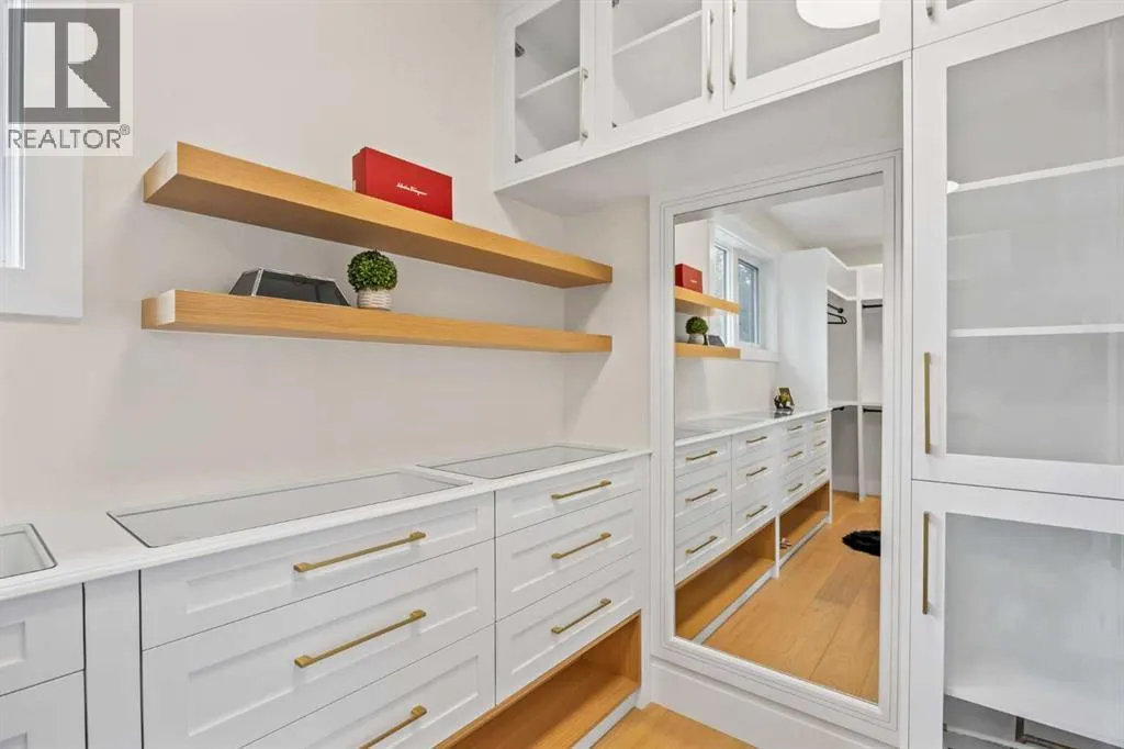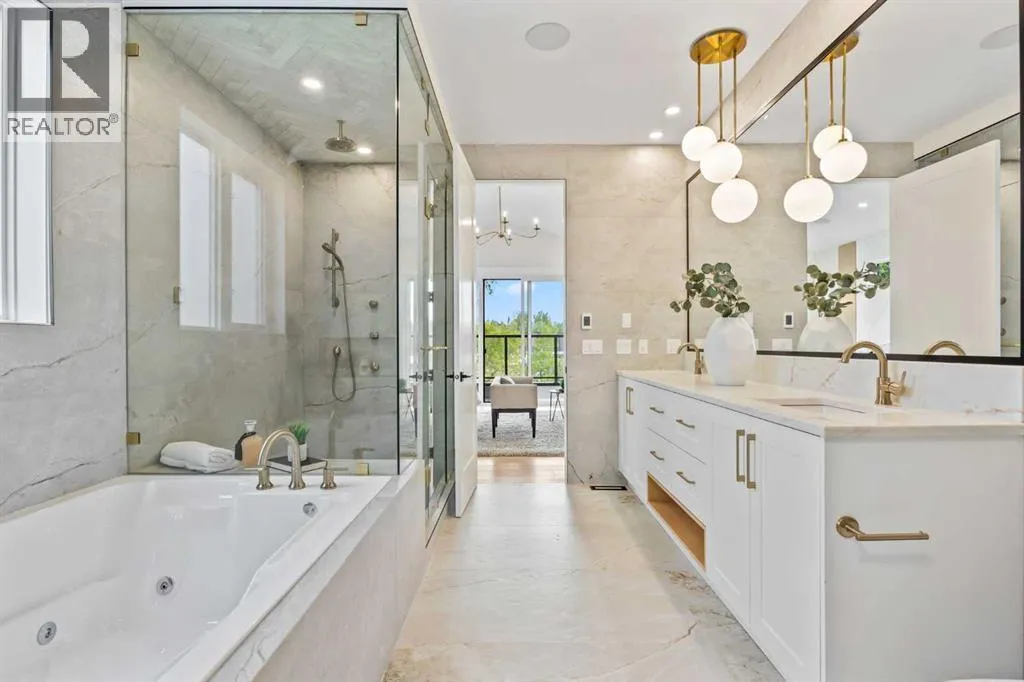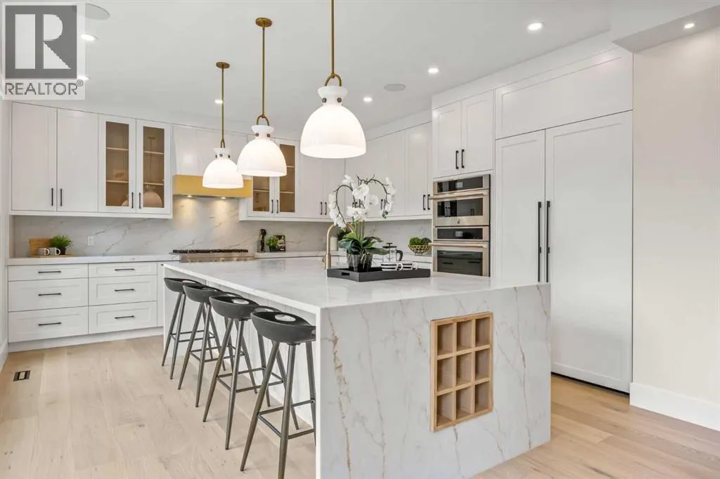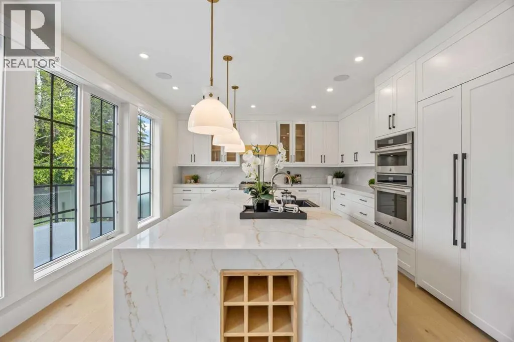 OPEN HOUSE 1pm-3pm Saturday /14 February . Brand-New 4900+ Sq Ft Custom Build in VarsityâFacing Green Space, Backing Treelined Pathways, and Built to the Highest Standards. This is the home Varsity has been waiting for â a fresh, full-scale luxury build on a flat, pie-shaped lot that faces onto open green space and backs directly onto the treelined pathway system. With over 4,900 sq ft, this home offers the perfect balance of thoughtful design, uncompromising finishes, and unbeatable location. From the moment you walk in, you feel the volume and elegance: 9â ceilings on all three levels, wide-plank engineered hardwood floors, clean lines, custom feature walls, and natural light pouring in from oversized windows. The layout is ideal for family living, featuring 5 bedrooms (including 2 stunning primary suites), 4.5 spa-style bathrooms with heated floors, a private main-floor office, and an open-concept living/dining area built for entertaining. The heart of the home is the kitchen: JennAir appliances, a massive island, custom cabinetry, and direct access to a large deck and professionally landscaped backyard. Upstairs, a serene primary retreat features a steam shower, walk-in closet, and upper laundry. The fully finished lower level includes a home theatre, wet bar, bedroom + bath, and a second laundry room. Luxury features include: 200-amp electrical service, central A/C, built-in speakers, security camera system, heated double garage with epoxy floors and EV charger, irrigation system, and a fully fenced yard. Every detail was chosen for comfort, performance, and long-term living. Located in the heart of Varsity Village, you're steps from schools of all levels, the University of Calgary, and the shops and cafes of University District. Homes like this rarely come availableâespecially brand new and on a lot like this. Book your private tour today and experience the finest new construction Varsity has to offer. (id:27476)