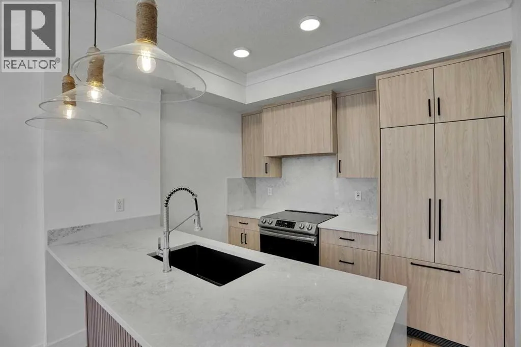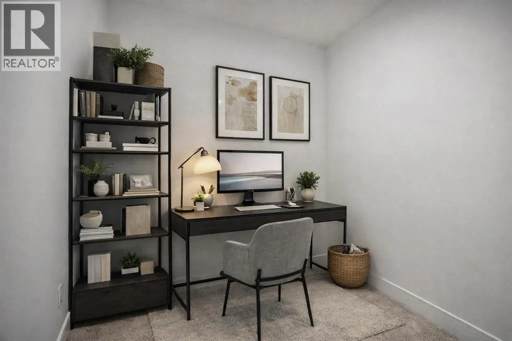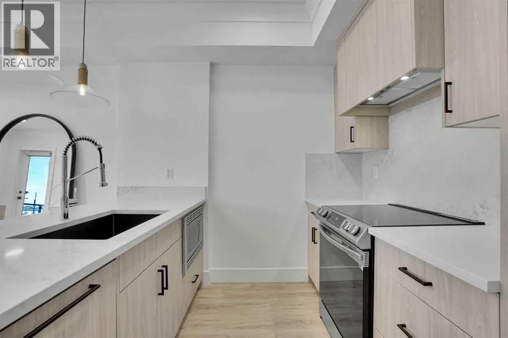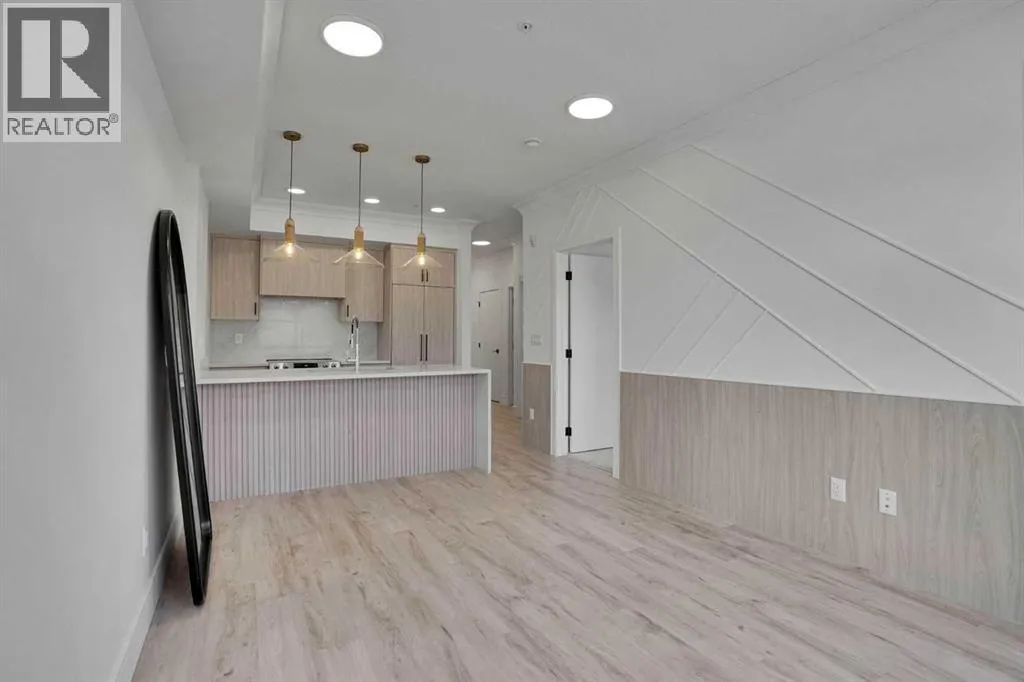 Welcome to this brand-new, never-lived-in 1 bedroom plus den condo in the prestigious Currie Barracks communityâwhere timeless architecture meets modern inner-city living. Thoughtfully designed and finished with upscale details, this home is ideal for professionals, first-time buyers, downsizers, or investors seeking a low-maintenance lifestyle in one of Calgaryâs most desirable SW locations. Step inside to discover high ceilings, luxury vinyl plank flooring, elegant crown mouldings, and oversized windows that flood the space with natural light. The open-concept layout seamlessly connects the kitchen, dining, and living areasâperfect for entertaining or everyday comfort. The designer kitchen features quartz countertops and backsplash, ceiling-height cabinetry, premium built-in stainless steel appliances, and sleek modern hardwareâoffering both beauty and functionality. The spacious living area flows effortlessly from the kitchen, creating a bright and inviting atmosphere. The primary bedroom is well-proportioned with large windows and ample closet space, while the versatile den is perfect for a home office, study, or guest area. The contemporary bathroom is finished with floor-to-ceiling tile, quartz vanity, and stylish fixtures, delivering a spa-inspired feel. Additional conveniences include in-suite laundry, air-conditioning rough-in, and extra storage. This unit comes with titled heated underground parking, access to EV charging stations, and a Pet-Friendly, Short-Term RentalâFriendly building, making it an excellent opportunity for both homeowners and investors. Located just minutes from Mount Royal University, Marda Loop, public transit, schools, downtown Calgary, parks, shopping, and major roadways. Currie Barracks offers an unmatched blend of walkability, green space, and urban convenienceâall within a historic, master-planned community. Immediate possession available. Donât miss your chance to own a brand-new home in one of Calgaryâs most exciting inner-city developmentsâcheck out the 3D Virtual Tour link or book your private showing today! (The unit will be rented from March 1st 2026 to Feb 28th 2027) (id:27476)
