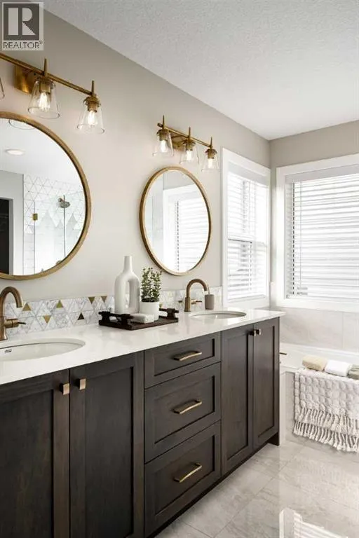The Solara by Shane Homes â a pre-construction, customizable home in the desirable community of Ambleton. This 3-bed, 3-bath home sits on an extra-wide lot. The upgraded kitchen includes a chimney hood fan, built-in microwave, gas cooktop, and a spice kitchen for added convenience. Enjoy a main floor full bath, 9â basement foundation, and roughed-ins for potential future development flexibility. Personalize your finishes and design selections to suit your lifestyle. Located in a community surrounded by pathways, parks, and planned amenities. Photos are representative and may show optional features. (id:27476)