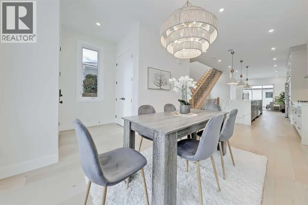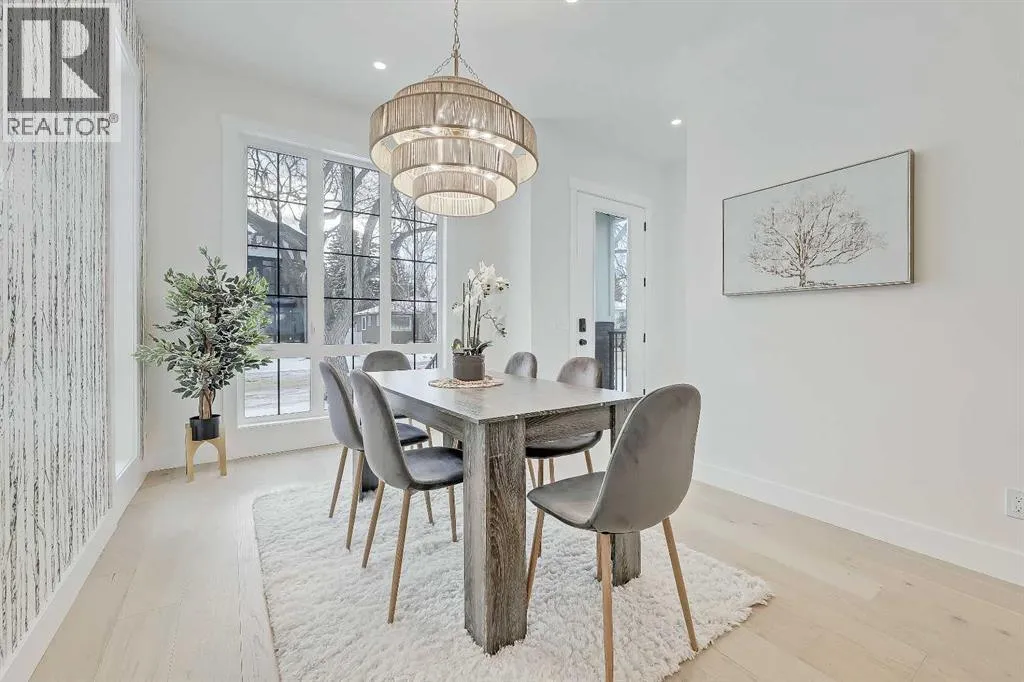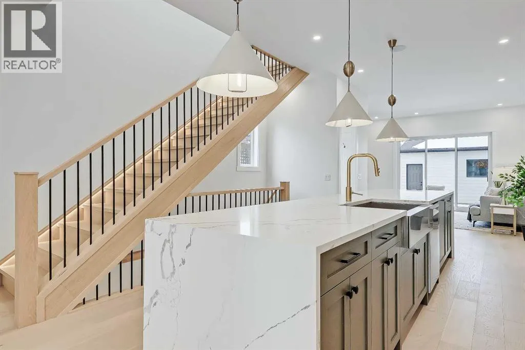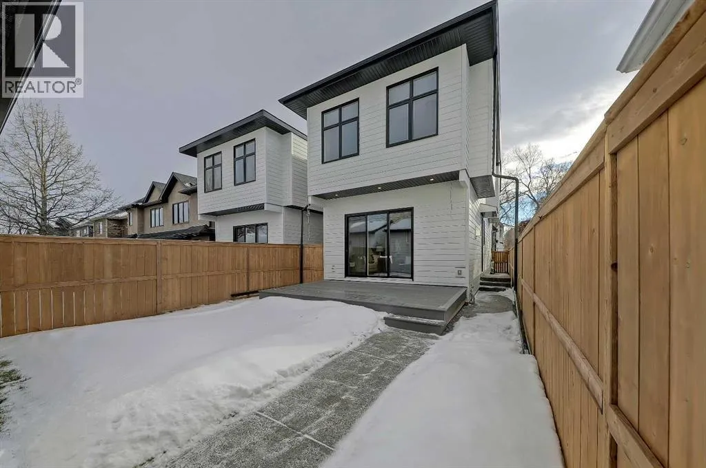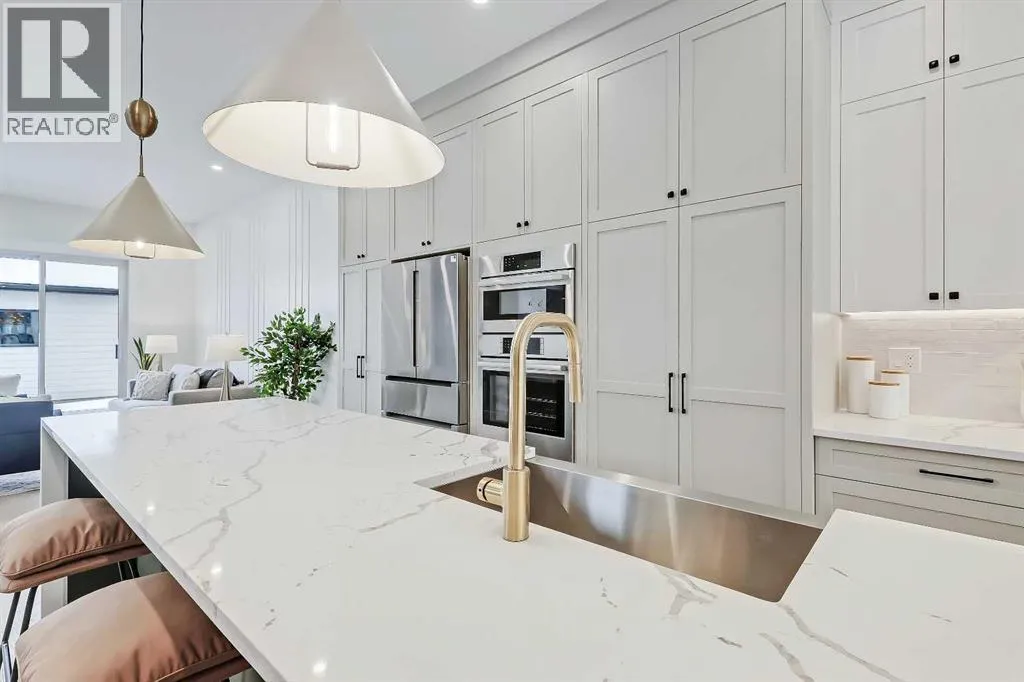 **OPEN HOUSE THIS WEEKEND: SATURDAY, FEBRUARY 14, FROM 2 PM - 4 PM** SEE MULTIMEDIA LINKS FOR FULL DETAILS* This fully-developed and move-in-ready detached infill is a refined blend of architectural presence, thoughtful functionality and timeless design. Featuring over 2,655 sq. ft. of finished, bright living space (more than 1,900 sq. ft. above grade), this home includes 4 bedrooms, 3.5 bathrooms, and a double detached garage. This home was built by a custom inner-city builder, renowned for their meticulous attention to detail. Designed with the focus on beauty and natural lighting, this home provides instant luxury that exceeds expectations. The open-concept main floor is defined by 10-foot flat painted ceilings and wide-plank hardwood flooring throughout. A bright entryway with a generous front hall closet lead into the sun-filled dining area, where oversized windows create an inviting atmosphere. The living room is anchored by a linear gas fireplace with a full-height tile surround, offering warmth and understated elegance. A discreet powder room with quartz countertops and custom cabinetry, along with a rear mudroom featuring built-in storage and backyard access completes the space. At the heart of the home, the chef-inspired central kitchen makes a striking statement with an oversized 13-foot quartz waterfall island, ceiling-height shaker cabinetry, full-height tile backsplash, and a premium Bosch appliance package, including a gas cooktop, wall oven, French door refrigerator, chimney-style hood fan, built-in microwave, and integrated dishwasherâdelivering both performance and timeless appeal. Upstairs, 9-foot ceilings and engineered hardwood flooring continue throughout. The primary retreat offers a vaulted ceiling, oversized windows, built-in speakers, and flexible space for a reading nook or home office. The spa-like 5-piece ensuite features heated tile floors, a freestanding soaker tub, dual vanities with quartz counters, and a fully tiled walk-in shower w ith rainfall head, body jets, and steam rough-in. Two additional bedrooms with walk-in closets, a beautifully finished main bath, and a dedicated laundry area complete the upper level. The bright, fully developed basement features 9-foot ceilings, plush carpeting, a spacious rec room with a wet bar, a large fourth bedroom with a walk-in closet, and a 4-piece bathroom. Thoughtfully prepared for a future legal basement suite, it includes a framed second exterior door, in-floor heat rough-in, future kitchen wiring, laundry rough-ins, and a 200-amp electrical panel. The exterior showcases Hardie board and brick siding, exposed aggregate walkways, full landscaping, and a large composite deck with a BBQ gas line. The home is backed by a Builder Warranty and Progressive 10-Year New Home Warranty. Ideally located in Capitol Hill, just minutes to downtown, SAIT, U of C, North Hill Centre, parks, schools, transit, and major routesâoffering effortless inner-city living with enduring value. (id:27476)