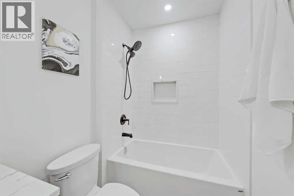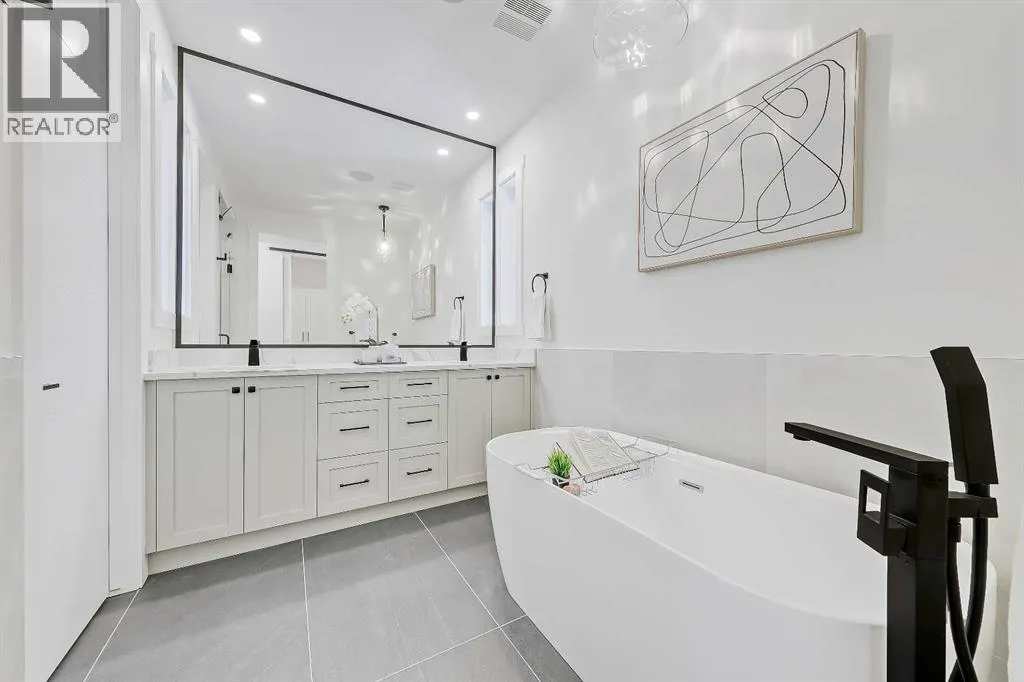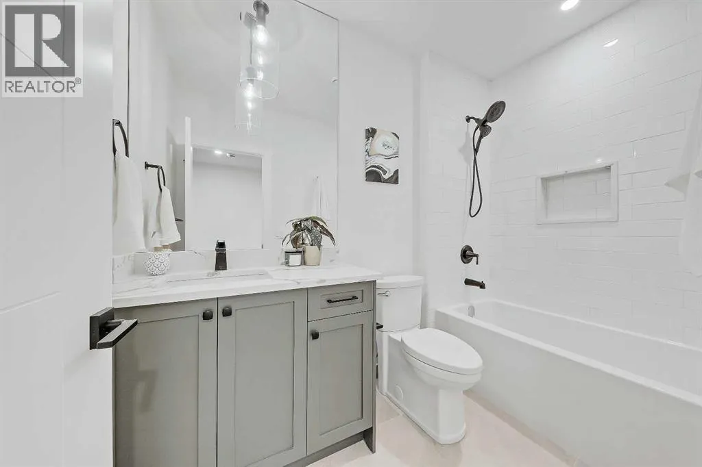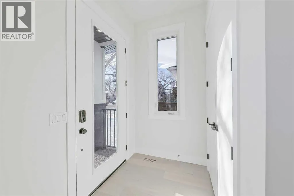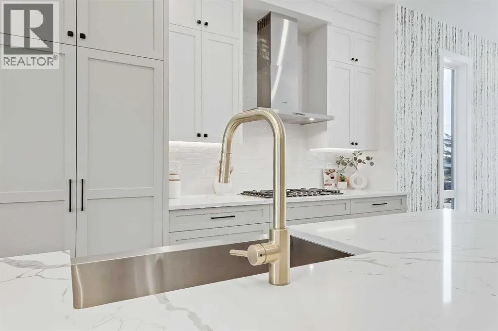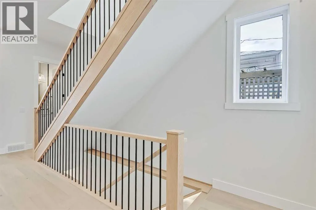 **OPEN HOUSE THIS WEEKEND: SATURDAY, FEBRUARY 14, FROM 2 PM - 4 PM** SEE MULTIMEDIA LINKS FOR FULL DETAILS* This fully-developed and move-in-ready detached infill is a refined blend of architectural presence, thoughtful functionality and timeless design. Featuring over 2,655 sq. ft. of finished, bright living space (more than 1,900 sq. ft. above grade), this home includes 4 bedrooms, 3.5 bathrooms, and a double detached garage. This home was built by a custom inner-city builder, renowned for their meticulous attention to detail. Designed with the focus on beauty and natural lighting, this home provides instant luxury that exceeds expectations. The open-concept main floor is defined by 10-foot flat painted ceilings and wide-plank hardwood flooring throughout. A bright entryway with a generous front hall closet lead into the sun-filled dining area, where oversized windows create an inviting atmosphere. The living room is anchored by a linear gas fireplace with a full-height tile surround, offering warmth and understated elegance. A discreet powder room with quartz countertops and custom cabinetry, along with a rear mudroom featuring built-in storage and backyard access completes the space. At the heart of the home, the chef-inspired central kitchen makes a striking statement with an oversized 13-foot quartz waterfall island, ceiling-height shaker cabinetry, full-height tile backsplash, and a premium Bosch appliance package, including a gas cooktop, wall oven, French door refrigerator, chimney-style hood fan, built-in microwave, and integrated dishwasherâdelivering both performance and timeless appeal. Upstairs, 9-foot ceilings and engineered hardwood flooring continue throughout. The primary retreat offers a vaulted ceiling, oversized windows, built-in speakers, and flexible space for a reading nook or home office. The spa-like 5-piece ensuite features heated tile floors, a freestanding soaker tub, dual vanities with quartz counters, and a fully tiled walk-in shower w ith rainfall head, body jets, and steam rough-in. Two additional bedrooms with walk-in closets, a beautifully finished main bath, and a dedicated laundry area complete the upper level. The bright, fully developed basement features 9-foot ceilings, plush carpeting, a spacious rec room with a wet bar, a large fourth bedroom with a walk-in closet, and a 4-piece bathroom. Thoughtfully prepared for a future legal basement suite, it includes a framed second exterior door, in-floor heat rough-in, future kitchen wiring, laundry rough-ins, and a 200-amp electrical panel. The exterior showcases Hardie board and brick siding, exposed aggregate walkways, full landscaping, and a large composite deck with a BBQ gas line. The home is backed by a Builder Warranty and Progressive 10-Year New Home Warranty. Ideally located in Capitol Hill, just minutes to downtown, SAIT, U of C, North Hill Centre, parks, schools, transit, and major routesâoffering effortless inner-city living with enduring value. (id:27476)