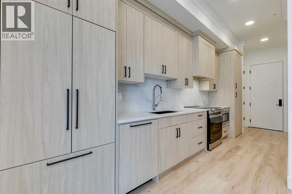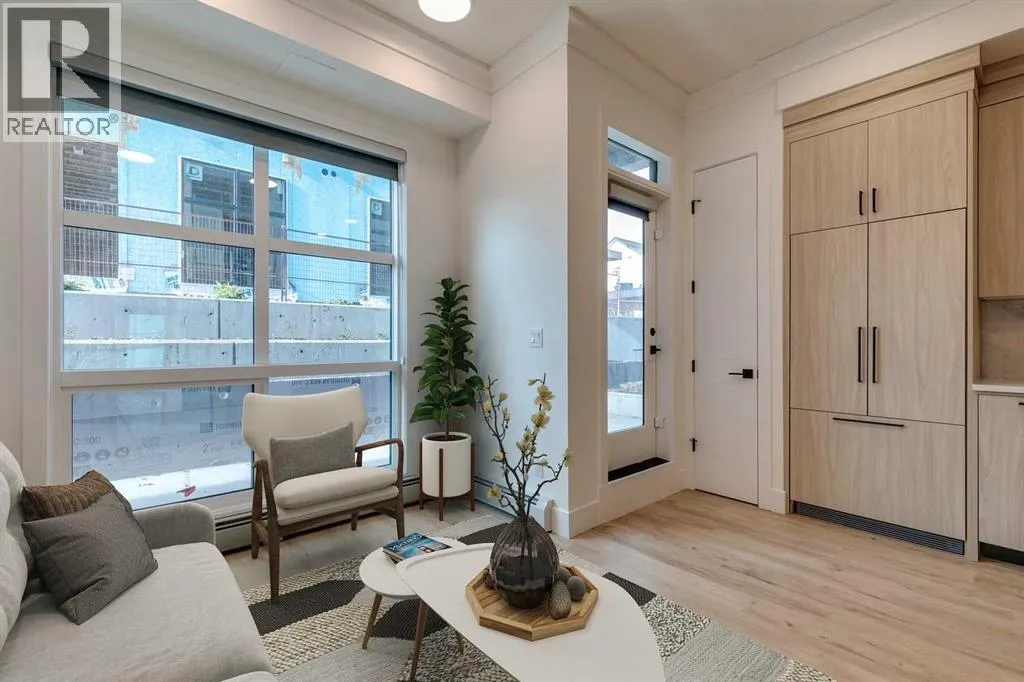 ***PRICED TO SELL*** IMMEDIATE POSSESSION *** PERFECT FOR INVESTORS, STUDENTS & FIRST-TIME HOME BUYERS *** This brand-new, never-lived-in 1-bedroom, 1-bathroom condo by Rohit Homes is your opportunity to own a stylish, ground-floor unit in the heart of Currieâone of Calgaryâs most walkable and connected SW communities. Featuring the sought-after âEthereal Zenâ Rosa floor plan, this thoughtfully designed home lives like a townhome with private, direct entry from your patioâperfect for pet owners, investors, or anyone craving convenience.Inside, youâll love the soaring 10-ft ceilings, designer kitchen with quartz counters and backsplash, matte black fixtures, farmhouse sink, and a French-door fridge with bottom freezerâevery detail has been curated for elevated, effortless living. Step out onto your private southwest-facing patio with a gas BBQ hookup and enjoy cozy fall evenings and crisp morning coffee in your own outdoor space.BONUS: Titled underground parking, EV charging, pet-friendly, and short-term rental approvedâmaking this a perfect fit for urban professionals, first-time buyers, or savvy investors. Steps from Mount Royal University, local breweries, cafés, parks, and just 15 minutes to downtown, this is inner-city living at its best.Donât waitâbook your private showing today! (id:27476)