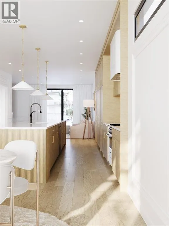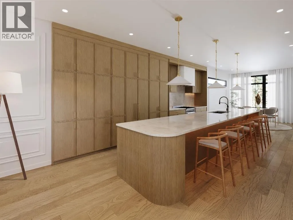 Exclusive pre-sale opportunity in the highly sought-after community of Richmond. This stunning residence, designed by JTA Designs, offers over 2,400 square feet of thoughtfully planned living space. Upon entry, a grand foyer welcomes you into the main level, featuring soaring 11-foot ceilings and elegant hardwood floors throughout. The formal dining area, accented with custom wainscoting, is filled with natural light from expansive windows. The designer kitchen boasts a striking 14-foot fluted curved island with a Taj Mahal countertop, premium appliances, gold and black fixtures, white oak shaker cabinetry, a plaster chimney hood, a black granite sink, and under-cabinet lighting. The spacious great room is anchored by a custom tiered gas fireplace finished with fluted tile, built-in shelving, and cabinetry. A separate mudroom with built-ins and a bench provides ample storage. Upstairs, nine-foot ceilings and hardwood floors continue through the hallways, leading to a beautiful primary suite with vaulted ceilings, wainscoting, and a luxurious five-piece ensuite complete with heated floors and a steam shower rough-in. Two additional bedrooms, one with private access to a three-piece bath, and a convenient laundry room complete the upper level. The fully finished basement includes a large recreation area, an additional bedroom, and a three-piece bathroom. Both units are available. Contact us today to schedule your private tour. (id:27476)