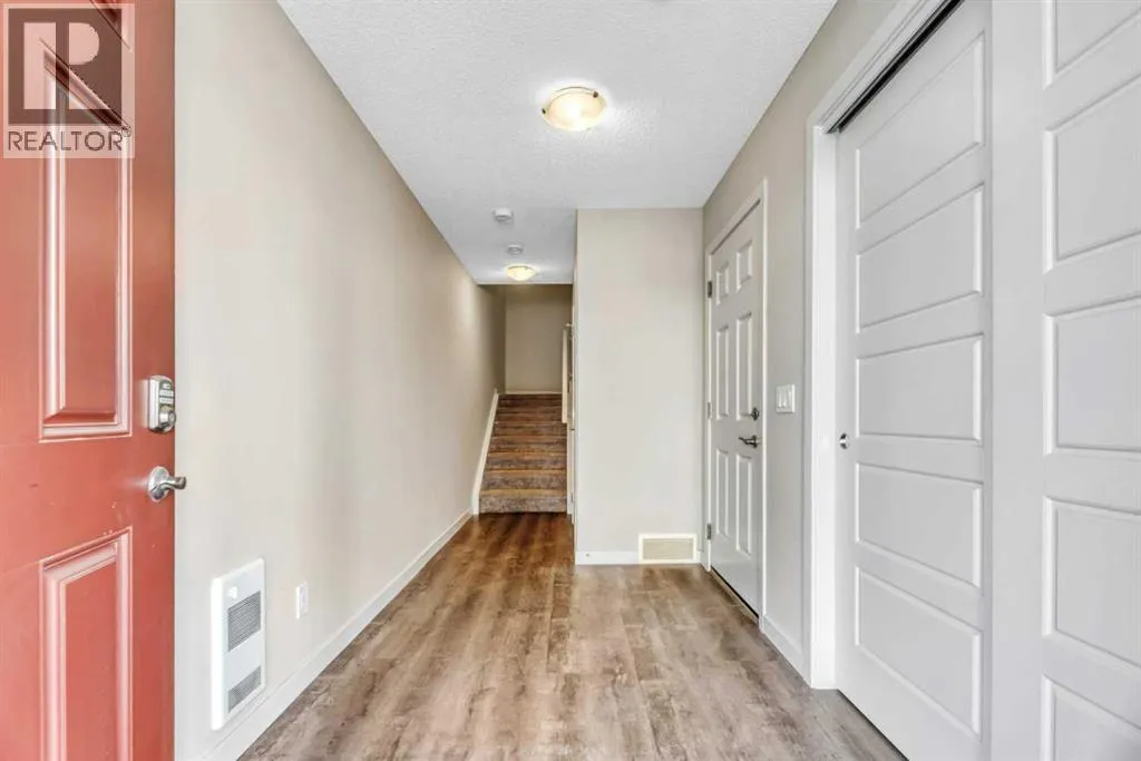SELLER IS WILLING TO PUT UP TO $2,000 towards the buyer's LEGAL FEES (that's a direct SAVINGS)! Welcome to 104, 32 Red Embers Parade NE â a stylish and well-maintained three-storey townhome in the vibrant community of Redstone. With nearly 1,279 sq ft (RMS) of above-grade living space, this home offers a bright and functional layout perfect for modern living. The entry level provides a spacious foyer, storage/utility room, and access to the single attached garage. On the main living floor, natural light fills the open-concept kitchen, dining, and living areas. The kitchen showcases stainless steel appliances, full-height cabinetry, a pantry, and ample counter space. The living room flows seamlessly to a private balcony â ideal for morning coffee or evening BBQs. A convenient 2-pc powder room completes this level. Upstairs, find two bedrooms, each with its own full bathroom. The primary suite features a walk-in closet and 4-pc ensuite, while the second bedroom is served by its own 4-pc bath. Upper-floor laundry adds everyday convenience.Additional features include washer & dryer, garage door opener with remote, and low condo fees that cover essentials such as reserve fund contributions, insurance, exterior snow removal and landscaping including tree pruning and grass cutting. The Redstone community is designed for connection and convenience, offering residents parks, playgrounds, and pathways, with quick access to Stoney Trail, Deerfoot Trail, and Metis Trail. The location places you just minutes from Calgary International Airport, CrossIron Mills, Costco, and a wide variety of shops and restaurants.Whether you are a first-time buyer, investor, or seeking a low-maintenance lifestyle, this property checks all the boxes. Book your private showing today and discover the value this Redstone townhome has to offer! (id:27476)