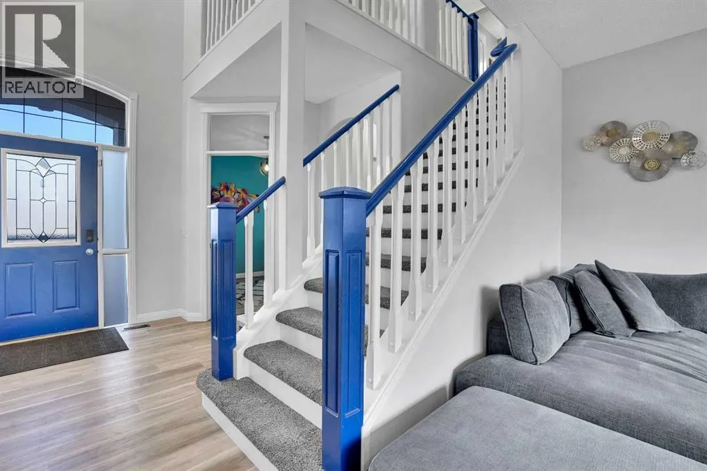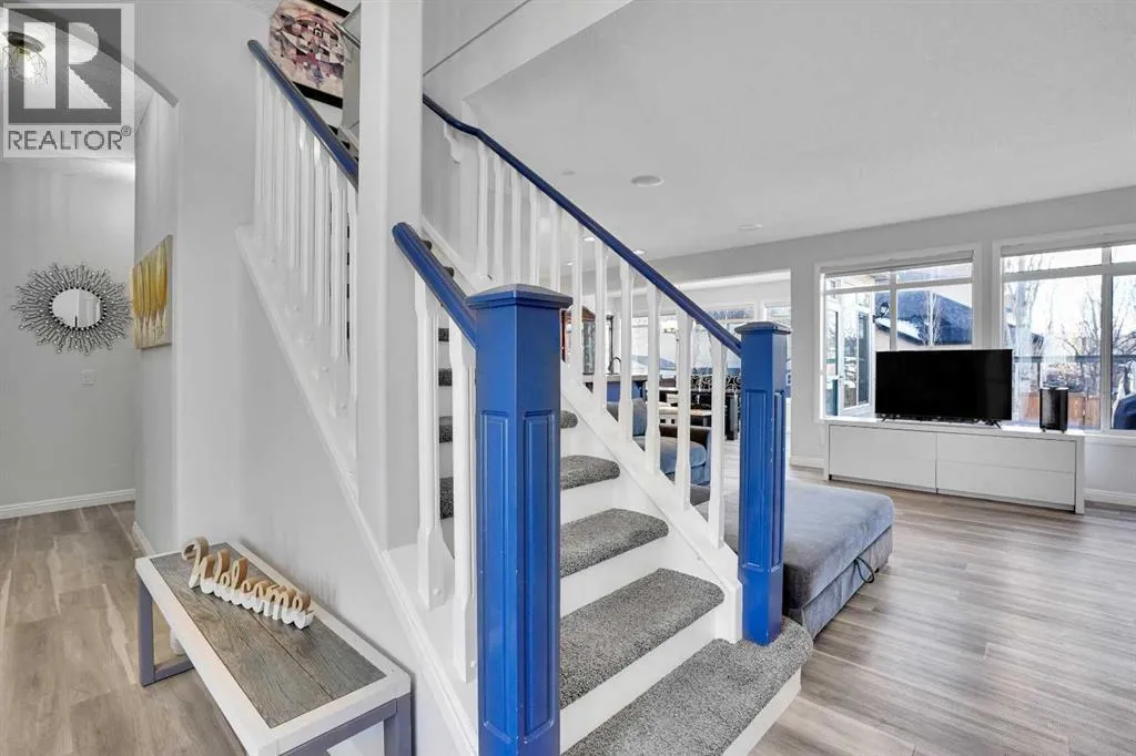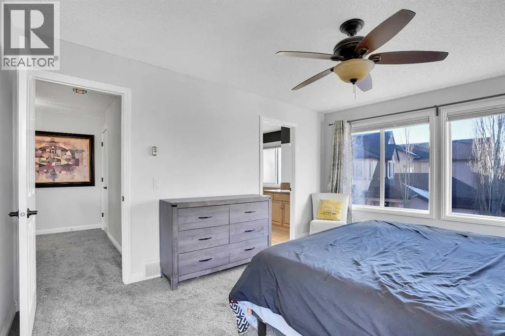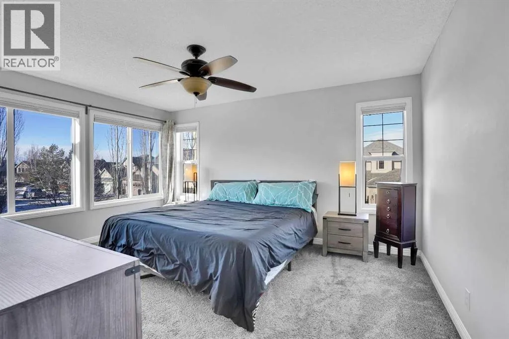 Welcome to the estate side of Cranston. A CORNER LOT located 3 minutes from Stoney/Deerfoot, one block away from the RIDGE &PARK. This Jayman Master Built home boasts almost 3000 sq feet of open concept liveable space. With 4 bedrooms plus a den/office and 3.5 bathrooms, and a FULLY FINISHED basement, and fully insulated, oversized double attached garage. This is the perfect home for a growing family. Featureing stainless-steel appliances, hardwood floors, TWO gas fireplaces, Hunter Douglas blinds, Smart technology NEST thermostat, fully insulated oversized garage. Enjoy your WEST FACING BACKYARD deck, aggregate concrete, fantastic foliage, while cooking with your BBQ GAS LINE. SPECTRA TINTED WINDOWS and CENTRAL AIR CONDITIONING will help you stay in climate controlled comfort your round. You're a stone's throw away from Cranston Ridge which offers more than 400 acres of green space with majestic mountain views overlooking the Bow River. Easy to show, quick/flexible possession available. Value priced at $799,900, book your private showing today, 74 Cranleigh Green SE!!! (id:27476)