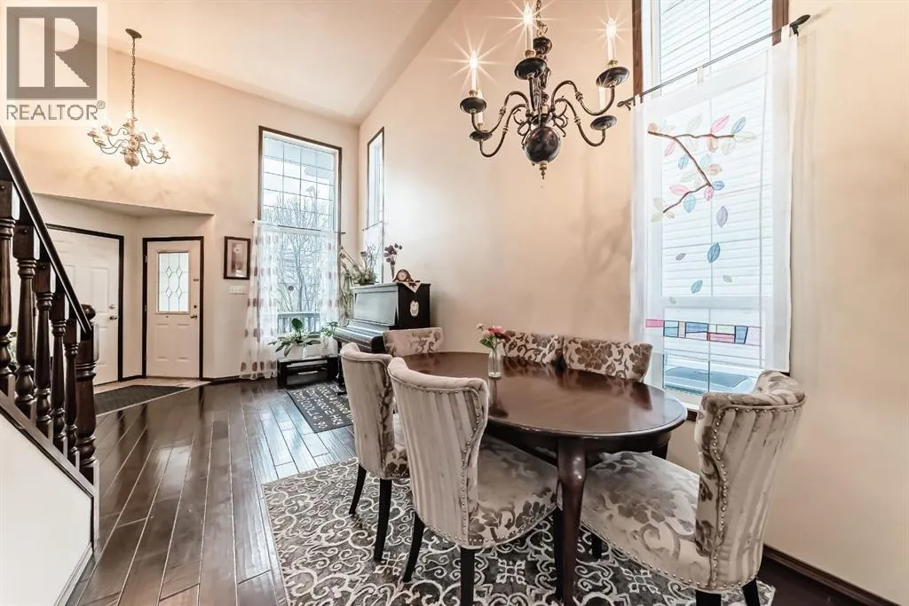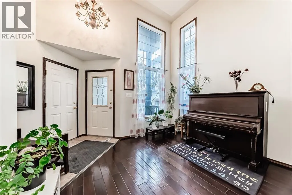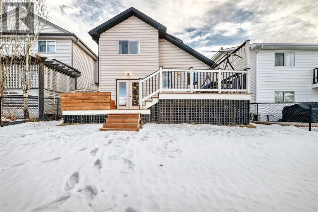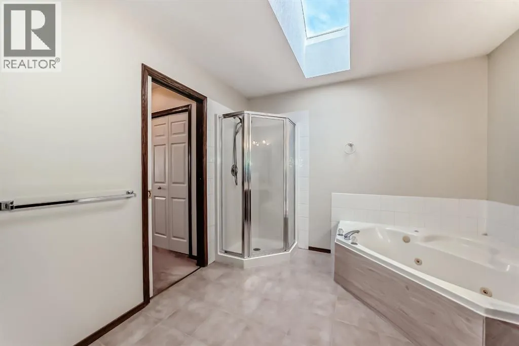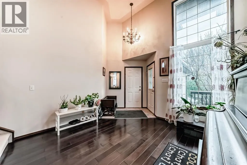 Located on a quiet street, this home backs directly onto a beautiful green space and playground. The seller has recently invested in quality updates, including a new two-tier deck, hardwood flooring, and a new refrigerator with gas stove. The main level features an open layout with soaring vaulted ceilings and 12-foot windows that fill the living and dining areas with natural light. The kitchen is finished with rich cherry-stained oak cabinets and a central island. The third level family room provides a large, comfortable living space. It offers a walk-out to the spacious two-tier deck, which is also accessible from the kitchen. The entire top floor is dedicated to the private master suite. This expansive space includes double walk-through closets and a large ensuite bathroom with a jetted tub, separate shower, and a skylight. The ground level provides a private bedroom and a full bathroom, making it ideal for guests or roommates. On the fourth level, you will find a laundry area with a washer and dryer, plenty of storage space, and a flexible room perfect for an office or hobby room. New roofing in 2023 and water heater in 2024. The location provides easy access to Deerfoot Trail and shopping at 130 Ave SE. Douglasdale School is a short walk away, and there is a playground right behind the backyard. (id:27476)