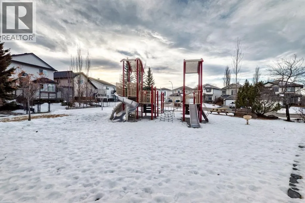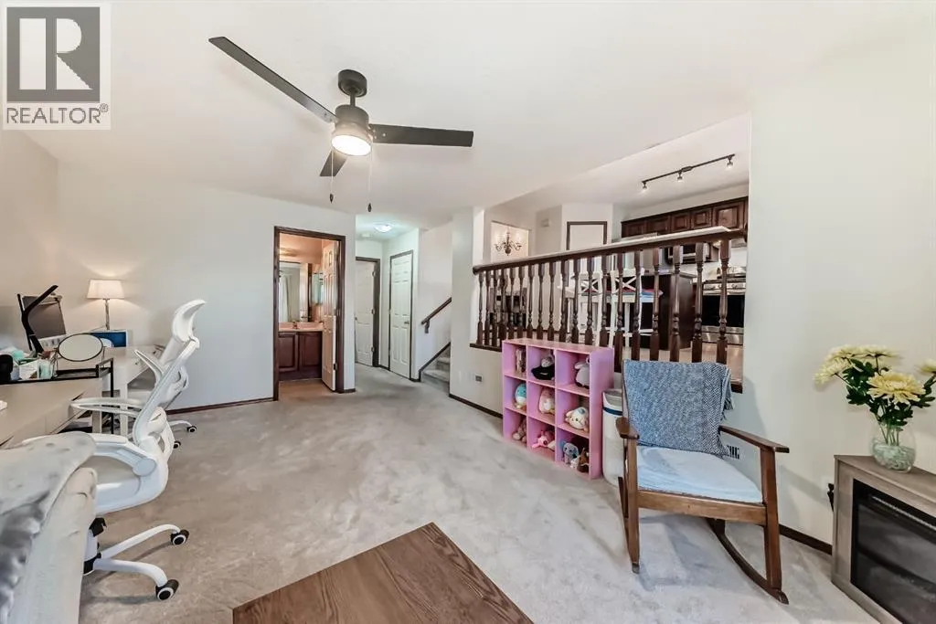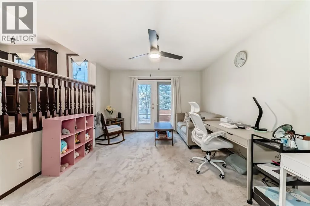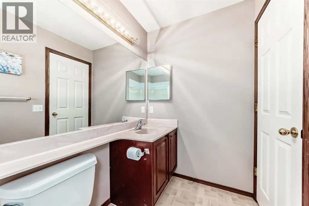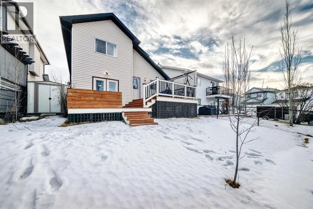Located on a quiet street, this home backs directly onto a beautiful green space and playground. The seller has recently invested in quality updates, including a new two-tier deck, hardwood flooring, and a new refrigerator with gas stove. The main level features an open layout with soaring vaulted ceilings and 12-foot windows that fill the living and dining areas with natural light. The kitchen is finished with rich cherry-stained oak cabinets and a central island. The third level family room provides a large, comfortable living space. It offers a walk-out to the spacious two-tier deck, which is also accessible from the kitchen. The entire top floor is dedicated to the private master suite. This expansive space includes double walk-through closets and a large ensuite bathroom with a jetted tub, separate shower, and a skylight. The ground level provides a private bedroom and a full bathroom, making it ideal for guests or roommates. On the fourth level, you will find a laundry area with a washer and dryer, plenty of storage space, and a flexible room perfect for an office or hobby room. New roofing in 2023 and water heater in 2024. The location provides easy access to Deerfoot Trail and shopping at 130 Ave SE. Douglasdale School is a short walk away, and there is a playground right behind the backyard. (id:27476)