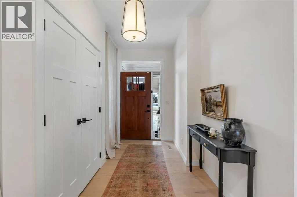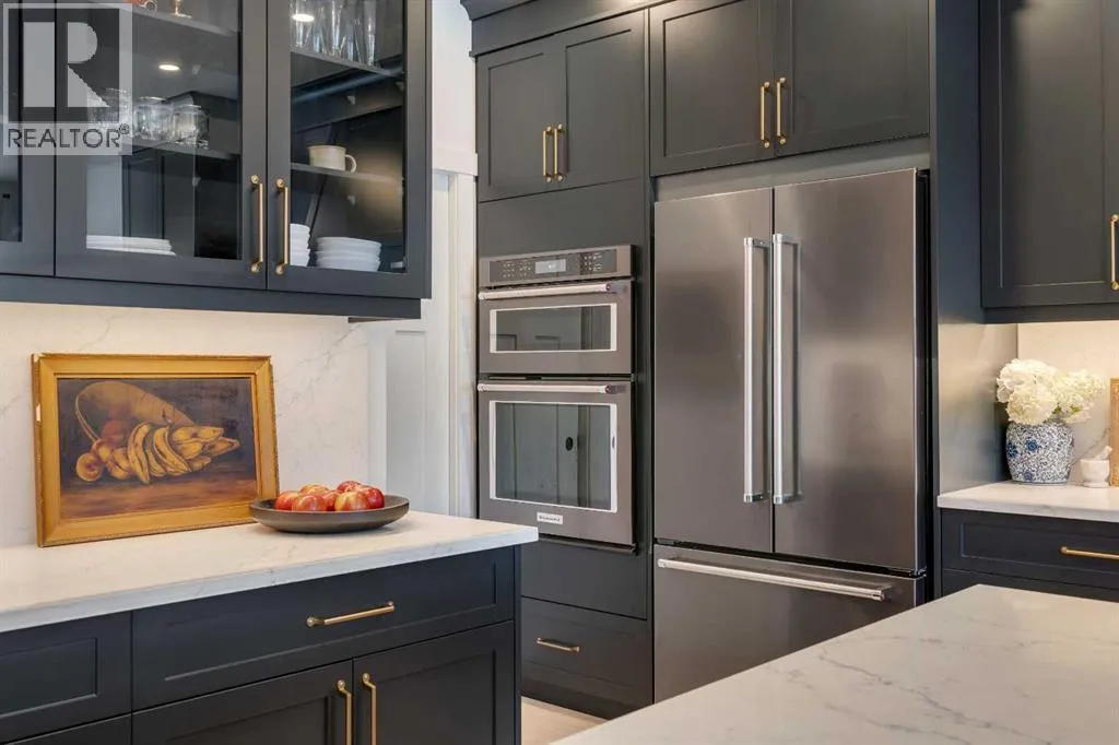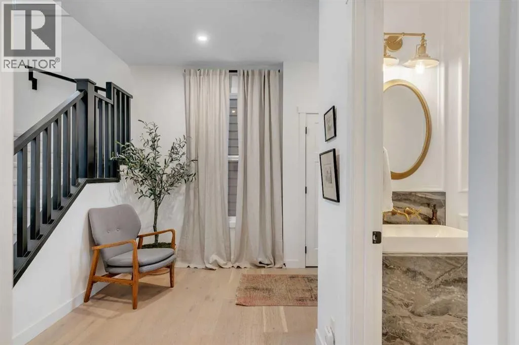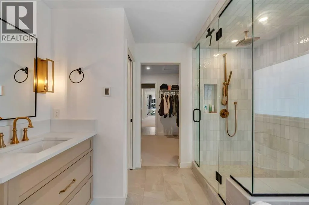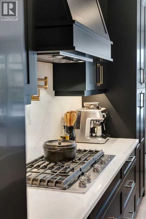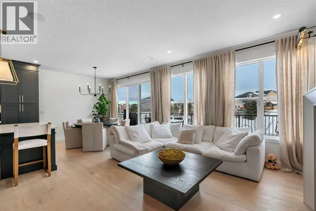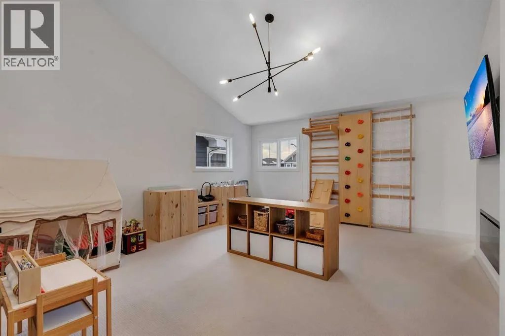 Welcome to this stunning, fully upgraded 4 bedroom, 3.5 bath home in the highly sought after community of Cranstonâs Riverstone. Perfectly positioned backing onto green space and just steps from the river, walking paths and the pond, this 2,402 sq.ft home blends luxury finishes with thoughtful design. The main floor offers an elongated entryway leading to an open concept living area flooded with natural light, a beautiful gas fireplace surrounded by custom built ins, a gourmet kitchen with quartz counters and backsplash, upgraded KitchenAid black stainless steel appliances, gas range with pot filler, custom hood fan, farmhouse sink, dining room, large walk in pantry and designer lighting. A custom mudroom with built in lockers adds everyday convenience. Upstairs features three bedrooms and two full baths, including a secondary bath with double vanities - perfect for sharing. The primary bedroom impresses with vaulted ceilings, a spa like ensuite, complete with a freestanding tub, rain shower with marble and zellige style tile, separate vanities and a large walk in closet connected to a convenient laundry room. A spacious vaulted bonus room completes the upper level. Downstairs, the fully finished basement includes a fourth bedroom, office space, full bath, wet bar with quartz counters/sconces and a cozy living area with an electric fireplace - ideal for entertaining. With over 100k in premium upgrades, including heated floors, custom cabinetry, built in speakers, smart lighting and rough ins for A/C and central vac, this home offers modern comfort and timeless style in a beautiful natural setting. (id:27476)