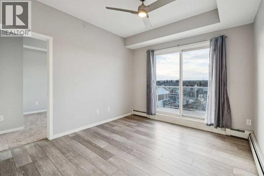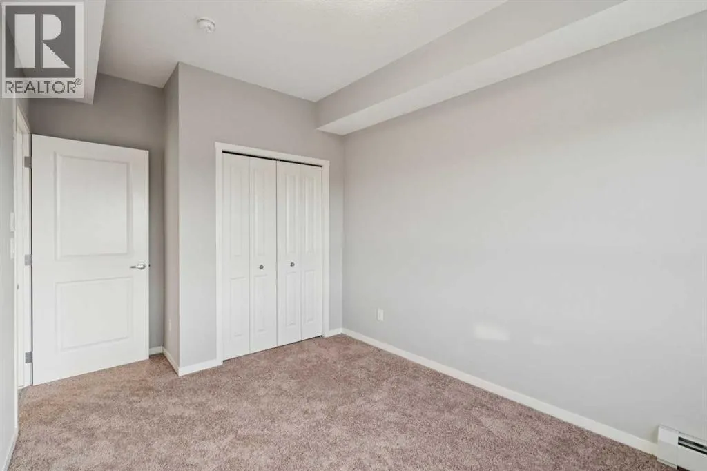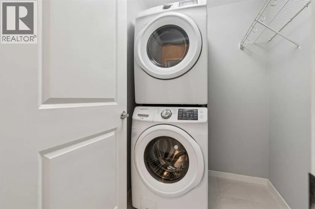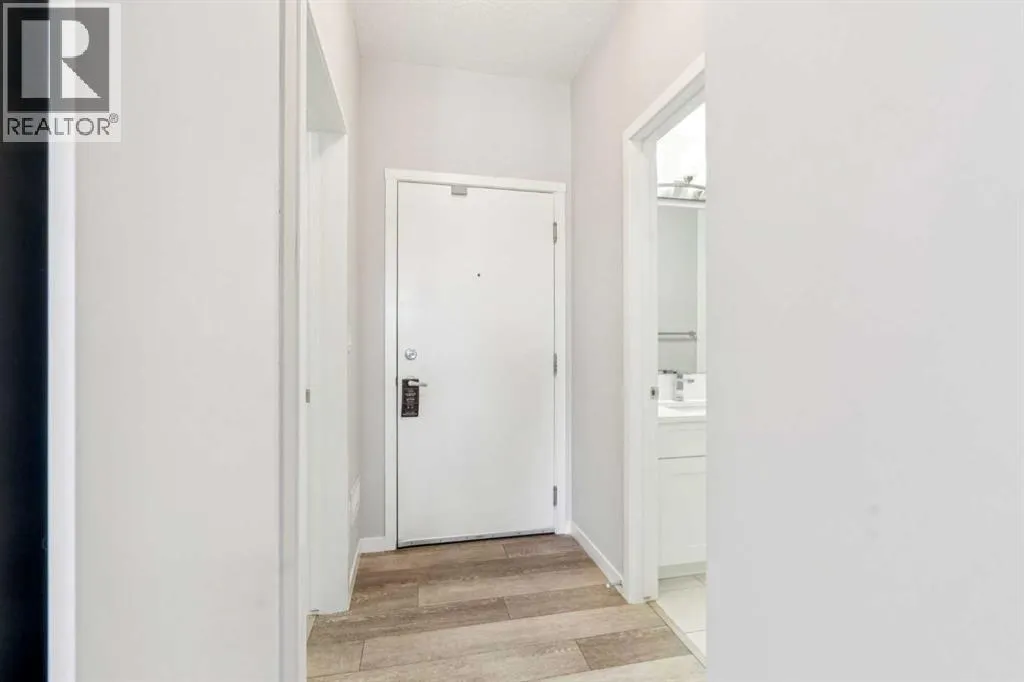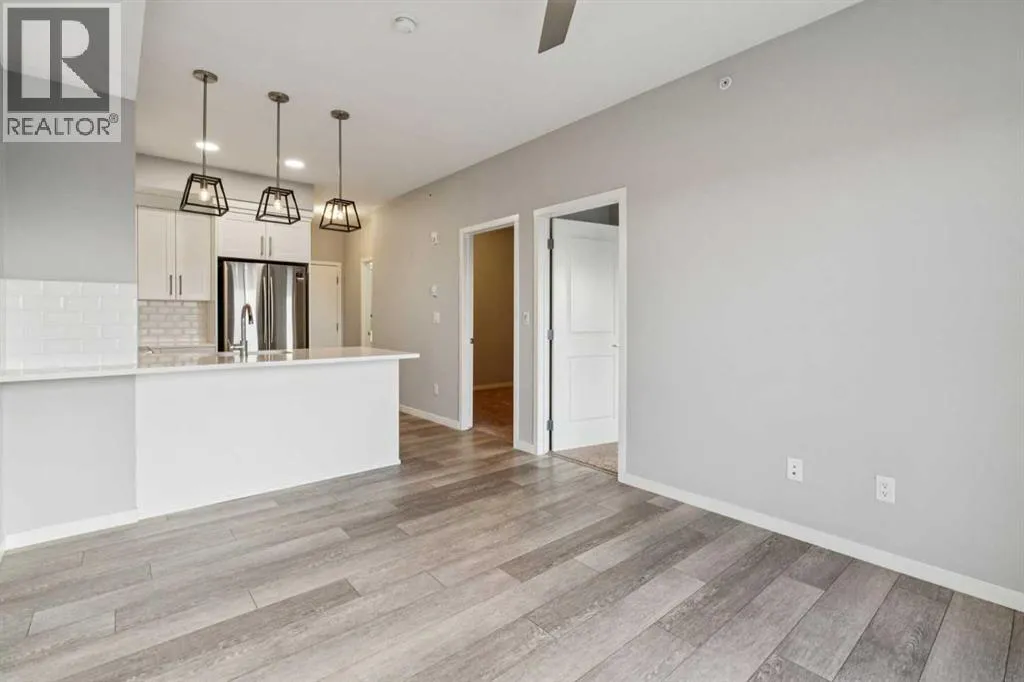Welcome to The Riseâthis bright, top-floor 2-bedroom, 1-bathroom condo offers move-in ready living. Freshly painted with new carpet, the open-concept layout is filled with natural light and complemented by vinyl plank flooring. The sleek kitchen is a standout, featuring quartz countertops, stainless steel appliances, full-height cabinetry, and a classic subway tile backsplashâperfect for everyday living and entertaining. The sunny living area opens to a west-facing balcony with a gas line for summer BBQs overlooking the courtyard. The spacious primary bedroom features a bright west-facing window and a closet, while the second bedroom is ideal for guests, a home office, or a nursery. A 4-piece bathroom and a convenient laundry/storage room complete this fantastic unit. Additional features include a TITLED outdoor parking stall, visitor parking, and plenty of street parking. Enjoy a pet-friendly community with ample outdoor activities including parks and walking paths, plus unbeatable access to Deerfoot and Stoney Trail, the airport, shopping, restaurants, schools, and entertainment. All you need is the key! (id:27476)