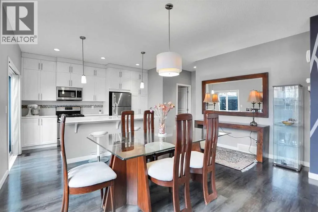 WELCOME TO THE Desirable Community of SAGE HILL, over 2000 sqft 2 story 4 bedrooms townhouse with single front attached garage & 3 full & one half washroom. If you are looking for that first home in a growing community, look no further! This house is loaded with tons of upgrades â 9â ceilings on the main floor. Basement is fully finished with one bedroom, rec room & one full washroom. Ideally located close to all amenities, Stoney Trail ring road, Shaganappi Trail , minutes away from Sage Hill Shopping Centre, Walmart, Costco, Tim Hortons, McDonalds, Starbucks, and just steps away from green space & walking paths exactly what you are looking for.This east facing home welcomes you with an open concept layout. As you enter, you are met by a decent size foyer. You will love the gleaming LVP flooring on the main floor. Your new kitchen boasts lots of full height cabinetry and a built-in pantry, A DECENT SIZE KITCHEN ISLAND WITH QUARTZ COUNTERTOPS, all stainless steel appliances Gas Stove, Refrigerator, microwave Hood fan, Dish-washer, washer & dryer & Central A/C. The dining area is just off the kitchen with plenty of space for a large table. The spacious living room is flooded with tons of natural light. A 2-piece washroom completes the main floor.Upper level features a large size primary bedroom with a 4-piece bathroom (tub/shower) and walk-in closet, plus 2 other decent size bedrooms and a full 4-piece washroom to complete this level.Fully finished basement with a huge size bedroom, large rec room, one full washroom & laundry. All appliances & central A/C included. Enjoy the nice west backyard & patio where you can BBQ, relax, and enjoy your sunny days*Don't miss your chance to own this exceptional property - schedule a Private viewing today and prepare to be impressed! (id:27476)