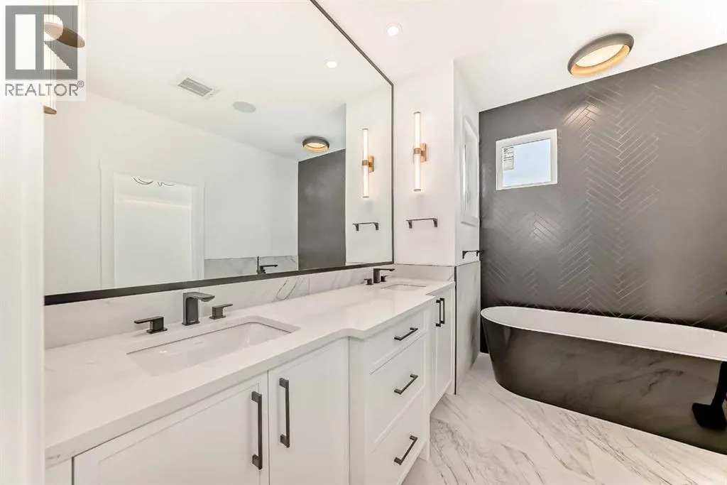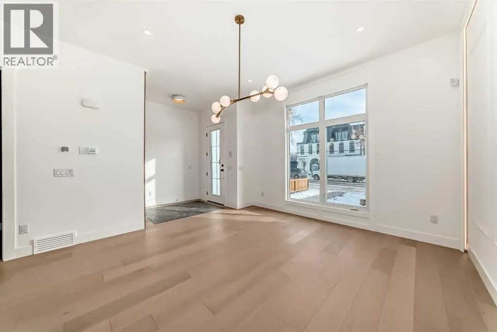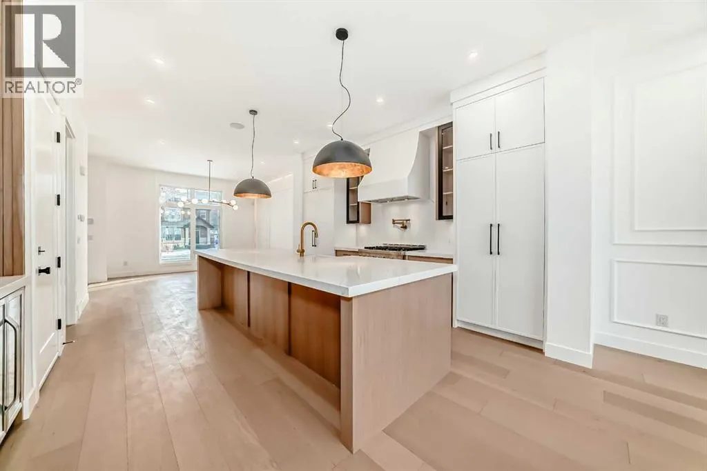 Hereâs a polished, refined rewording that keeps the luxury tone while improving flow and clarity:---Located in the highly sought-after inner-city community of Parkdale, this exceptional custom-built home offers a rare opportunity to own a truly remarkable residence. This brand-new, semi-detached two-storey home is impeccably finished and thoughtfully designed, featuring upgraded engineered hardwood and vinyl plank flooring, a designer kitchen with premium JennAir appliances, elegant quartz countertops throughout, and a total of five bedrooms and 3.5 bathroomsâincluding a fully legal basement suite with a private entrance. With over 2,600 sq. ft. of beautifully curated living space, every detail has been carefully considered to deliver elevated modern living.The open-concept main floor is highlighted by soaring 10-foot ceilings and expansive windows that flood the space with natural light. A bright dining area with a striking feature wall and accent lighting flows seamlessly into the formal living room, complete with a sleek contemporary fireplace and large picture windows overlooking the backyard. The show-stopping chefâs kitchen impresses with two-tone cabinetry, soft-close drawers and doors, an oversized island with farmhouse sink, built-in desk with bar fridge, and a full JennAir appliance package including a gas range with convection oven and refrigerator/freezer.Upstairs, youâll find three generously sized bedrooms and two full bathrooms, anchored by the luxurious ownerâs retreat featuring vaulted ceilings, expansive windows, a custom walk-in closet with built-ins, and a spa-inspired ensuite with heated tile floors, freestanding soaker tub, quartz-topped dual vanities, and a glass-enclosed shower with full tile surround. Two additional bedrooms, a full bathroom with quartz counters, and a dedicated laundry room with built-in cabinetry and sink complete the upper level.The fully finished legal basement suite offers excellent flexibility and income pote ntial, showcasing vinyl plank flooring, a spacious recreation room, an eat-in kitchen with Samsung stainless steel appliances, two bright bedrooms, a full bathroom, and laundry hookups.Additional highlights include a main-floor mudroom with built-in lockers and cabinetry, built-in ceiling speakers on all three levels, upgraded lighting, a custom hidden white oak closet in the foyer, a fenced backyard with aggregate patio and gas BBQ line, and a detached double garage with 220V wiring. The home is also roughed-in for central air, central vacuum, security, and radon mitigation.Ideally located just steps from the Parkdale Community Centre and Gardens, and within walking distance to the Bow River pathway system, Foothills Medical Centre, and schools, this home is also minutes from the University of Calgary, major shopping destinations, popular parks, transit, and downtown. An exceptional property offering refined style, comfort, and unbeatable convenience. (id:27476)