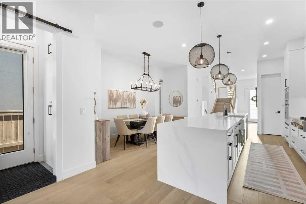 Welcome to modern farmhouse luxury in the highly sought-after community of Altadore. This meticulously finished home combines exceptional design with thoughtful craftsmanship at every turn. The open-concept main floor boasts soaring 10â ceilings, wide-plank flooring, and a layout designed for both daily living and entertaining. At the heart of the home, the chefâs kitchen impresses with high-end stainless steel appliances, expansive quartz countertops, a large central island perfect for gatherings, and ample pantry storage, flowing seamlessly into the dining area and living room, complete with a modern gas fireplace and feature wall. A spacious mudroom with custom built-ins adds everyday convenience, while the striking front-entry staircase enhances the homeâs generous width and makes a memorable first impression. Upstairs, three generously sized bedrooms include a showpiece primary retreat with his-and-hers walk-in closets and a spa-inspired ensuite featuring a freestanding tub, dual vanities, glass shower, and private water closet. Two additional bedrooms share a full bathroom, complemented by a thoughtfully designed upper-level laundry room. The fully developed lower level offers a large media and recreation area plus a dedicated home office, providing flexibility for work and play. Oversized sliding doors create effortless indoorâoutdoor living, opening to a large backyard deck with railing and low-maintenance turfâideal for entertaining or relaxing. Recent upgrades, including central air conditioning, a garage-installed EV charger, and a water conditioning system, enhance comfort and efficiency. Finished with premium materials, custom cabinetry, floor-to-ceiling windows, and top-quality appliances and fixtures, this move-in-ready Altadore home delivers an unparalleled inner-city lifestyle just steps from shopping, dining, parks, Marda Loop, the dog park, and minutes to downtown. (id:27476)