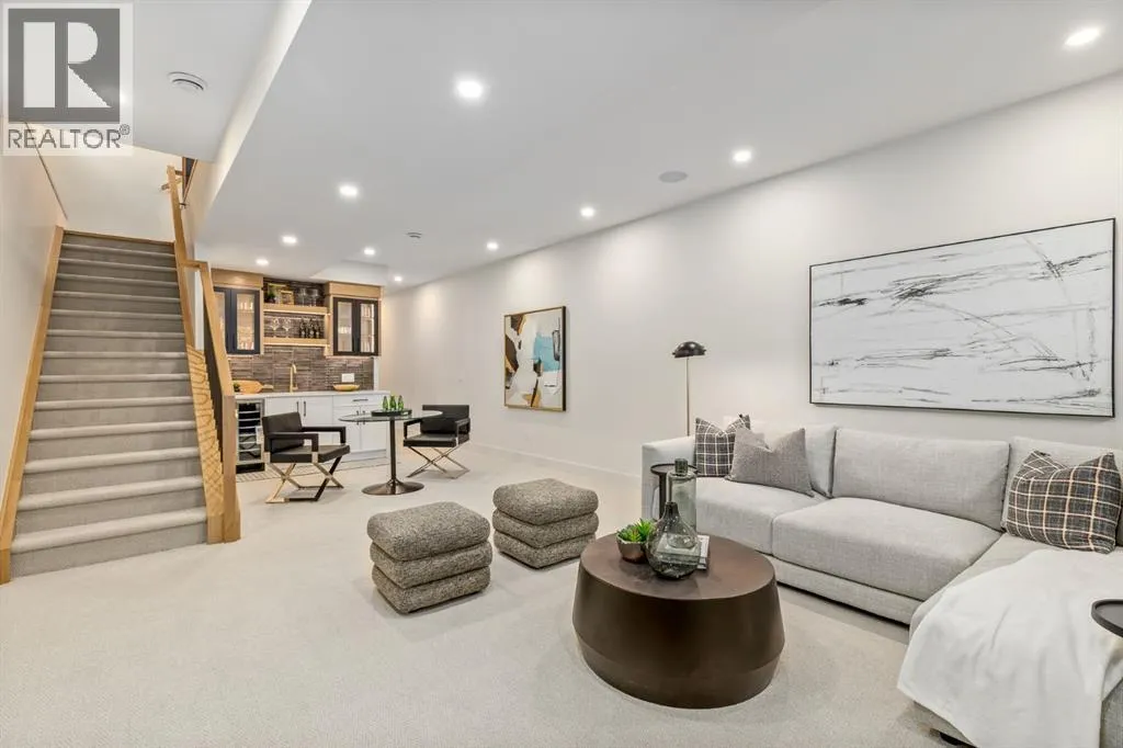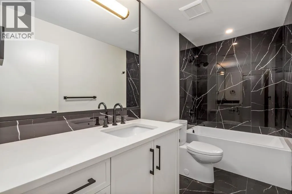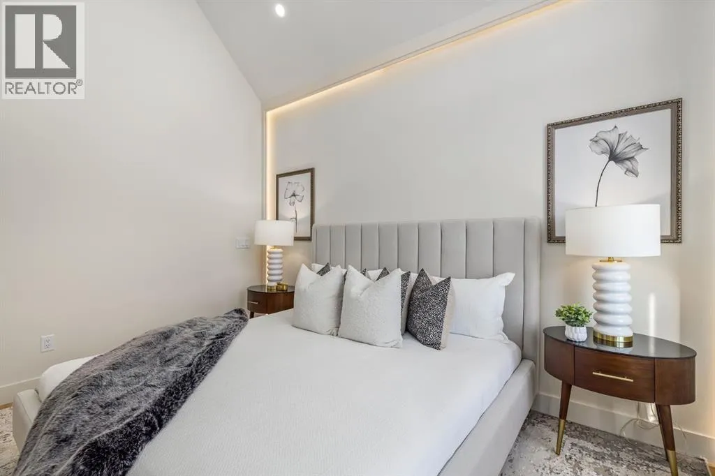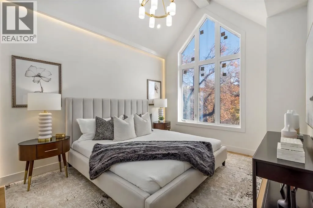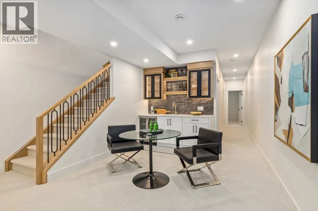 OPEN HOUSE Sunday Feb 15th 1-4PM! Experience elevated inner-city living with this impeccably designed, brand-new home nestled in one of Calgaryâs most sought-after neighbourhoods: Hillhurst. Constructed by a trusted local builder known for craftsmanship, functionality, and aesthetic excellence, this 2-storey residence offers 2,224 SF above grade, with a fully developed basement, 4 bedrooms, and 4.5 bathroomsâa perfect blend of modern luxury and thoughtful detail. From the striking brick facade to the high-end engineered wide plank oak hardwood, every inch of this home exudes quality. The main floor welcomes you with a built-in entry feature and a front formal dining area, accented by elegant wall mouldings, white and gold sconces, and a designer chandelier. At the other end, an open-concept living room is a showstopper, featuring a large-format textured tile fireplace, custom built-ins with display lighting, and massive patio sliders leading to a west-facing, 135-ft deep backyard with a raised patio and gas lineâideal for indoor-outdoor entertaining. The chefâs kitchen is nothing short of stunning, complete with a 2.5" thick quartz island, panel-ready fridge/freezer with knurled handles, sleek quartz countertops, a gas range with pot filler, and backlit display cabinets framing the custom hood fan. Youâll also find a farmhouse sink, full slab backsplash, hidden coffee/appliance nook, built-in pantry, and a drawer-style microwaveâeach designed to inspire culinary creativity. Tucked behind a barn-style sliding door, the den offers a quiet workspace with a built-in desk, shelving, and bright window. The mudroom, also with a barn door, features tiled flooring, a built-in bench, and a large closet for seamless organization. Upstairs, each of the three spacious bedrooms come with walk-in closets and custom built-ins, along with private ensuites. The primary is sure to impress with vaulted ceilings, a LED-lit feature wall, statement gold light fixture, and a spa-inspired ensuite that boasts a steam shower, dual vanities, and a standalone soaker tub with dramatic black and white tile wall backdrop. A nearby laundry room offers convenience with a sink, folding station, shelving, and tile backsplash. The fully finished, carpeted basement, with 9-ft ceilings, is roughed in for in-floor heating and designed for comfort and versatilityâfeaturing a spacious rec area, a TV wall with built-in components, a wet bar with lit display shelves and tile flooring, a full bath, and a large fourth bedroom with built-ins including a desk. An efficient mechanical room completes the lower level, with additional upgrades including solid core doors and built-in speakers throughout the entire home. Perfectly situated just steps from shops along 14 St NW and walking distance to Kensington Village, Calgaryâs extensive river pathways, and the Downtown Coreâthis is urban luxury at its finest. Act now and make this exceptional Hillhurst property your forever home. (id:27476)