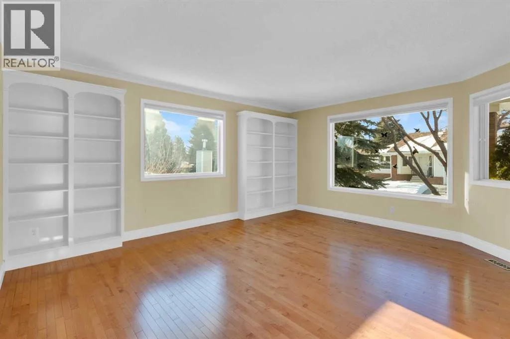 Welcome to this exceptional bungalow villa in the highly sought-after +50 community of Horizon Village Varsity. Offering over 2,600 sq. ft. of fully developed living space, this air-conditioned, semi-detached home features three bedrooms, three full bathrooms, a dedicated office, and a front-facing double attached garage. Thoughtfully upgraded and meticulously maintained, this home delivers a bright, comfortable, and low-maintenance lifestyle in a vibrant, well-established communityThe radiant main floor is beautifully finished with maple hardwood flooring throughout and designed for both comfort and entertaining. The spacious living room features Southwest-facing views, custom built-in bookcases, and elegant French doors at the front entry, creating a warm and inviting atmosphere. The well-appointed kitchen offers ample cabinetry, an oversized peninsula with extra storage, adjoining kitchen nook leading to the extra wide patio doors that open to a private deck with a retractable awning and adjacent formal dining room provides the perfect setting for hosting family and friends all overlooking a tranquil green space.The primary suite includes a 3-piece ensuite with a walk-in shower, while a second spacious bedroom, full bathroom, and convenient main-floor laundry complete this thoughtfully designed level.The fully finished basement offers an impressive and versatile living space, featuring a spacious recreation room with oversized windows and a cozy corner gas fireplace. This level also includes a bright and generous third bedroom, a large 3-piece bathroom, designated office with built-in shelving ideal for a home office, and a large storage room all perfectly completing this exceptional lower level.Residents enjoy exclusive access to the Horizon Village clubhouse, complete with a full kitchen, exercise room, library, and inviting social spaces perfect for staying active and connected in this vibrant community. This unbeatable location places you just steps from Market Mall and minutes to the University of Calgary, Foothills Hospital, Nose Hill Park, and Silver Springs Golf Course. Opportunities like this are rare; experience relaxed, community-focused living in the heart of Varsity. Book your private showing today (id:27476)