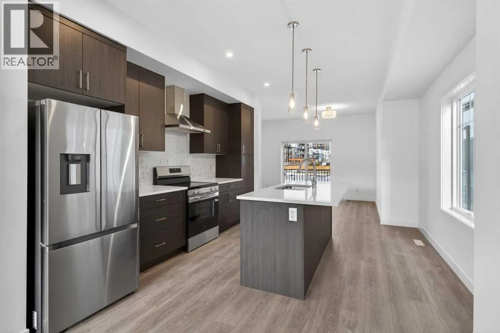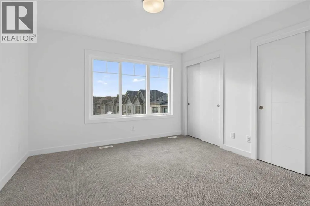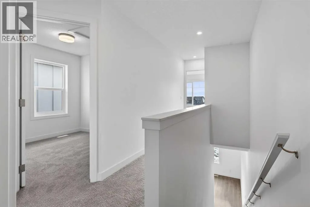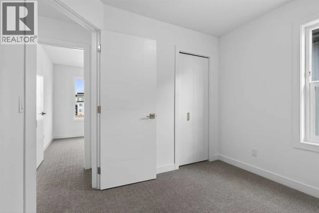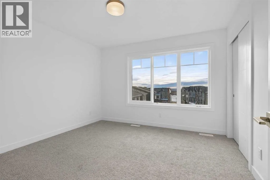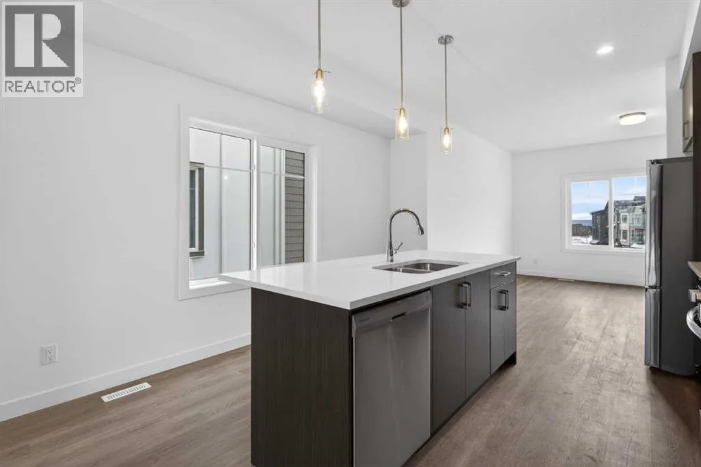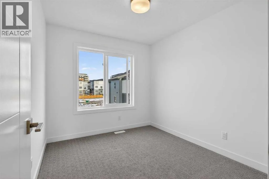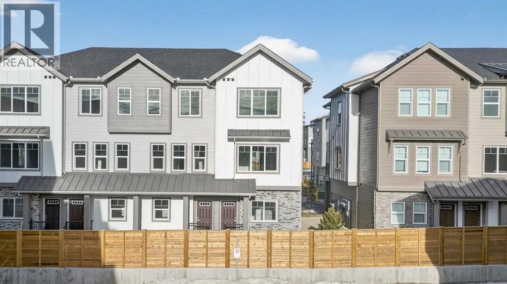 **Immediate Occupancy** Discover the charm and convenience of our Juniper Townhomes â a collection of stylish heritage-style row townhouses near the heart of our beautiful Environment Reserve Park!This Heritage model B (Corner unit) offers the perfect blend of comfortand function, ideal for families and professionals alike. With 3 bedrooms, 2.5 bathrooms, and a versatile main-floor den, this spacious home isdesigned for modern living. Upon entry, you'll find a bright, ground-floor den/home office featuring a large window, closet, and a convenient powderroom. Enjoy a professionally landscaped front yard, a single attached garage, and additional driveway parking. The open-concept main floor boasts 9'ceilings and is filled with natural light, creating a warm and inviting space for everyday living or entertaining. The modern kitchen features quartzcountertops, a breakfast bar, professional stainless steel appliances, and a chimney-style hood fan. Sliding doors open to a full-sized balcony â idealfor relaxing or dining outdoors. Upstairs, you'll find two spacious bedrooms, including a primary suite with a double access closet and a privateensuite featuring a stand-up shower and sliding glass door. A second full 3-piece bathroom serves the additional bedroom, which can easily double asa home office. The upper level also includes a conveniently located washer and dryer, a linen closet, and thoughtful storage throughout. This home islocated in vibrant Springbank Hill and offers easy access to Aspen Landing, Rundle College, Griffith Woods, Ambrose University, restaurants, andsenior care facilities. * The GST is included in the price. (id:27476)