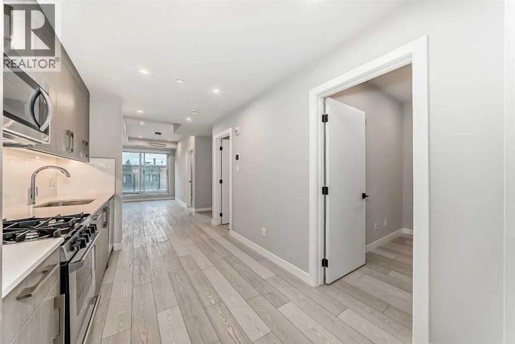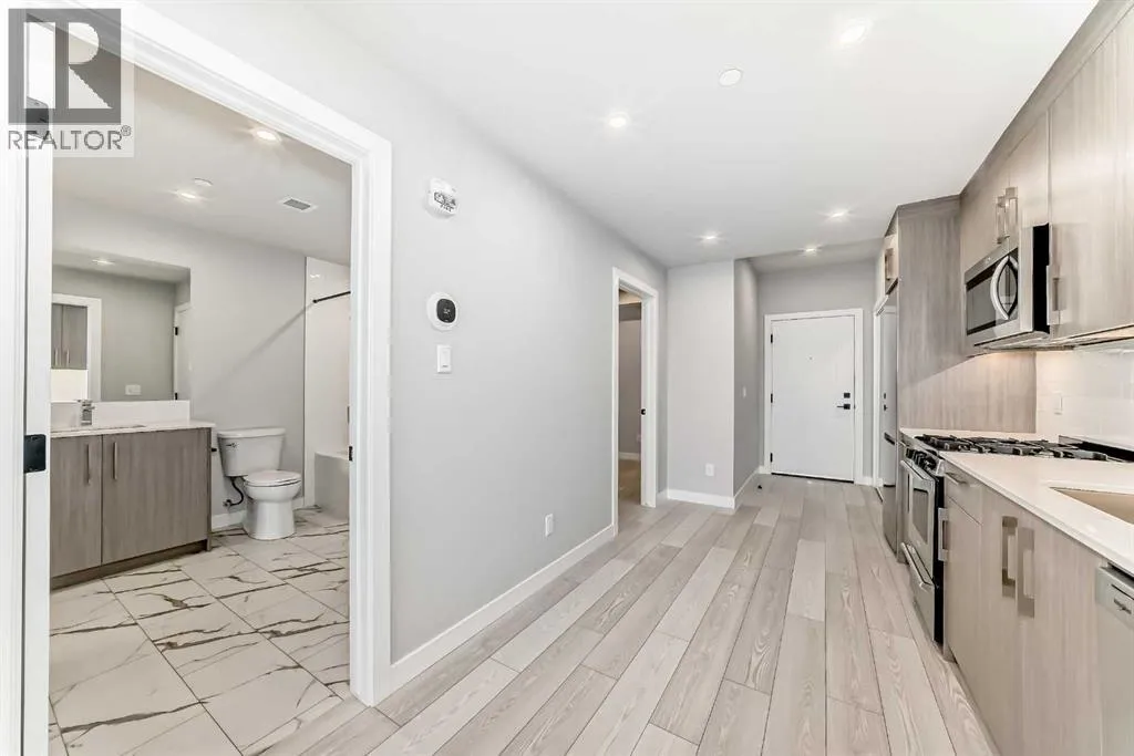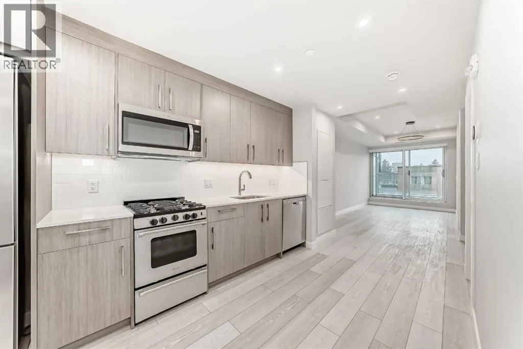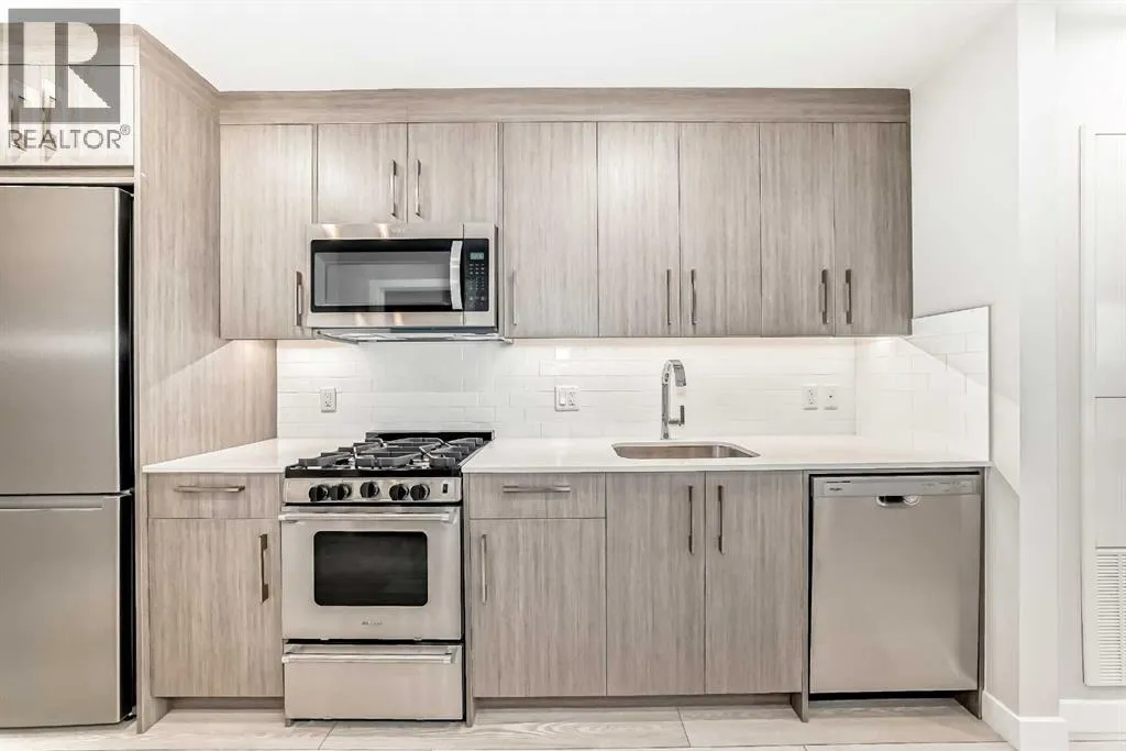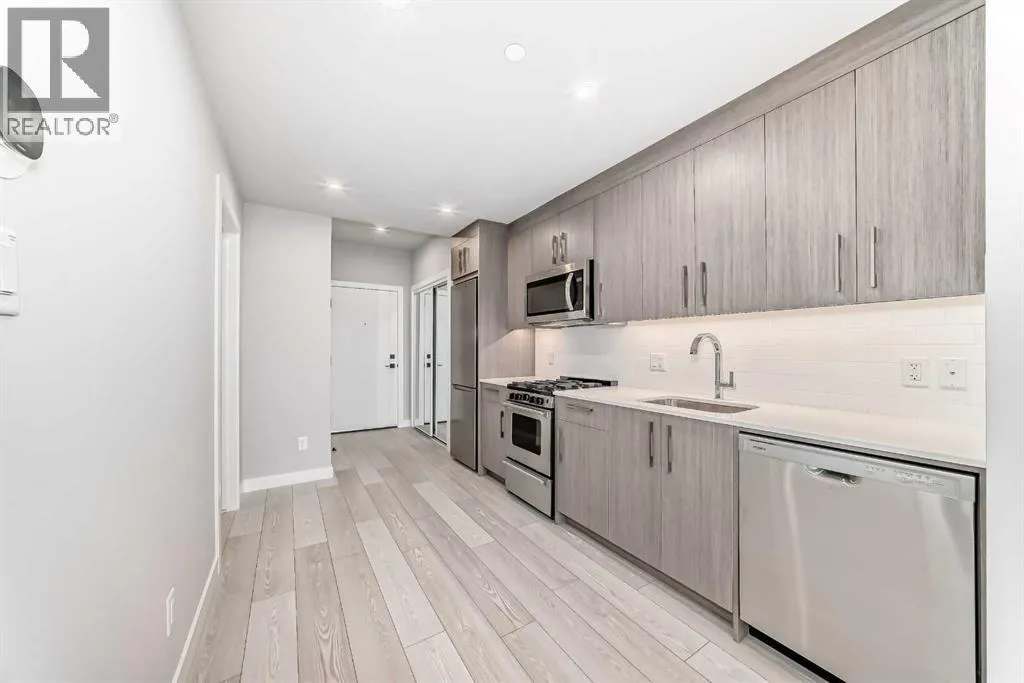 Welcome to Frontier by Truman â Brand New 2 Bed, 1 Bath Condo in the Heart of Kensington!Discover the ideal mix of modern design and city living in this brand-new 2nd floor unit located in one of Calgaryâs most walkable and vibrant communities. Just steps from Kensingtonâs popular cafés, restaurants, boutique shops, and minutes from the Bow River pathways and downtown.This spacious 2-bedroom, 1-bathroom condo features an open-concept layout with a chef-inspired kitchen, quartz countertops, stainless steel appliances, and a bright living area that opens onto a private balcony with gas BBQ hookup.Both bedrooms are generously sizedâperfect for a home office, guest room, or shared living. The elegant 4-piece bathroom is finished with premium materials and a modern design.Additional Features:Private balcony with views & gas BBQ hookupUnderground titled parking stallSecure storage lockerAccess to a private landscaped terraceState-of-the-art fitness centreStylish co-working spacesSecure underground bicycle storageSame-floor garbage chute for convenienceLow-maintenance living, and unmatched location make this home perfect for first-time buyers, professionals, or investors.Donât miss your opportunity to own in Frontierâbook your private showing today! (id:27476)