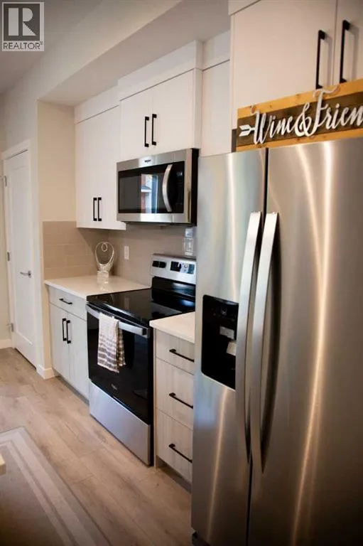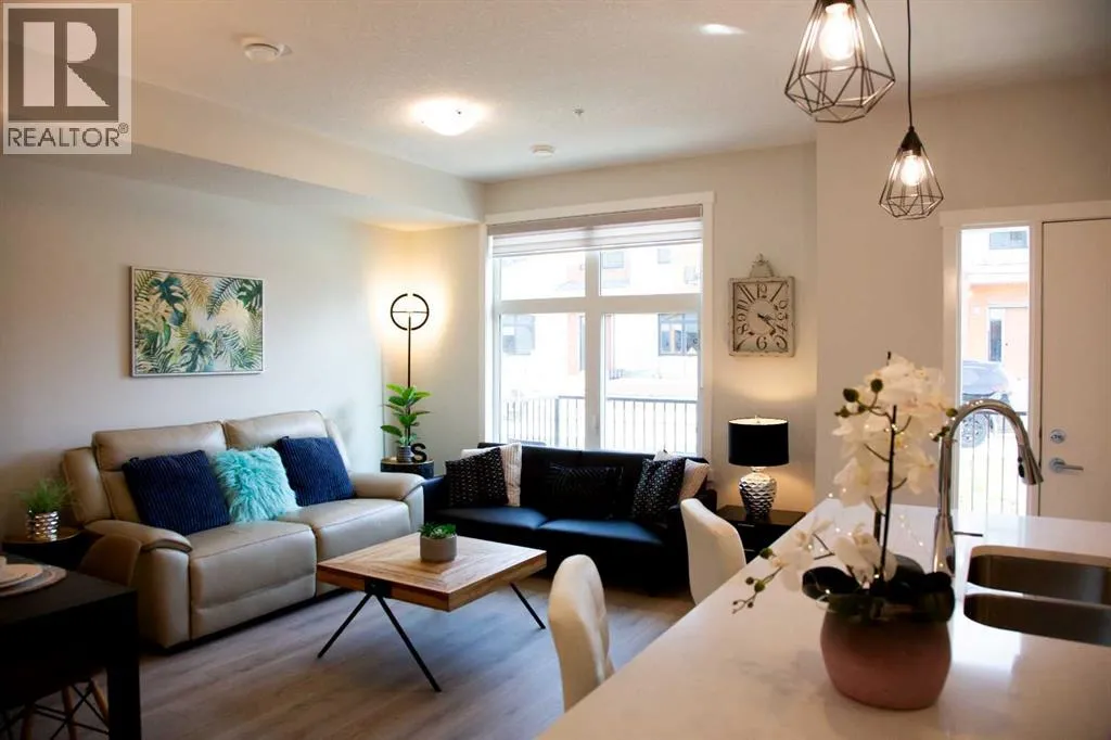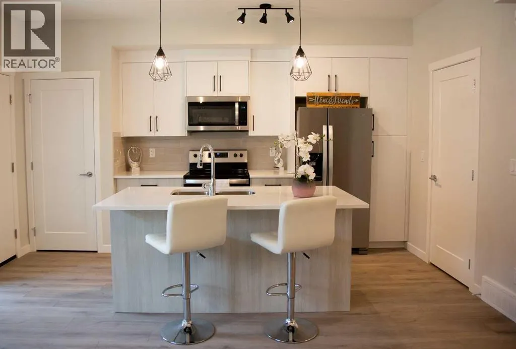 Sun-Filled South-Facing End Unit | Brand-New Furnished 2-Bedroom Townhome (2025 Build)You wonât want to miss this bright, south-facing end-unit townhome, filled with natural sunlight through expansive windows morning and afternoon. Built in 2025 and offered furnished, this exceptional home is ideal for professionals, a small family, or retirees seeking space, comfort, and low-maintenance living.Featuring 9â ceilings on both floors, this home offers a spacious open-concept layout complemented by modern, upscale finishes. The sunlit main living area showcases quartz countertops, zebra blinds, two generous closets, and a large pantryâperfect for both everyday living and entertaining.Both bedrooms are generously sized, easily accommodating full bedroom furniture with room to spare. The primary bedroom includes a walk-in closet with direct ensuite access, while the second bedroom is equally spacious and flexibleâideal as a guest room/home office, or second bedroom. Second-floor in-suite laundry adds everyday convenience.The modern kitchen is fully equipped with a full-size refrigerator with water and ice dispenser, ideal for contemporary living.Enjoy stress-free living with no exterior maintenance requiredâsnow removal, landscaping, and exterior upkeep are all taken care of, allowing you to simply move in and enjoy.Utilities included:Gas / HeatWaterHigh-Speed InternetParkingParking is conveniently located directly outside the back entrance, with an optional second underground parking stall available.Located in a prime, family-friendly community, this home is directly across from a large park, close to schools, shopping, and transit, and within walking distance to a new plaza currently under construction, including Tim Hortons and additional amenities. Commuters will appreciate the approximately 7-minute bus ride to the train station, offering quick and easy access to the rest of the city.One well-behaved pet permittedA rare opportunity to lease a brand-new, south-facing, furnished townhome with spacious bedrooms, no exterior maintenance, exceptional inclusions, and an unbeatable location.Contact today to arrange your private viewing. (id:27476)