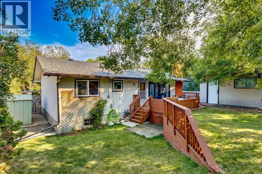 Welcome Home to this Bright and Charming 5-Bedroom Bungalow ideally located on a quiet street in Huntington Hills â close to parks, schools, shopping, transit, and just minutes to Nose Hill Park, downtown, and the airport.This community has already seen tremendous growth, with many homeowners renovating and reinvesting in their properties. Just look at the communities south of here â the same potential is unfolding in Huntington Hills, making it one of Calgaryâs most promising areas for future value.The home itself offers over 2,100 sq. ft. of living space and sits on a west-facing lot with just over 6,000 sq. ft. of private backyard space, surrounded by beautiful mature trees for shade and privacy. Inside, natural light fills the spacious family kitchen with eating area, featuring upgraded kitchen cabinets, while the living/dining area offers hardwood flooring and a cozy wood-burning fireplace. French doors open to a large deck and landscaped backyard â perfect for entertaining.Three bedrooms on the main floor include a primary with 3-piece ensuite, all with hardwood flooring. The fully finished lower level adds a large rec room with gas fireplace, family room, 2 additional bedrooms (The two rooms in the basement currently used as bedrooms do not meet current legal egress requirements), 3-piece bathroom, sauna (as-is, homeowner has never tried using it), cold storage, and laundry/utility room.Numerous updates throughout the home include a high-efficiency furnace (2023), newer roof, and newer hot water tank, giving peace of mind for years to come. An oversized detached double garage completes the property.This is more than a home â itâs an opportunity to invest in a growing community with limitless potential. Just move in and enjoy! (id:27476)