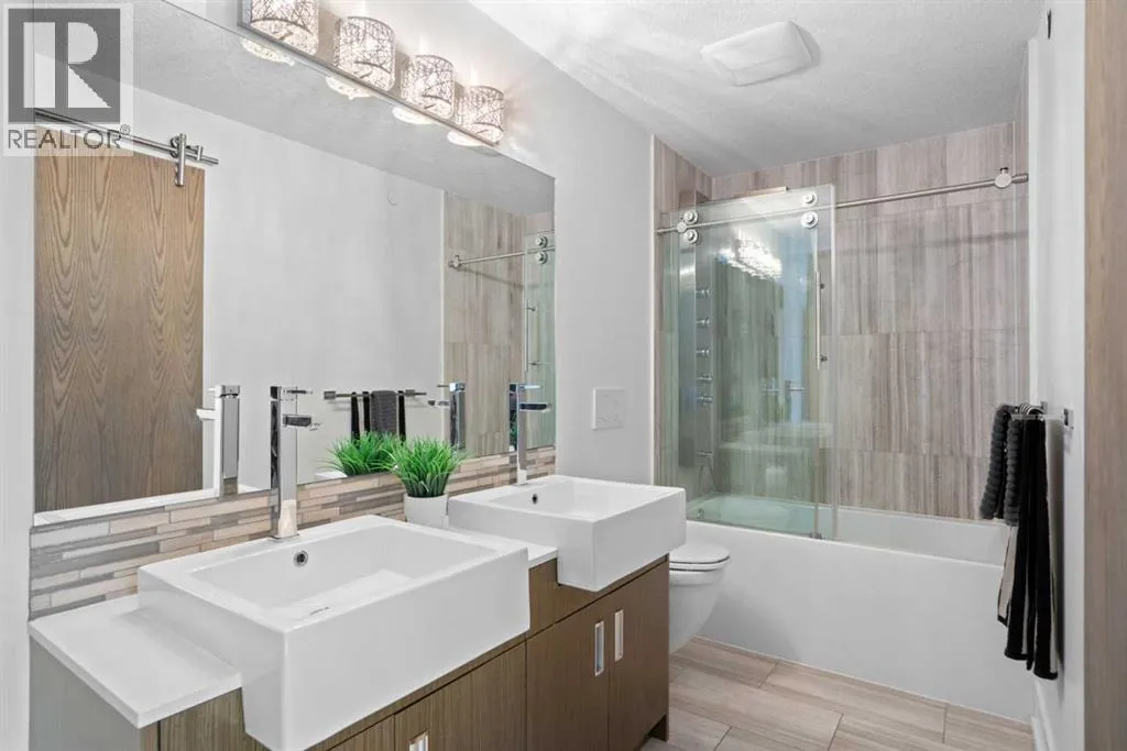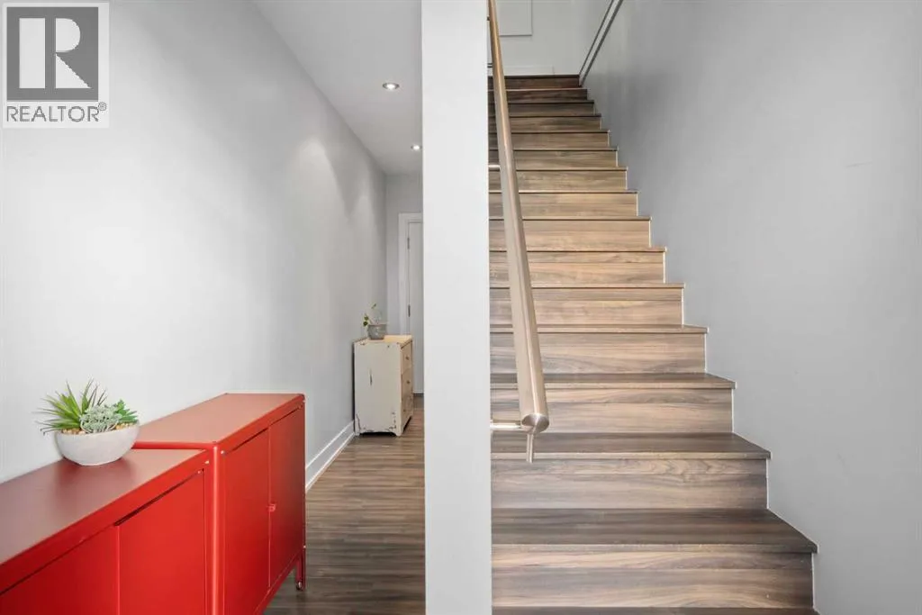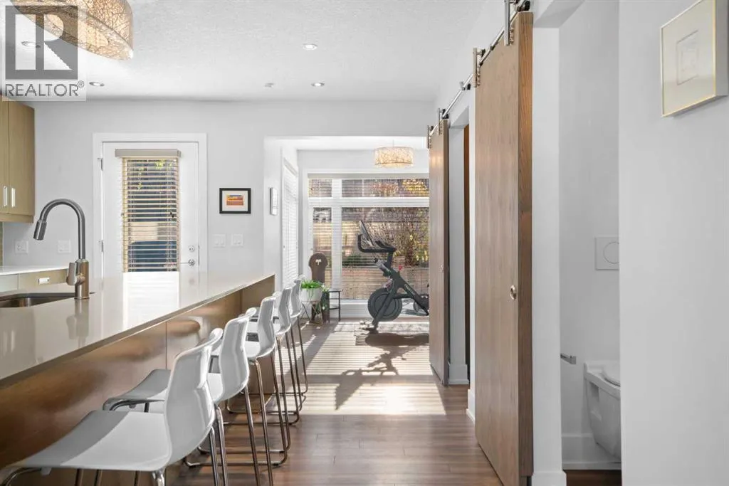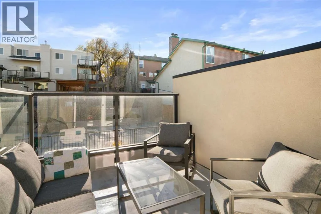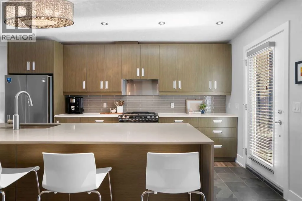 This stylish and sun-filled townhouse in Bankview offers the perfect blend of modern design, functional space, and unbeatable value. Featuring two heated and secure underground parking stalls, this home stands out with thoughtful upgrades and a layout ideal for both everyday living and entertaining. The open-concept main floor is anchored by soaring 9-foot ceilings and durable laminate flooring throughout. A spacious living room offers plenty of room to relax or host guests, while the kitchen is a true showpiece with a large waterfall quartz island, undermount sink, stainless steel appliances, gas range, and a deep pantry with both open and closed storage. The adjacent dining area is surrounded by two walls of south-facing windows, filling the space with natural light. Just outside, a shared patio with gas hookup creates a perfect spot for summer evenings and weekend lounging. A convenient two-piece bathroom completes the main level. Upstairs, both bedrooms are generously sized and feature their own private ensuite bathrooms and built-in wardrobes. The primary suite is oversized with excellent storage and a sleek 4-piece bath. The secondary bedroom features a five-piece ensuite, additional closet space, and its own private south-facing balcony overlooking the courtyard. The upper level also includes the laundry machines, conveniently located near both bedrooms for added ease and efficiency. With secure underground parking, modern finishes, and a location close to transit, shopping, parks, and the university, this home is the total package. Monthly condo fees include everything except electricity, offering true peace of mind in this turnkey property. (id:27476)
