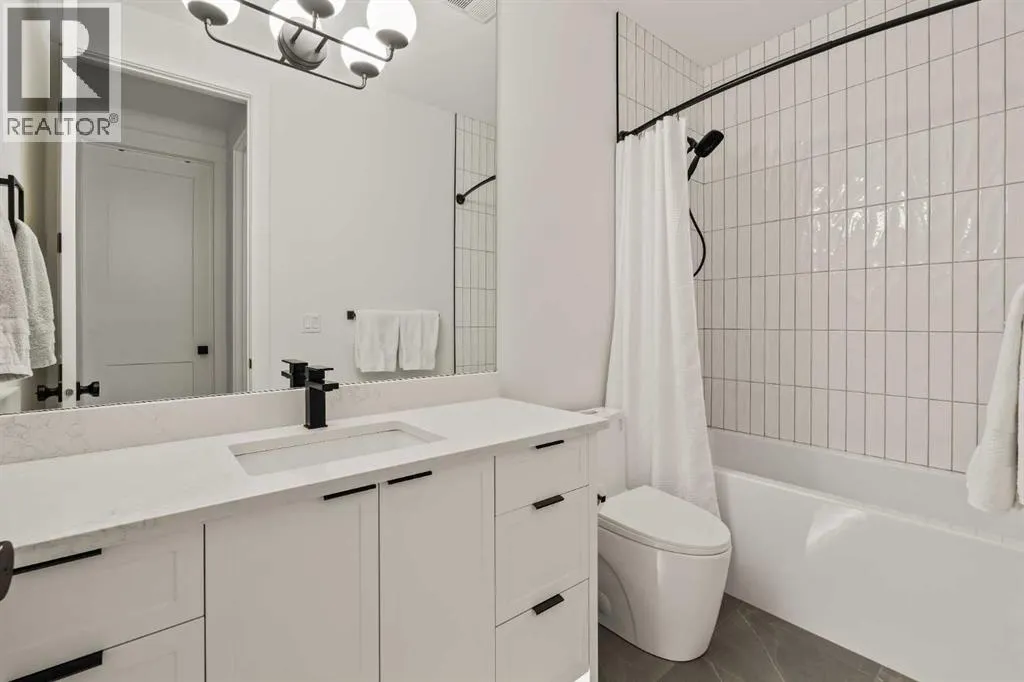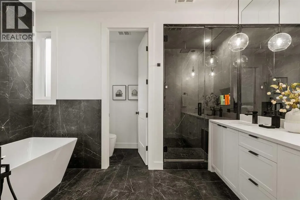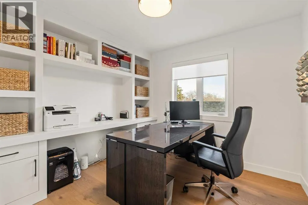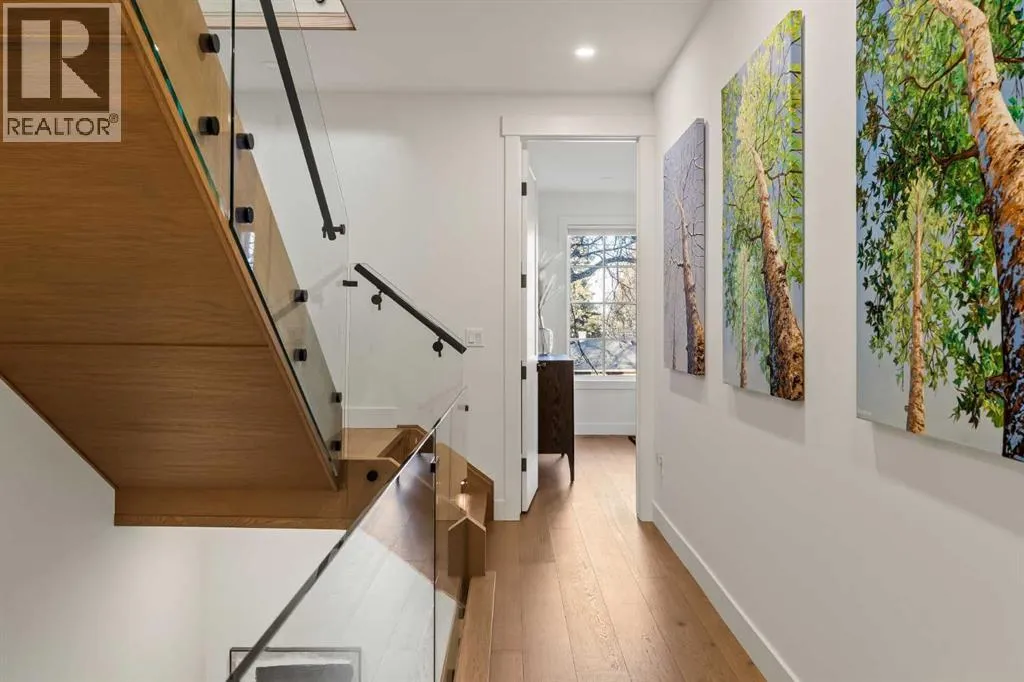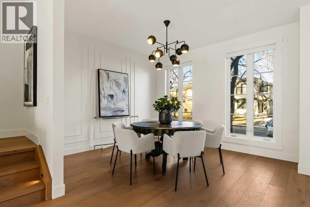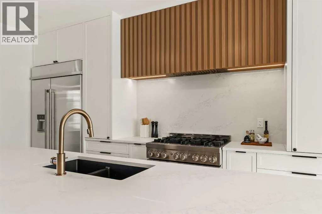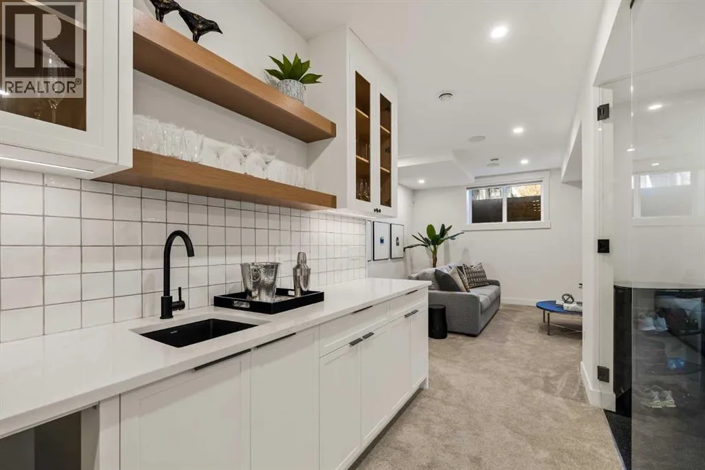 Stunning luxury 3-storey semi-detached residence offering 4 bedrooms, 4.5 bathrooms, a private south-facing backyard, fully air conditioned & ideally located in the heart of highly sought-after Altadore. Showcasing exceptional curb appeal with a gorgeous front elevation, this modern home is filled with natural light from expansive windows & features, thoughtful design & high-end upgrades throughout.The inviting front entry is both stylish & functional, complete with a built-in bench, coat hooks, & smart shoe storage. A front dining room sets the stage for elegant entertaining, while the heart of the home is the extensively upgraded central kitchen, anchored by a large waterfall island. Highlights include full-height cabinetry, deep lower drawers, soft-close hardware, a built-in pantry, & custom hood fan. Premium JennAir stainless steel appliances include a French-door refrigerator, gas range, built-in microwave, garburator & dishwasher. Across from the island, additional built-in cabinetry & counter space feature a beverage cooler.The rear living room is warm & refined, centred around a gas fireplace with recessed built-ins & custom millwork. Ten-foot-wide sliding patio doors open onto a south-facing exposed aggregate deck, seamlessly blending indoor & outdoor living. A spacious rear mudroom offers a closet, bench, & coat hooks, along with a private powder room featuring a vessel sink & sleek linear mirror.The second level includes the primary retreat featuring a generous bedroom & a spa-inspired 5-piece ensuite with a freestanding soaker tub surrounded by floor-to-ceiling tile, heated floors, a custom walk-in glass steam shower with rainfall shower head & built-in bench, dual vanity, & a walk-in closet with custom organizers, drawers, and a full-height mirror. Two additional bedrooms, complemented by a beautiful 4-piece bathroom & a thoughtfully designed laundry room with abundant cabinetry, counter space, & sink.The third level offers incredible flexibility wi th a bright loft-style bonus room featuring a built-in media centre & wet bar with beverage cooler, a separate home office, a full four-piece bathroom, & access to a private south-facing balcony. This level can also easily function as a studio-style 5th bedroom.The fully developed lower level is equally impressive, featuring a family room with wet bar & custom cabinetry, a 10-foot-wide glass-enclosed home gym with rubber flooring, a 4th bedroom, & a 3-piece bathroom. This level is roughed-in for in-floor heating. Built-in speakers are installed throughout the home & centrally wired to the mechanical room, & the property is also roughed-in for a central vacuum system.Outside, the backyard has been upgraded with turf for low-maintenance living, while the deck offers the perfect space for outdoor furniture. Altadore remains one of Calgaryâs most desirable inner-city communities, offering quick access to Glenmore Athletic Park, Marda Loop, River Park off-leash, Sandy Beach, schools and more! (id:27476)
