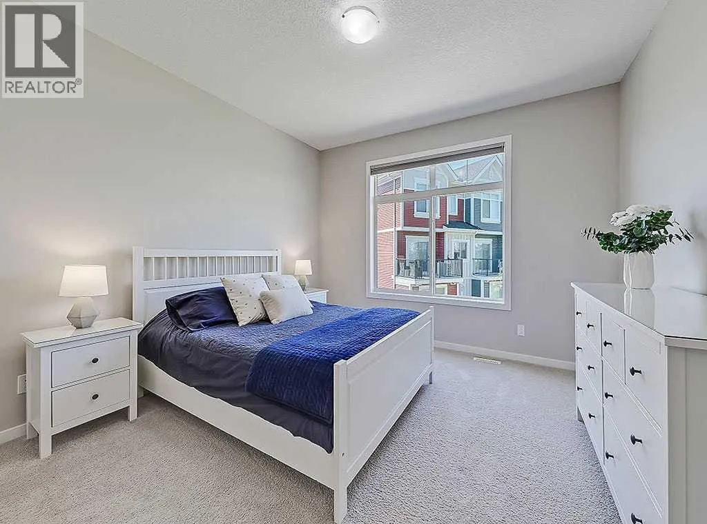 Welcome to Carnaby Heights, a highly desirable townhome community in the heart of Nolan Hill. This exceptional townhome offers over 1,500 sq. ft. of thoughtfully designed living space, featuring 3 bedrooms, 2.5 bathrooms, 2 balconies, central A/C, and a rare heated TRIPLE garage with abundant storage. Situated along the inner courtyard of the complex, this home offers a quiet and peaceful location. Inside, youâre greeted by a bright and welcoming entryway that leads into the main floor, where oversized windows fill the space with natural light. The gourmet kitchen showcases upgraded stainless steel appliances, quartz countertops, extensive cabinetry with under-cabinet lighting, and a walk-in pantry. An east facing private balcony just off the kitchen is perfect for watching the sunrise, while the spacious dining area seamlessly connects to the sunlit living room. From here, sliding doors open to a west facing second balcony overlooking landscaped green space and a playground, with a natural gas line for a BBQ. Upstairs, the primary suite comfortably fits king-sized furniture and includes a walk-in closet and a well-appointed ensuite with quartz counters, an oversized vanity, designer finishes, and a tub/shower combo. Two additional bedroomsâboth generously sizedâshare a stylish 4-piece bathroom. A large laundry room and a convenient linen closet complete the upper level. There are stunning hunter douglas window coverings throughout the home as well. The heated triple-car garage, equipped with electric units, offers exceptional storage and is paired with a functional mudroom entry and additional closet space. Set in Nolan Hillâs vibrant, family-friendly community, this home combines comfort and convenience. Enjoy nearby parks, schools, shopping, and quick access to major routesâall surrounded by the areaâs beautiful natural landscapes. (id:27476)