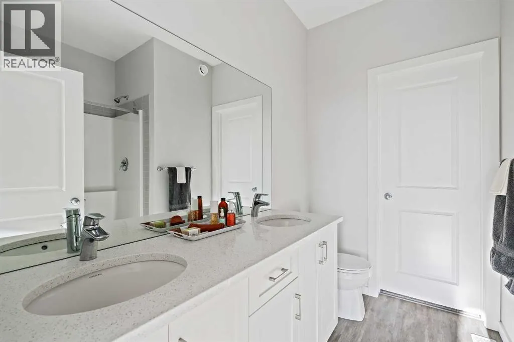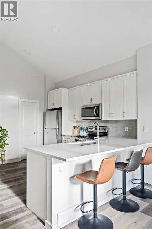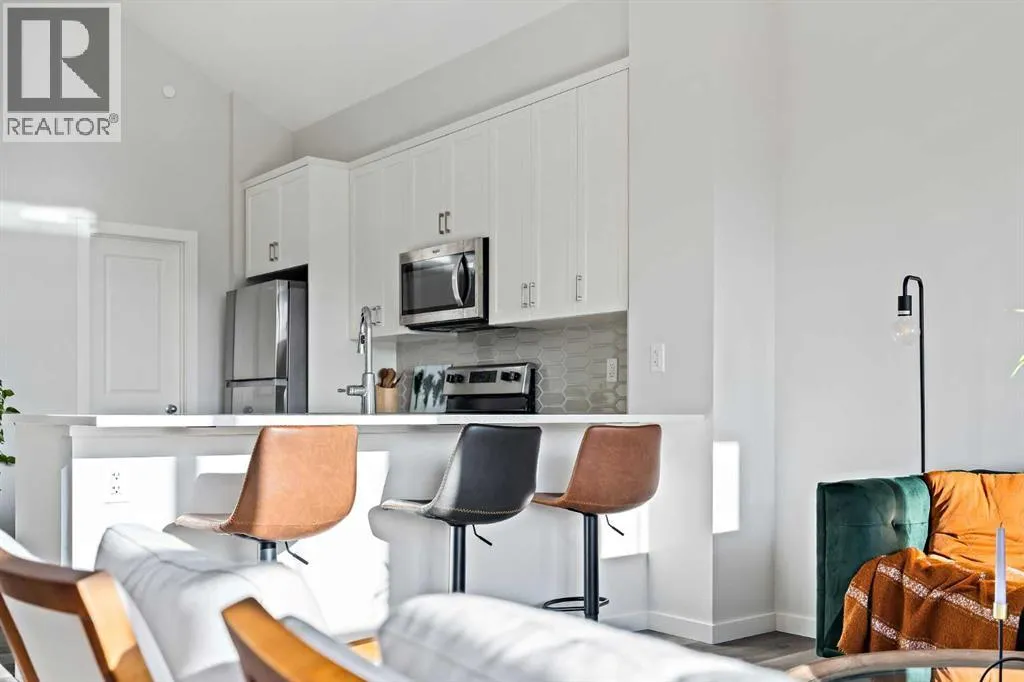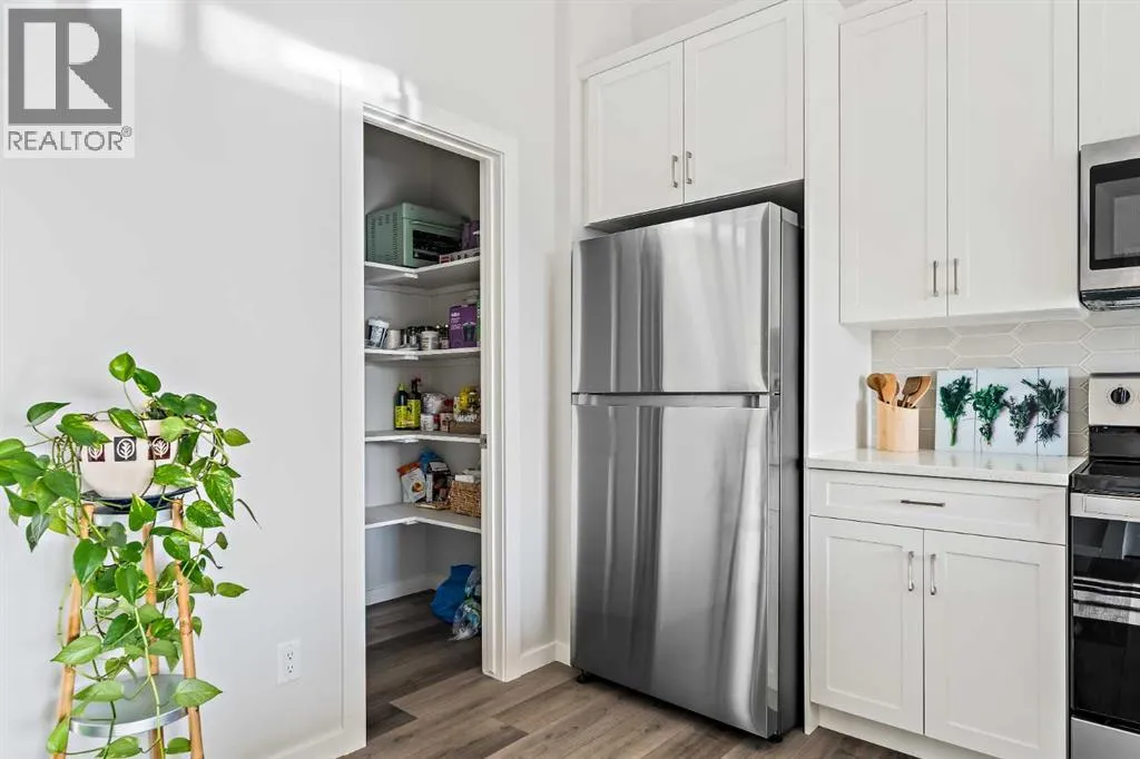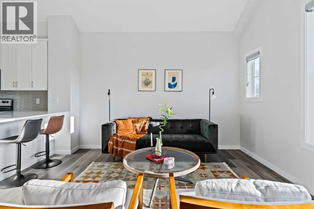 An exceptional opportunity to own a one-of-a-kind, maintenance-free townhouse overlooking green space in the vibrant community of Livingston. Offering nearly 1,000 sq. ft. of single-level living, this meticulously maintained home blends comfort, functionality, and timeless design. The grand main living area features resilient luxury vinyl plank flooring and a soaring vaulted ceiling spanning the living room and kitchen, creating a bright and airy atmosphere enhanced by large windows and South-facing exposure that flood the space with natural light. The living room is positioned at the front of the home, where expansive windows overlook the peaceful green space, providing a serene and private setting. The spacious kitchen showcases timeless white shaker cabinetry, stainless steel appliances, quartz countertops, a central peninsula island with a breakfast bar, a corner walk-in pantry, and abundant storage. There is ample room for a flexible dining area, making the space ideal for both everyday living and entertaining. Overlooking the living room, the kitchen layout is perfect for hosting or for those with young children. Completing the main level is a rear mudroom with direct access to the attached garage, a convenient 2-piece powder room, and a dedicated laundry room. The spacious primary bedroom is also located at the front of the home, offering additional green space views. It features a generous 4-piece ensuite with dual sinks, a walk-in shower, and a walk-in closet with upgraded shelving. The lower level awaits future development, offering excellent potential for a large recreation room, additional bedroom, bathroom, and storage space. An insulated attached garage completes the home, keeping your vehicle secure and clean year-round. This home is ideally situated with nearby shopping, restaurants, and cafes all within walking distance or a short drive.. Daily commuting is made easy with nearby public transit stops and quick access to Stoney Trail. Donât miss this opportunity to own a fantastic, low-maintenance property in one of Calgaryâs most desirable communities - Livingston. (id:27476)