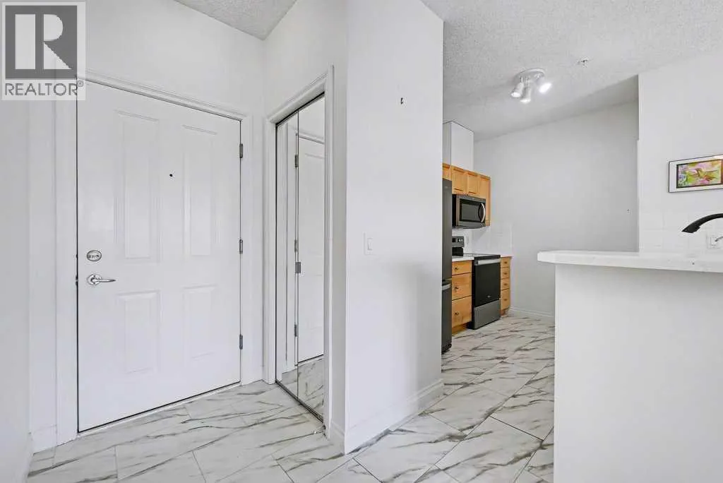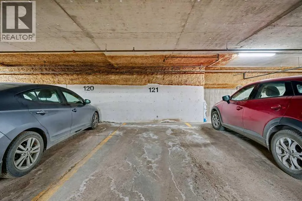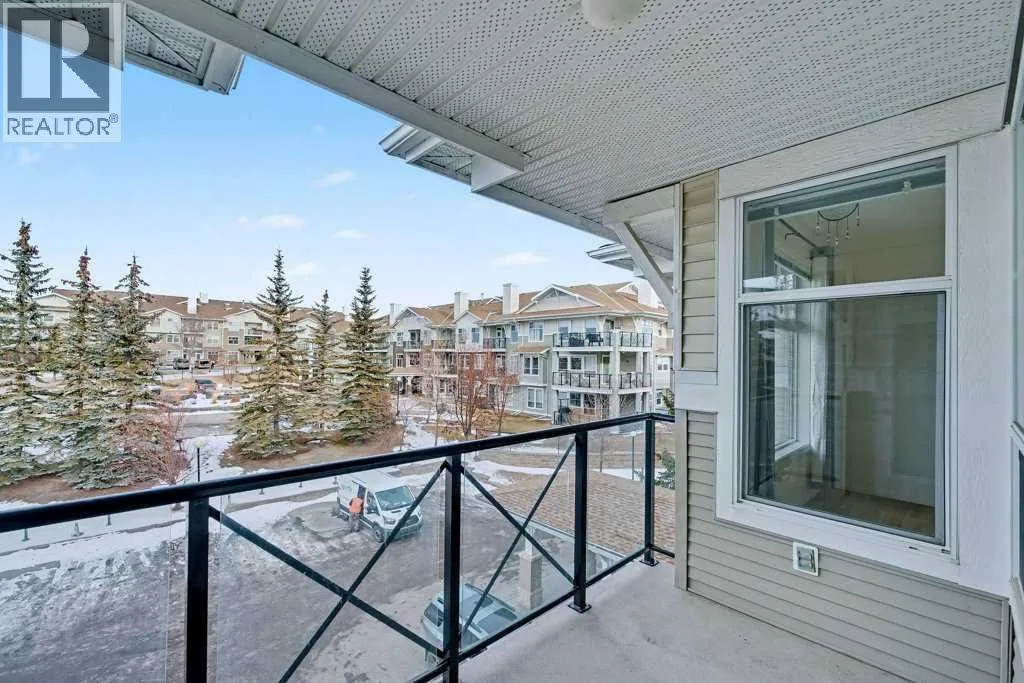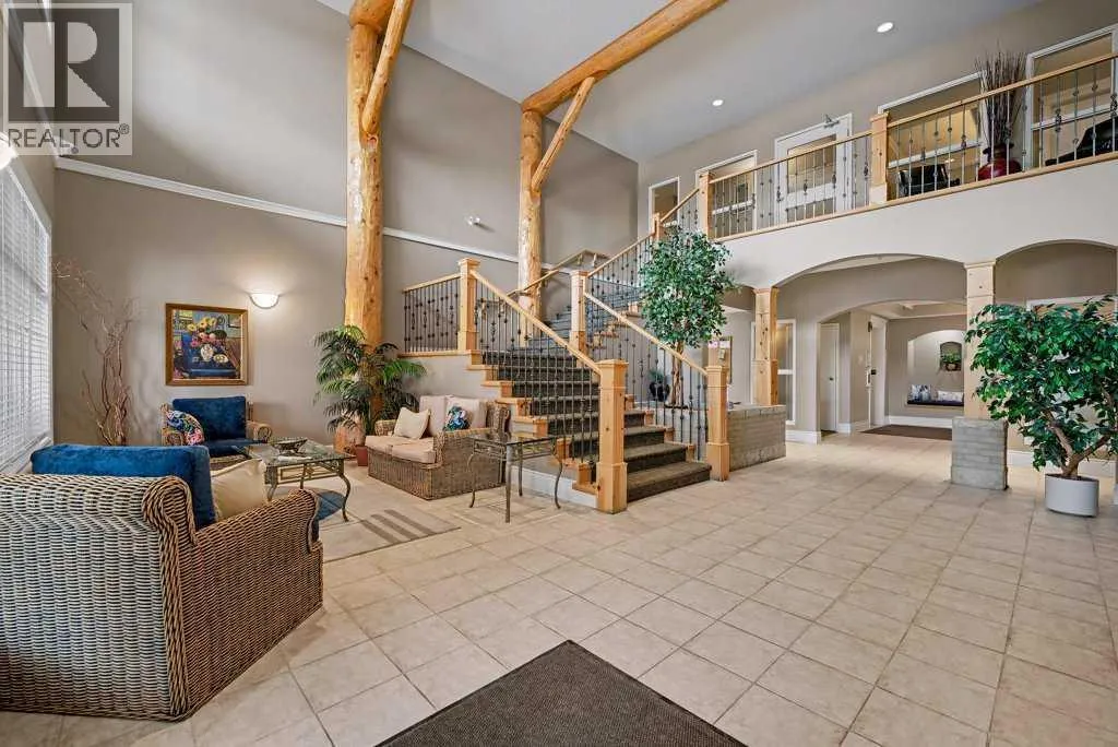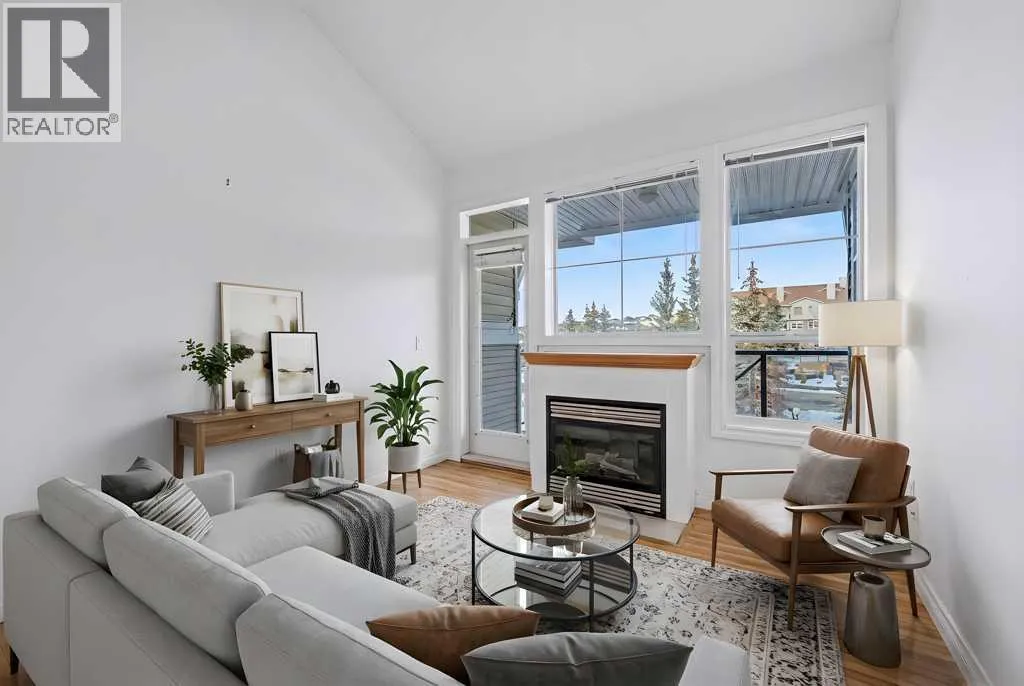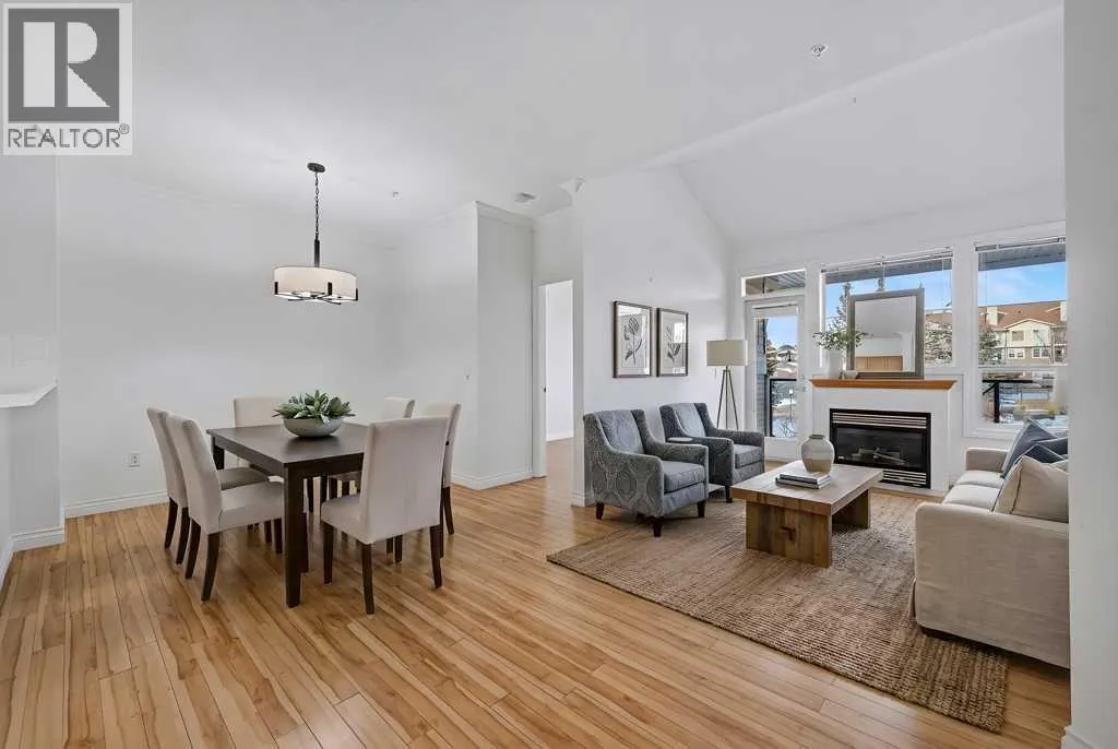 Bright and beautifully maintained top-floor condo in the well-established Stonecroft complex, located in the desirable lake community of Arbour Lake. This spacious 977 sq. ft. open-concept unit offers 2 bedrooms, a den, and two updated bathrooms, with a welcoming living room featuring vaulted ceilings, a cozy fireplace, and large windows that fill the home with natural light, plus a patio door leading to your private deck. The thoughtfully designed kitchen includes stainless steel appliances, upgraded countertops, a water filtration system, pantry, and convenient eating bar, complemented by a generous dining area ideal for hosting family or friends. The primary bedroom features a walk-in closet and updated 3-piece ensuite, while the second bedroom is privately located on the opposite side of the unit, and the den with French doors provides the perfect space for an office or hobby room. Additional highlights include titled underground parking, an assigned storage locker, and in-suite laundry, all within a beautifully maintained complex offering manicured grounds with a fountain, social room with kitchen, woodworking shop, guest suite, and ample visitor parking, just steps from Arbour Lake, Crowfoot shopping, transit and C-Train, YMCA, and easy access to Stoney Trail. (id:27476)