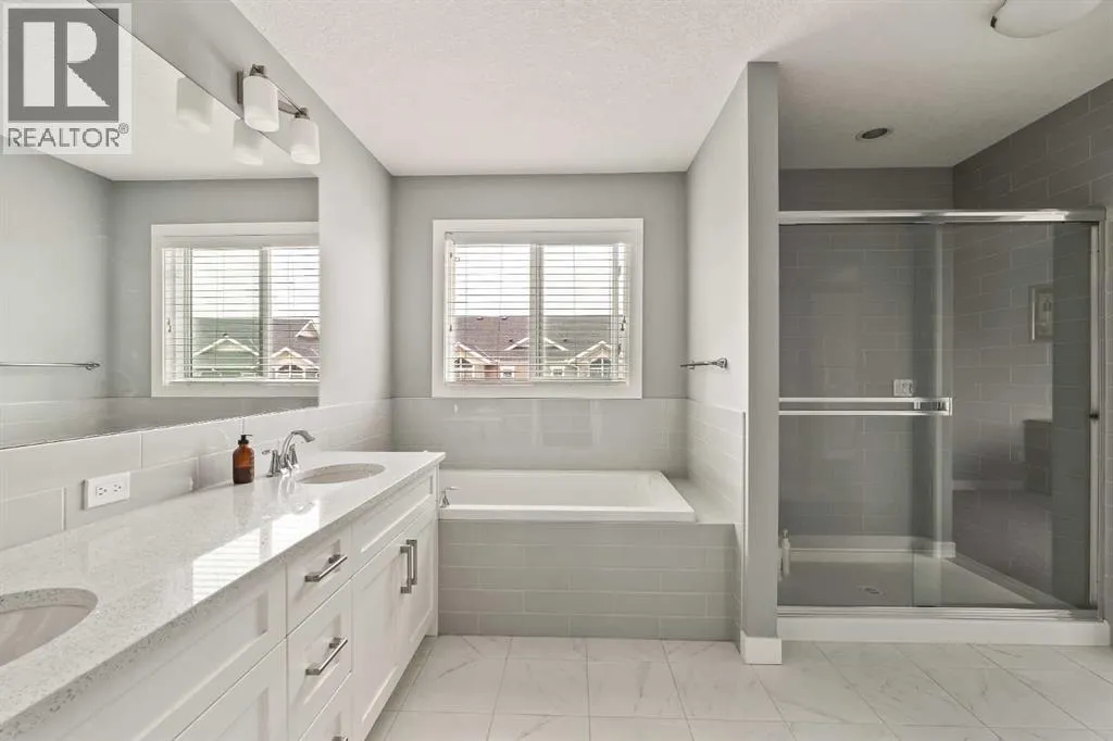 Welcome to this beautifully maintained Echo model by Sterling Homesâan inviting 2-storey residence offering 3 bedrooms, 2.5 baths, and nearly over 2,000 sq. ft. of thoughtfully designed living space.From the moment you step inside, the open-concept main floor sets the tone with its seamless blend of style and functionality. The kitchen showcases timeless white cabinetry, quartz countertops, a walk-in pantry, and recessed lighting that brightens every corner. Gather in the cozy living room anchored by a gas fireplace, or extend your entertaining outdoors with a pressure-treated deck just off the dining area.Upstairs, youâll find a bright bonus room with vaulted ceilings, perfect for family movie nights or a quiet retreat. The primary suite offers a spa-inspired ensuite with a quartz vanity, tiled shower, and deep soaker tub. Two additional bedrooms, a 5-piece bathroom, and a convenient laundry room complete the upper level.Additional features include a double attached garage, brand-new siding, shingles, and eaves (all updated this year), plus plenty of storage throughout the homeSet in the heart of Evanston, this home is only minutes from schools, shopping, parks, and major roadwaysâoffering the perfect balance of community living and urban convenience. Book your showing today! (id:27476)