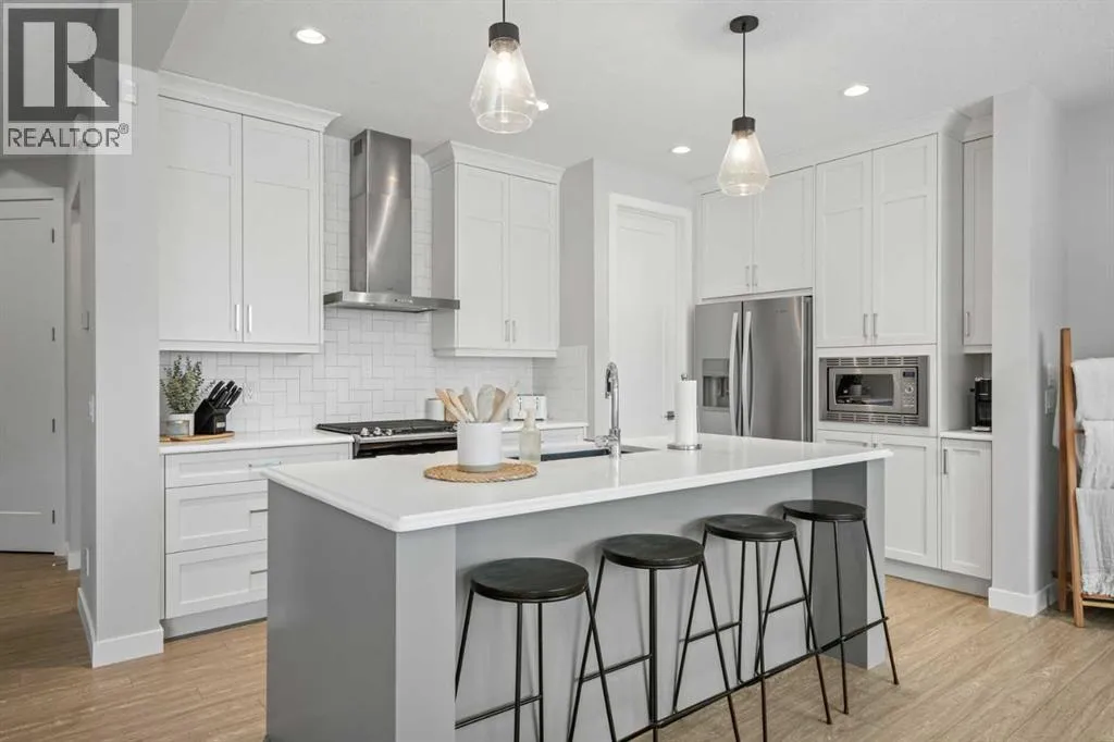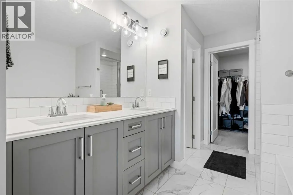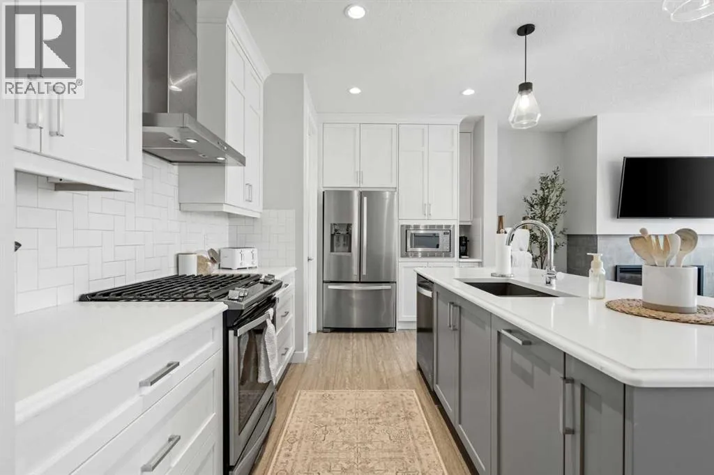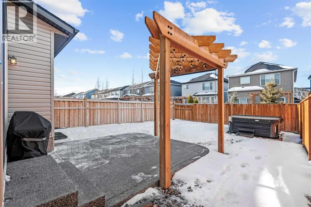 This beautifully maintained 4-bedroom, 3.5-bath home in the heart of Legacy offers over 2,700 sqft of thoughtfully designed living space, seamlessly blending comfort, style, and functionality. Step inside to the open-concept main floor featuring 9-foot ceilings, 8-foot doors, and durable LVP flooring, with a warm and inviting living room centered around a cozy gas fireplace. The chef-inspired kitchen is both elegant and practical, showcasing quartz countertops, eat up breakfast bar, stainless steel appliances, a granite sink, ceiling-height cabinetry, and a walk-through pantry leading to the mudroomâideal for everyday living and entertaining. Upstairs, three well-appointed bedrooms, a versatile bonus room, and convenient upper-floor laundry create a functional and family-friendly layout. The primary suite offers a true retreat with a luxurious 5-piece en-suite, private toilet room, walk-in closet, and refined finishes. The fully finished basement expands your living space with an additional bedroom, spacious recreation room, and full bathroom. Thoughtful upgrades include air conditioning, a water softener, and professionally installed Gemstone exterior lighting. Outside, the west-facing landscaped backyard is designed for relaxation and hosting, featuring an exposed aggregate patio and private hot tub. Ideally located close to everyday amenities, shopping, schools, and nearby golf courses, this move-in-ready home offers an exceptional lifestyle with comfort and convenience at its core. (id:27476)
