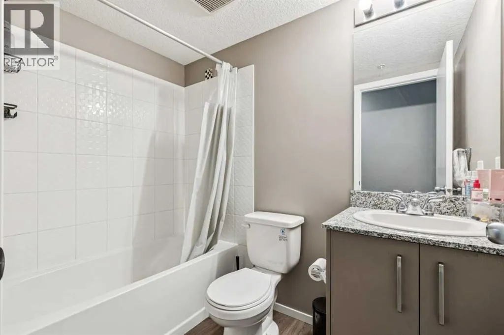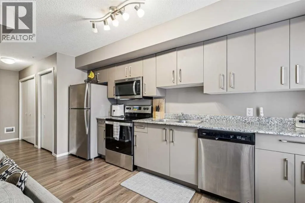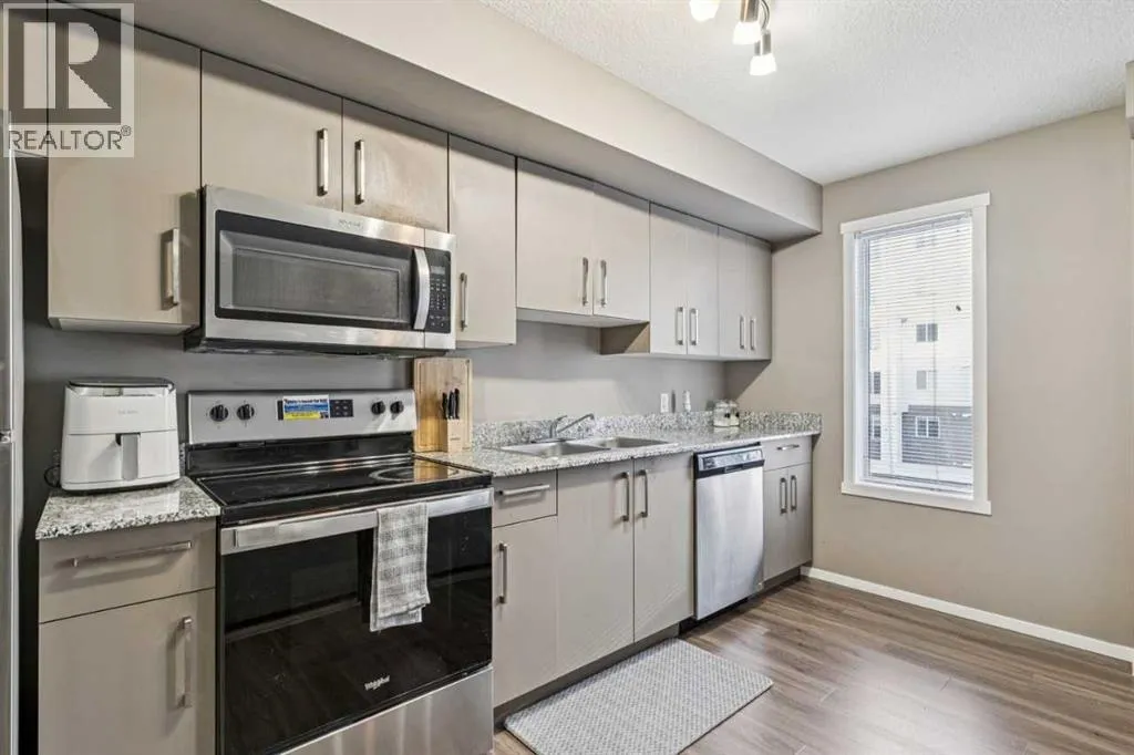 Welcome to this well-maintained apartment in the desirable community of Skyview Ranch. This bright and functional unit features titled heated underground parking, light-toned cabinetry, granite countertops, and a versatile den ideal for a home office or flex space. Enjoy mountain views from the private balcony. The professionally managed complex is pet-friendly (with board approval) and offers excellent amenities including two on-site fitness centres, recreation rooms available for booking, and ample visitor parking. (id:27476)