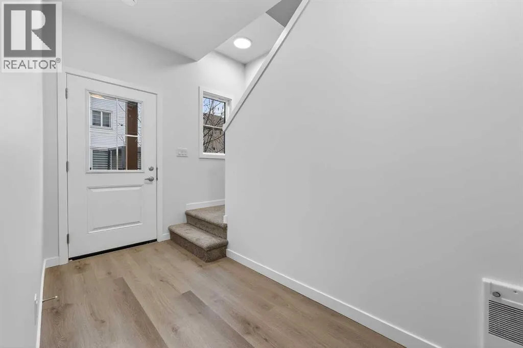 StreetSide proudly presents this highly desired interior-unit townhome that offers a sophisticated blend of expansive living space and elegant modern finishes. Designed with versatility in mind, the residence features four spacious bedroomsâincluding a convenient lower level bedroom ideal for guests or a home officeâand two and a half well appointed bathrooms. The heart of the home is an open-concept main floor that flows seamlessly onto a private balcony, perfect for indoor-outdoor entertaining. Culinary enthusiasts will appreciate the chef-inspired kitchen, which comes standard with modern white slab-style cabinetry, a full bank of storage drawers, polished white quartz countertops, and premium stainless steel appliances.The interior aesthetic is defined by contemporary durability, featuring luxury vinyl flooring throughout the primary areas and premium 8lb underlay carpet for added comfort on the stairs and upper level. Practicality meets luxury with a dedicated upper-level laundry room and an attached double car garage.Situated in the community of Rangeview, Calgaryâs premier garden-to-table neighborhood, residents enjoy a unique village-like serenity paired with urban vibrancy. The development is centered around a lush courtyard garden and provides unparalleled connectivity to community greenhouses, pathways, and local markets. With immediate proximity to major transportation routes, schools, and parks, this home offers the perfect balance of comfort and convenience. (id:27476)