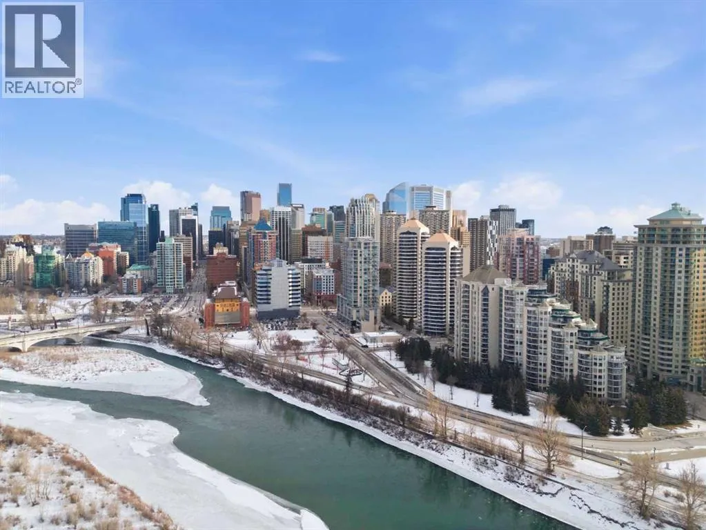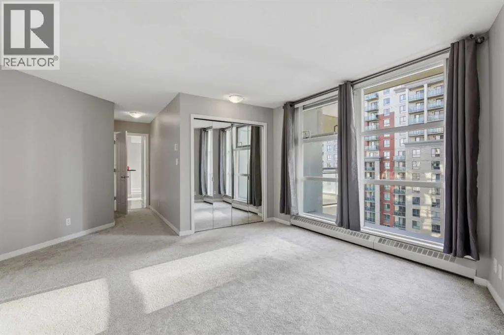 Welcome to Downtown's Westend! Enjoy abundant natural light through floor-to-ceiling, south-facing windows that brighten the entire unit. The primary bedroom features a well-appointed ensuite with a soaker tub, separate shower, and heated floorsâalso found in the second bathroom. You will appreciate the generous storage offered by two primary closets, including one walk-in.The open-concept living space showcases pristine Berber carpet and a versatile open den, ideal for a home office or reading area. The kitchen overlooks the dining space and is equipped with granite countertops, ample cabinetry, and sufficient room for two to work comfortably. A spare bedroom provides a welcoming option for guests, with convenient access to visitor parking.Additional features include one titled parking stall, party room, fitness centre, hot tub, and an exceptional location just one block from the C-Train, steps to Princeâs Island Park, and within walking distance to Kensington and downtown amenities. This is an excellent opportunity to live in a well-maintained building. Contact us today to book your private showing. (id:27476)