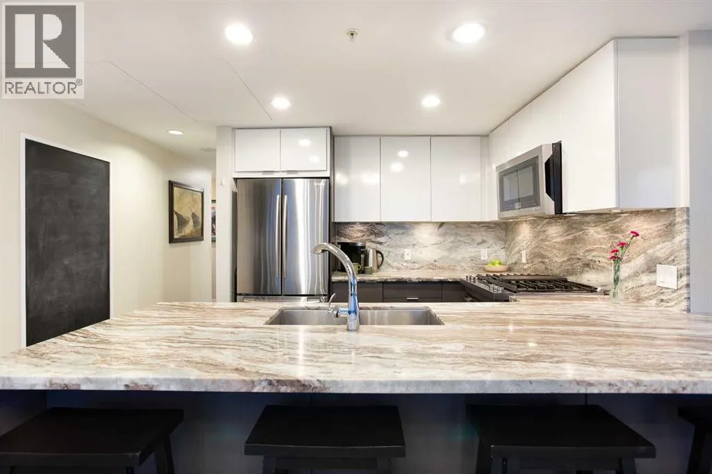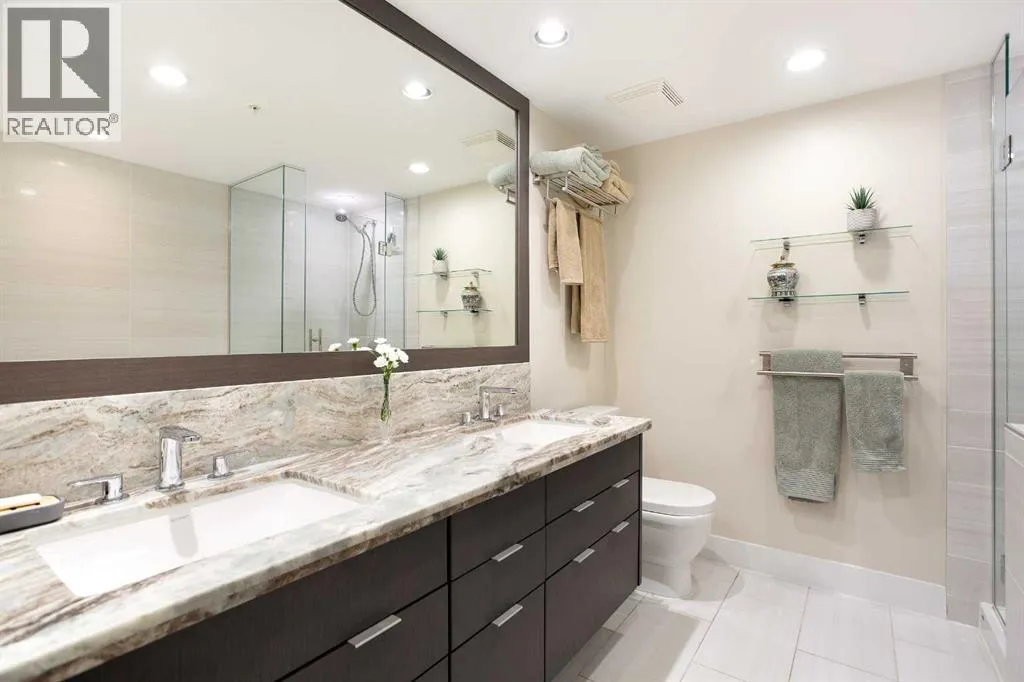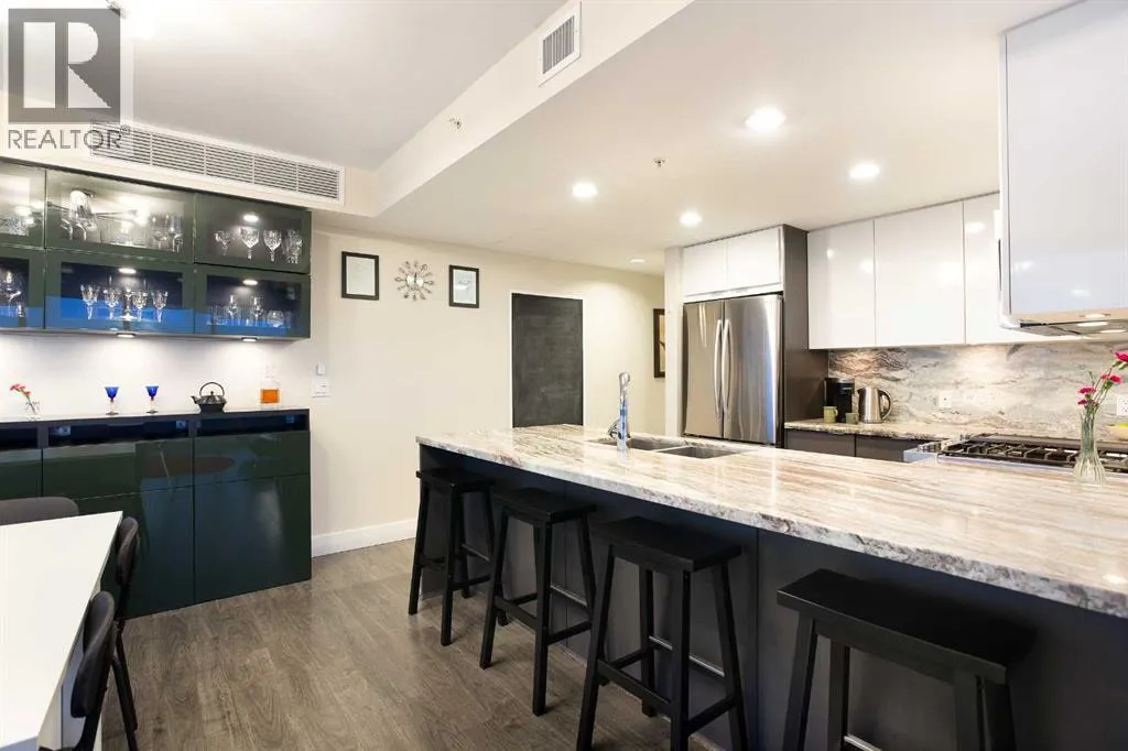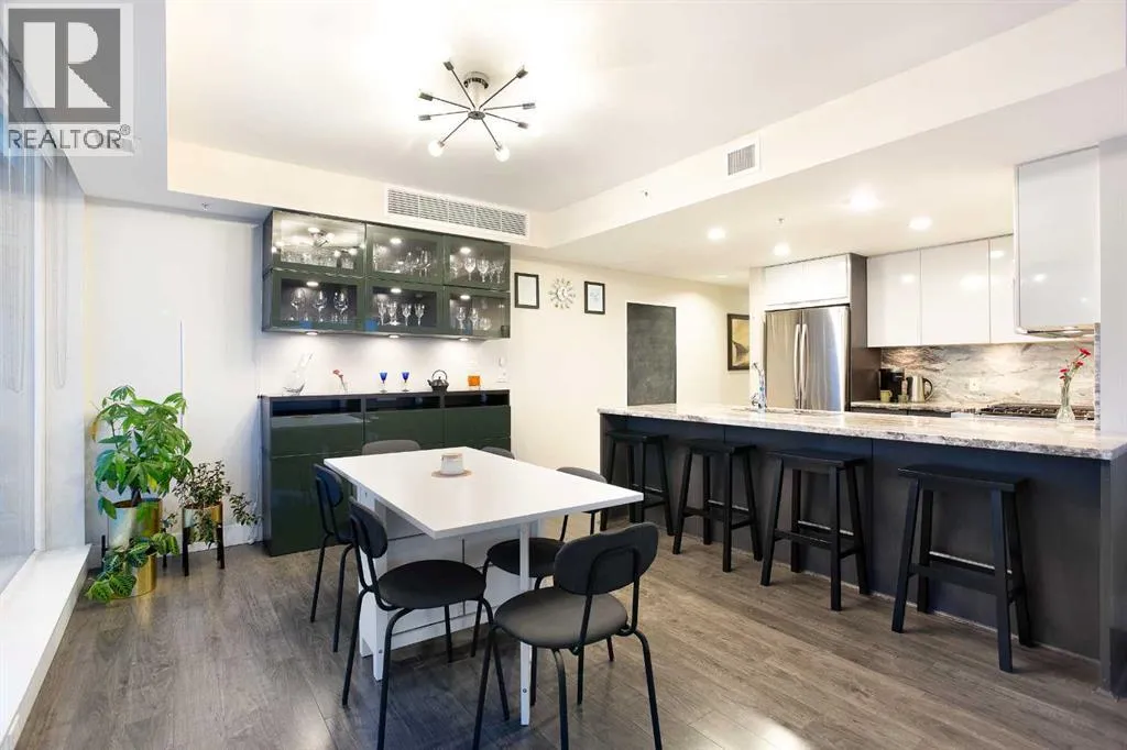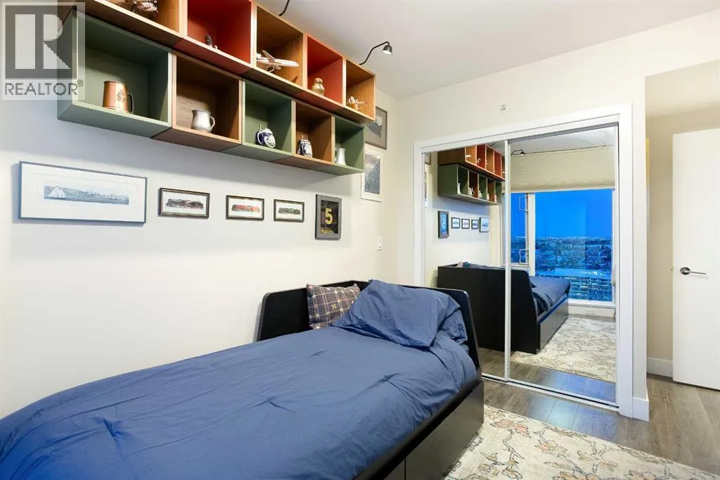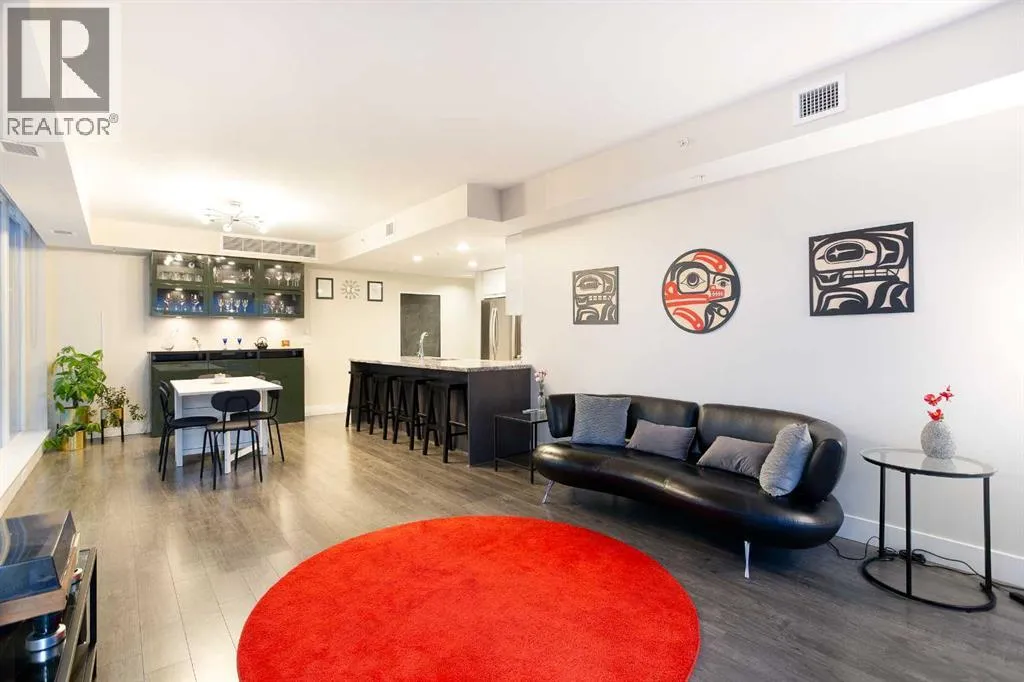 Experience refined urban living with breathtaking panoramic views from this luxurious 27th-floor residence in the coveted Evolution tower, located in Calgaryâs dynamic East Village. Offering over 1,100 sq. ft. of impeccably designed living space, this elegant home is bathed in natural light through floor-to-ceiling windows that frame sweeping city, river, and skyline views from the northwest to the southeast. The chef-inspired kitchen features granite countertops, premium stainless steel appliances, and a gas range, seamlessly flowing into the open living and dining areasâideal for both everyday living and sophisticated entertaining. The primary retreat showcases stunning Bow River views, a walk-through closet, and a spa-like 5-piece ensuite. A spacious second bedroom, full bathroom, private office/den, ensuite laundry, and two titled parking stalls complete the residence. Residents enjoy an exceptional lifestyle with 24-hour concierge, fitness centre with sauna and steam room, and an exclusive rooftop patio with BBQ. Just steps from the RiverWalk, St. Patrickâs Island, Central Library, and the cityâs finest cultural attractions, this is downtown luxury at its finestâwhere you drift off beneath the stars and awaken to the glow of the rising sun. (id:27476)