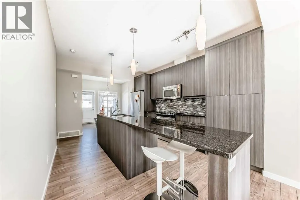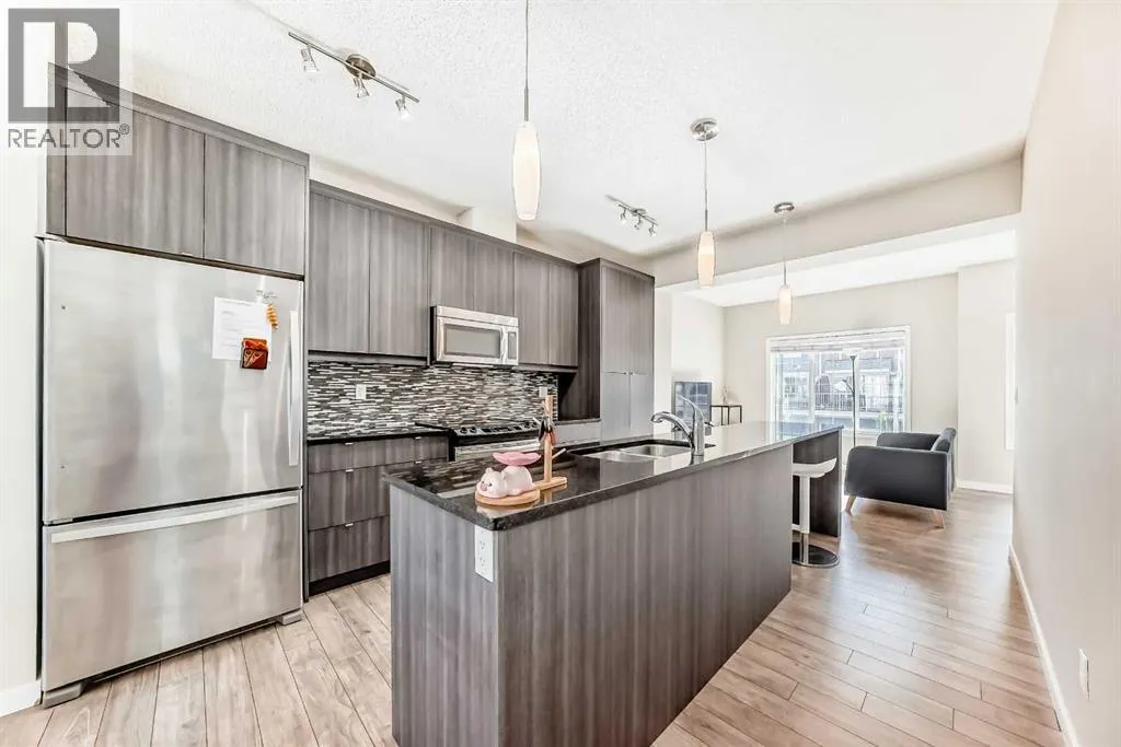 Welcome to this charming 2-bedroom plus den townhouse nestled in the picturesque lake community of Mahogany! Perfect for investors, first-time buyers, or those looking to downsize, this home showcases a modern open-concept design with 9-foot ceilings that seamlessly connect the living room, dining area, and chefâs kitchen. The kitchen is a standout, featuring sleek granite countertops with an extended island, stainless steel appliances, pantry, and ample storage. Step out onto the sunny balcony with gas line, ideal for barbecues and evening sunsets.Upstairs, youâll find two spacious primary bedrooms, each with its own ensuite and generous closetsâoffering privacy and convenience whether for family, roommates, or guests. A versatile den on the main floor adds extra flexibility for a home office, reading nook, or hobby space. Additional features include newer carpet upstairs, air conditioning, upstairs laundry, and a two-piece bath on the main floor.The tandem garage provides room for two vehicles or extra storage, with direct access to the back lawn, while the private driveway allows parking for a third vehicle. The well-managed complex is built with durable James Hardie siding and offers visitor parking close by.Enjoy all that Mahogany has to offerâfour-season lake access, a vibrant community center, playgrounds, walking paths, and trendy shops and restaurants nearby. This beautifully appointed townhouse is move-in ready and a great opportunity to experience the best of Calgaryâs premier lake community living. (id:27476)