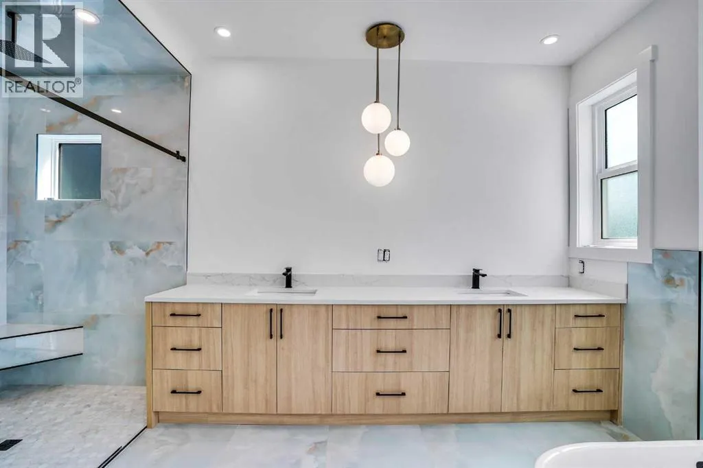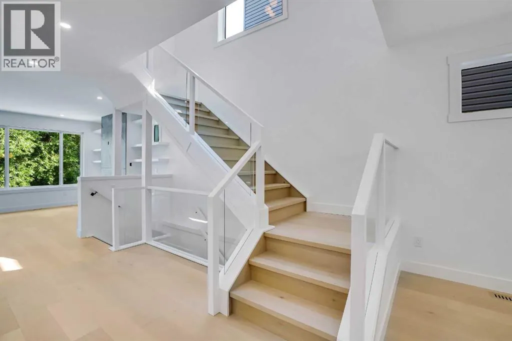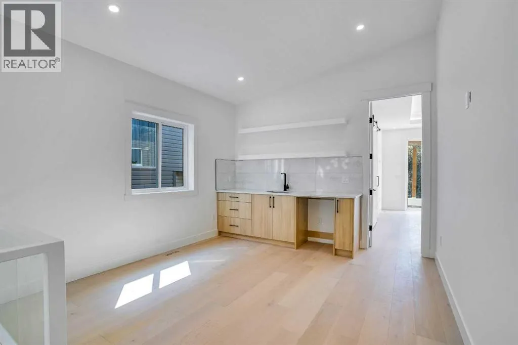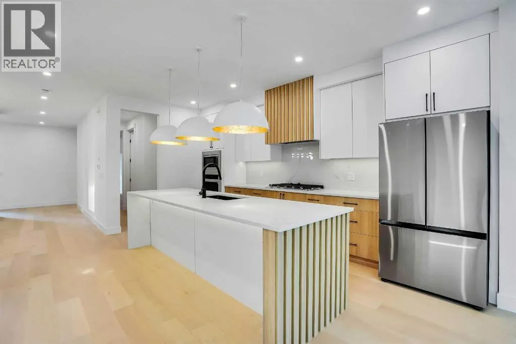 Welcome to this masterfully crafted semi-detached residence in the heart of Winston Heights, offering over 3,300 sq.ft. of sophisticated living space. The main floor immediately impresses with an expansive, sun-drenched open-concept design and wide-plank hardwood floors that lead into a gourmet chefâs kitchen anchored by a massive quartz social island. This sense of scale continues to the second floor, a truly versatile hub featuring a vaulted bonus lounge with a wet bar. The crown jewel is the primary suite, boasting a private south-facing balcony and a cozy deck equipped with a gas line for your fire pitâthe perfect spot for evening relaxation. The homeâs functionality is rounded out by a fully developed basement, ideal for a theatre or guest wing, providing a total of four spacious bedrooms. Beyond the property line, the location is truly premier: you are just a half-block from the Winston Golf Club, currently undergoing a prestigious "Coming Soon" major course renovation. This vibrant lifestyle is further enhanced by the Winston Heights-Mountview Community Association, located just steps away with its community gardens, winter ice rink, and year-round programming, all while being within easy walking distance to top-tier schools and expansive local parks. (id:27476)