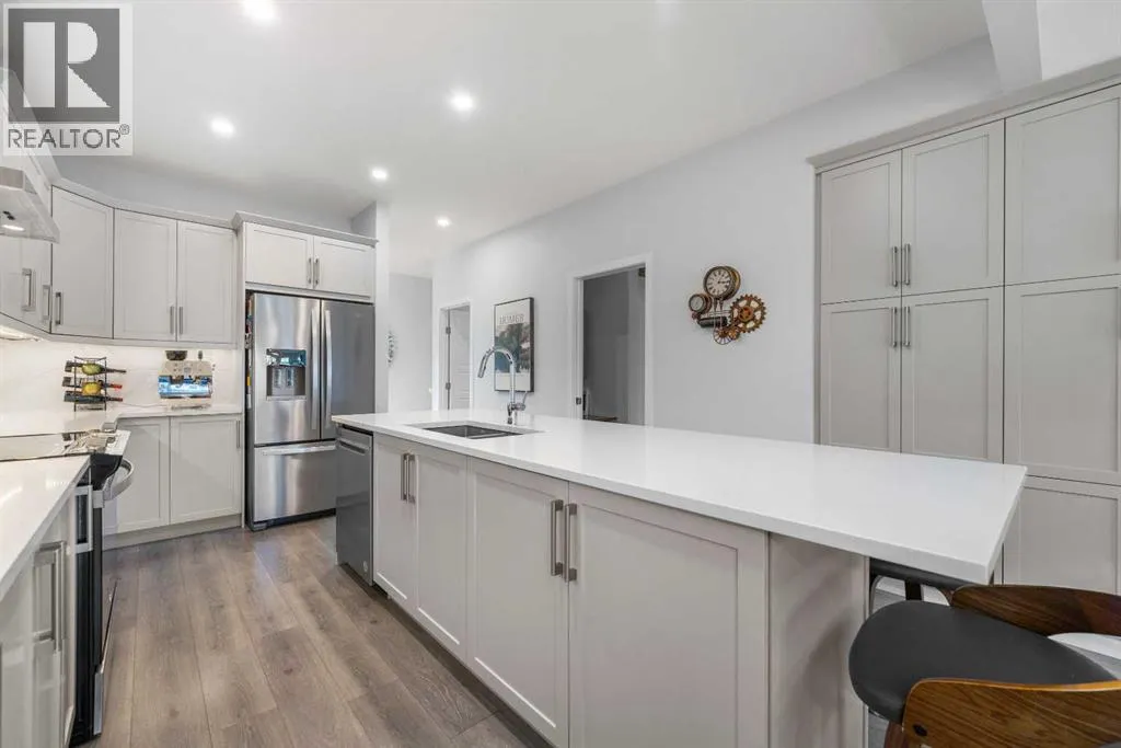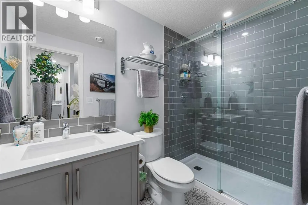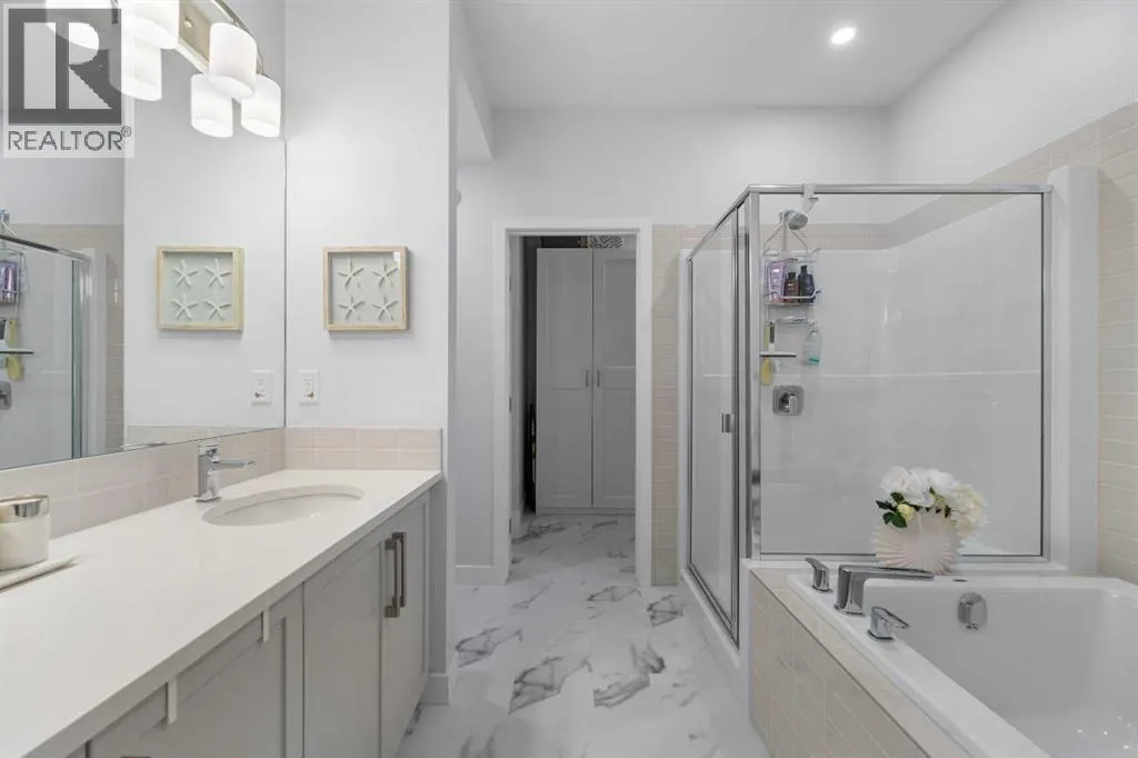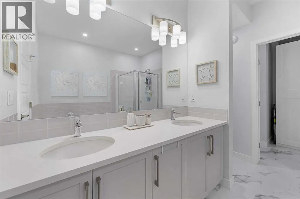 Welcome to THE STREAMS of Mahogany, a must-see lakeside complex community where everyday living feels elevated. Perfectly positioned directly on to the center park, this 3 bedroom bungalow duplex is set within a quiet and picturesque lake community offering an exceptional walking score. Scenic pathways, neighbourhood paths, and lush green spaces surround the home, while shops, services, and amenities are all just steps away. One of the most alluring features of this home is its peaceful setting and sun-filled mornings. Natural light pours in as the day begins, making coffee on the deck a refreshing daily ritual. The thoughtfully designed landscape and flowing water features enhance the overall vibe, creating a setting that is as calming as it is visually stunning. Inside, the floor plan is immediately inviting, showcasing soaring 9 foot ceilings and a spacious open-concept design. The kitchen is both striking and functional, featuring stone countertops, sleek stainless steel appliances, a large centre island, and an abundance of cabinetry. The living room is warm and welcoming, anchored by a modern electric fireplace and framed by beautiful windows. The primary bedroom is conveniently located off of the family room and offers and unforgettable ensuite that is nothing short of captivating. Dual vanities, a deep soaker tub, a stand-alone glass shower, and a generous walk-in closet. Throughout the home, youâll appreciate the exceptional number of cupboards and closets; a rare and valuable feature, especially in newer homes. The fully finished lower level adds versatility, offering a large entertainment and recreational space complete with a stylish bar area, effective acoustic insulation, and substantial additional storage. 2 spacious guest bedrooms and a full bathroom make this level ideal for hosting family and friends while maintaining privacy and comfort. Enjoy all the advantages of condo living without the annoyance of condo living - No elevators, noise, or parki ng frustrations. The double attached garage ensures year-round convenience, while the communityâs communal BBQ and gathering areas foster a welcoming sense of connection through neighbourhood events and casual social gatherings. Built with efficiency and sustainability in mind, this home includes solar panels, triple-pane windows, a high-efficiency furnace with MERV 13 filtration, UV-C air purification system, HRV, Navien tankless hot water, dual-zone heating, EV charging rough-in, and Built Green Canada certification â offering modern comfort and long-term peace of mind. This is a lifestyle defined by space, serenity, and sophistication. Welcome home! (id:27476)