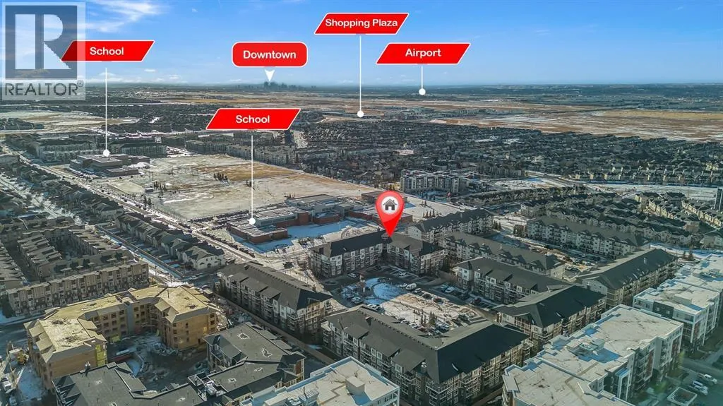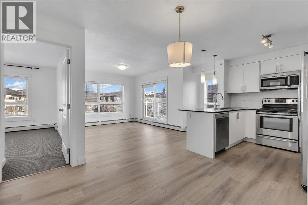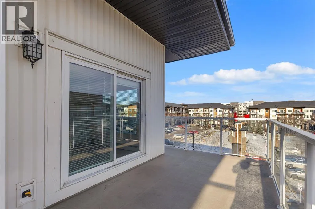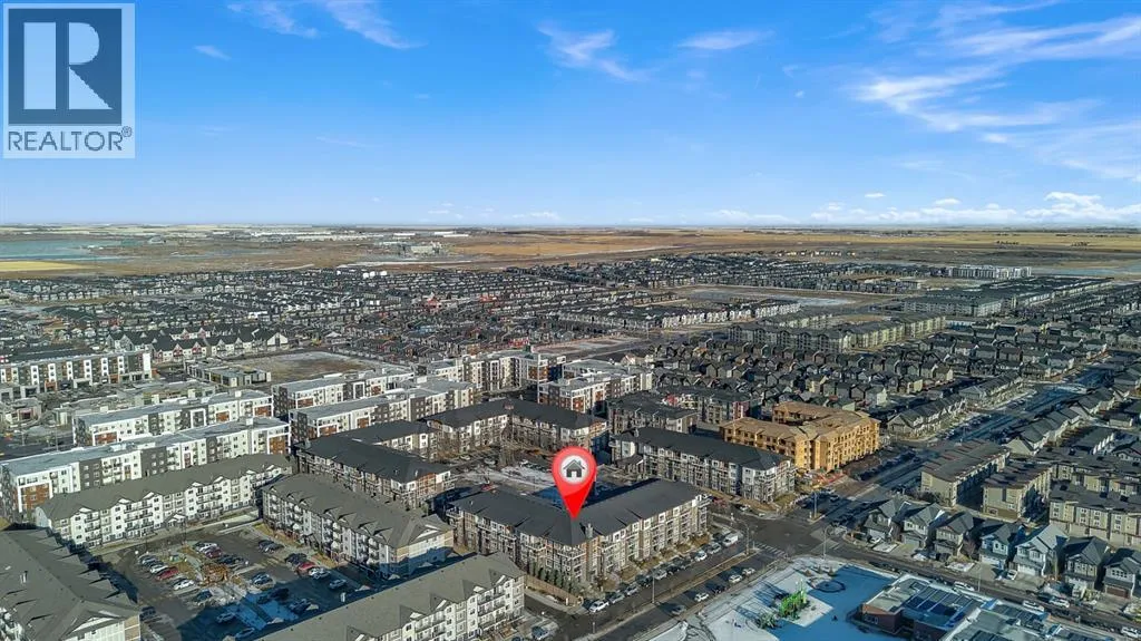 Welcome to this stunning top-floor corner penthouse offering exceptional privacy, natural light, and one of the largest private balconies in the complex. Perfectly designed for both relaxing and entertaining, the expansive 17â x 7â9â balcony delivers open views and all-day sunshine.Inside, youâll find a bright and spacious open-concept layout enhanced by oversized windows that flood the home with natural light. The modern kitchen features sleek cabinetry, stone countertops, and stainless steel appliances, seamlessly connecting to the living and dining areas.This well-appointed home offers two large bedrooms and two full 4-piece bathrooms. The primary suite includes a walk-in closet and a private ensuite, while the second bedroom and full bath are ideal for guests, family, or a home office.Additional highlights include in-unit laundry, titled underground parking, and assigned storage for added convenience. Built in 2015, the building showcases contemporary finishes and thoughtful design throughout.Ideally located in the vibrant community of Skyview Ranch, youâre just minutes from parks, schools, shopping, transit, Bus Stop 3 Min Walk and major roadways. This is a rare opportunity to own a penthouse-style unit that truly checks all the boxes. Donât miss out â welcome home! (id:27476)