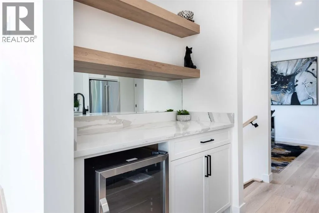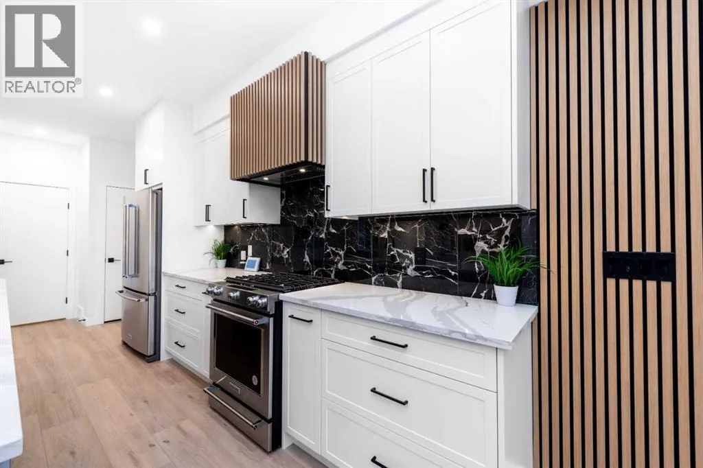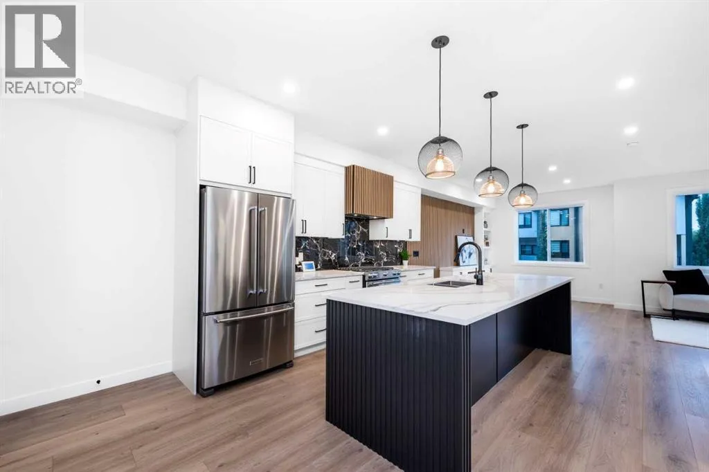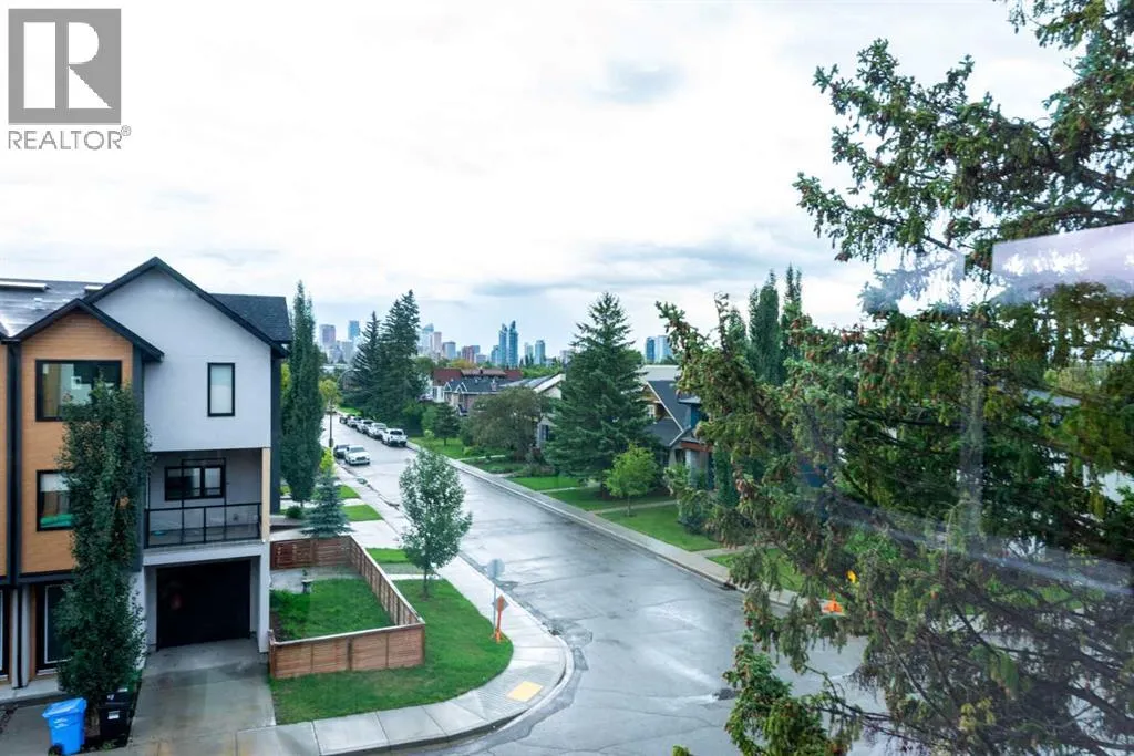 READY TO MOVE IN, BRAND NEW. Enjoy the skyline views of downtown Calgary at The Opal on Westmount â redefining luxury living in West Hillhurst. A modern contemporary Corner 3-story row home just steps from shops and cafés, the Bow River pathway, and the vibrant amenities of Kensington entertainment district. Designed for those who value elegance, functionality, and convenience, The Opal on Westmount offers a lifestyle thatâs deeply connected to nature and city life, all within walking distance to great schools, churches, transit, and outdoor recreational spaces. Situated on the corner of 23 Street and Kensington Road, this home offers unmatched convenience with quick access to downtown, Memorial Drive, and Crowchild Trail. Spanning 1,916 square feet of living space, this townhome is meticulously designed to accommodate active and professional lifestyles. The entry level features a access to the garage and a versatile flex room; ideal for an office, home gym or storing bicycles, skies, and sporting equipment. The main floor has an open-concept layout, starting with a beautiful spacious living room with views of the skyline that features an electric fireplace and a wood slate acoustic feature wall. The gourmet kitchen is designed for entertaining with an 10 ft island that can easily seat 4, shaker-style cabinets, a custom wood-slate hood fan, upgraded kitchen aid appliances, a gas range, and 2 pantries perfect for storage. Lastly, the main floor features a spacious dining area and south-facing windows that bring in ample natural light. The top floor is designed for comfort. The primary bedroom has a vaulted ceiling and features views looking out towards the green hiking trails along the river and Edworthy park. A walk-in closet is hidden behind a pocket door, while the 4-piece ensuite boasts a standing shower and double sinks on an 7 ft vanity, with custom double mirrors on a timeless wallpaper. Two additional well-sized bedrooms that have views of downtown Calgary, a 4-piece main bathroom, and a convenient top-floor laundry complete the space. Throughout the home, contemporary finishes and premium materials add a touch of understated elegance. Sustainability meets convenience as the home is roughed-in for solar panelling and electrical vehicle charging, providing future-forward solutions for todayâs homeowners. Outside, the low-maintenance landscaping is practical as it is beautiful with greenspace and a tiled patio with a BBQ gas line. Move in ready! Book your private showing today. (id:27476)