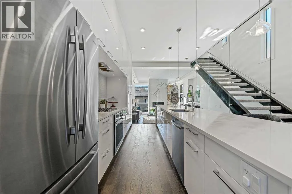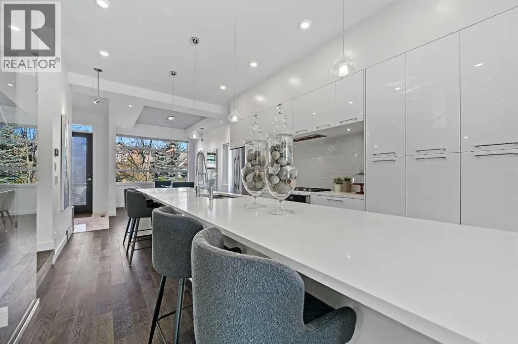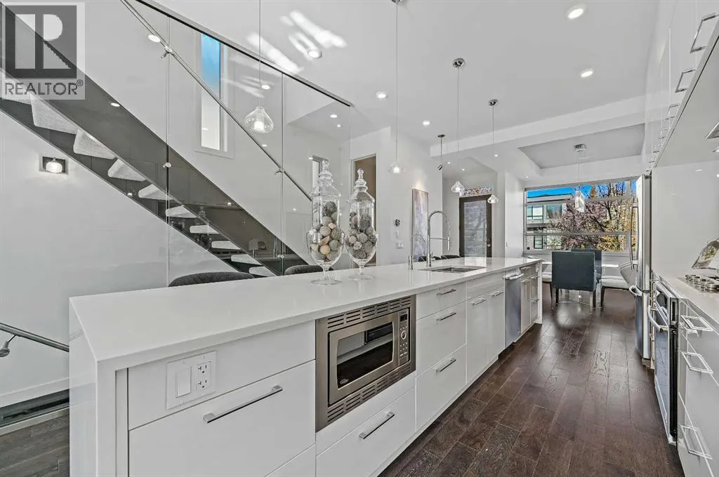 *** OPEN HOUSE Saturday, Feb 14, 2026 2pm â 4pm *** This stunning modern home in West Hillhurst, designed and built by Deanmark Custom Homes, blends European-inspired architecture with the comforts of luxurious urban living. Every detail reflects quality, comfort, and thoughtful design â from the creative open-concept layout that maximizes space and natural light, to the oversized ceiling heights and use of modern, natural, and durable finishes throughout. The main floor features gleaming hardwood and a centerpiece kitchen with a gas cooktop, built-in convection oven, quartz countertops, custom cabinetry, and a large island perfect for hosting. The kitchen opens into a bright, south-facing family room with a tile-wrapped gas fireplace and flows effortlessly to the low-maintenance south backyard. A detached garage includes an EV fast charger, ideal for eco-conscious city living. Upstairs, the spacious primary suite is a serene escape with a walk-in closet and luxurious 5-piece ensuite featuring in-floor heating. Two more bedrooms, a 4-piece bath, and a laundry room with a sink complete the upper level. The fully finished basement is great for guests and entertaining â enjoy the wet bar with fridge and microwave, a 4th bedroom, and a spa-style bathroom with steam shower. Additional features include A/C, vacuflo, water softener, filtration system, and roughed-in basement in-floor heat. Energy-efficient 9.8 kW solar panels make this home future-ready. All of this in a prime location just minutes to downtown, the Bow River, and endless walking and biking paths. This home is a must see to appreciate the quality of the home. (id:27476)
