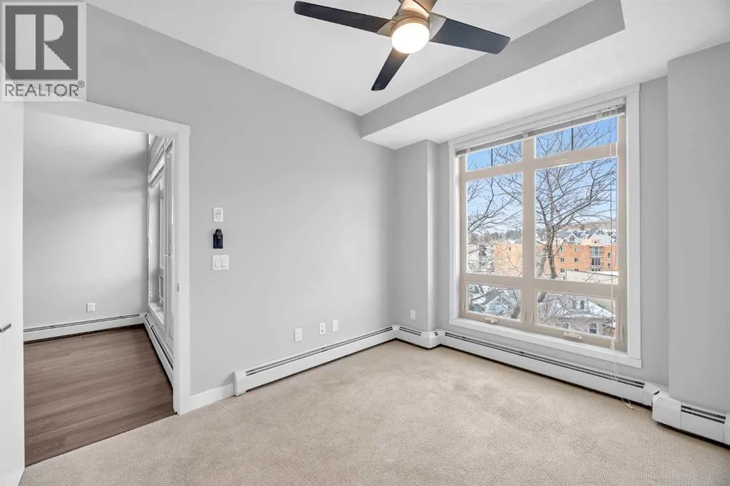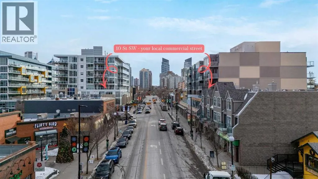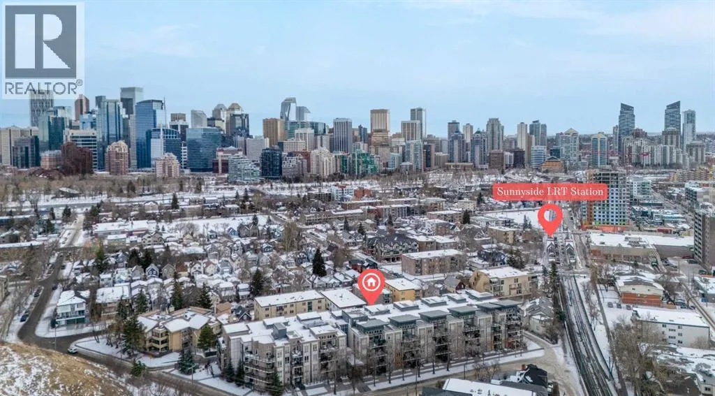 Welcome to urban sophistication in the heart of Sunnyside. This beautifully appointed single bedroom penthouse unit offers the perfect blend of modern design, functionality, and inner-city convenience. Step inside to discover soaring ceilings and expansive windows that flood the space with natural light, creating an open and airy atmosphere rarely found at this price point.The thoughtfully designed living area easily accommodates full-sized furnishings, making it ideal for both everyday living and entertaining. Clean contemporary finishes, warm flooring, and a neutral palette provide a timeless backdrop to suit any style. The open-concept layout flows seamlessly, maximizing space and comfort while maintaining a sense of separation where it matters. Be amazed by the near new condition, assigned storage locker, titled parking, wash bay in the parkade and workshop for your bike tune ups.Situated just steps from Kensington, Sunnyside LRT, boutique shops, cafés, and river pathways, this location offers effortless access to downtown Calgary while preserving a vibrant neighbourhood feel. Whether youâre a professional, downsizer, or investor, this home delivers exceptional value in one of Calgaryâs most walkable and desirable communities. (id:27476)