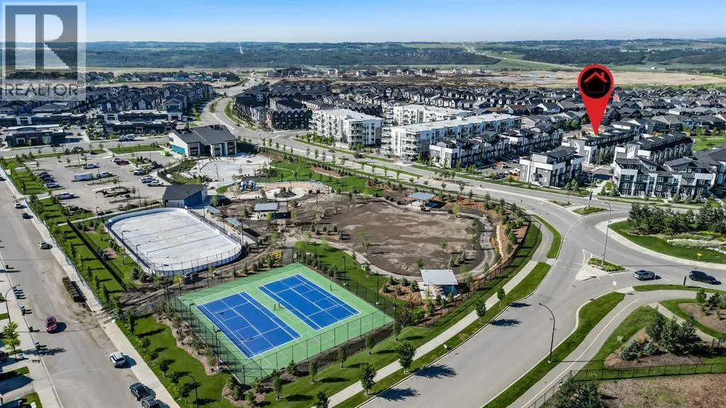 Welcome to your dream townhome in vibrant and walkable Setonâa master-planned urban community where lifestyle and convenience come together. Offering over 1,600 square feet of thoughtfully designed living space, this stunning 3-storey home with a double attached tandem garage is perfectly situated just steps from greenspaces, shops, restaurants, and some of Calgaryâs best amenities. From the moment you enter the complex, youâre greeted by a charming tree-lined pathway, accented by soft lighting and manicured greenspace, leading to your front entrance. A raised cement porch with classic wrought iron railing provides a warm welcome to this beautifully elevated residence. Inside, youâll discover a spacious open-concept main floor that balances both comfort and style. The inviting living room flows effortlessly into the designated dining space, creating a perfect setting for family dinners and entertaining guests. Adjacent to the dining area is a casual breakfast bar for quick meals or cozy conversations over coffee. The chef-inspired kitchen showcases stunning quartz countertops, rich cabinetry, stainless steel appliances, and a functional pantry to keep everything within reach., while a stylish 2-piece powder room is tucked away at the rear, along with a quaint balconyâideal for your morning coffee or evening wind-down. Upstairs, you'll find two generous bedrooms strategically located on opposite ends for privacy and enhanced natural light. The Primary Suite is a peaceful sanctuary featuring a walk-in closet and a private 4-piece ensuite and the second bedroom is equally spacious, bright, and invitingâperfect for family, guests, or a home office. Custom blinds by Blindsgalore add privacy and light control throughout the home. An additional full bathroom and upper laundry offer convenience and functionality. Saving the best for lastâthe top-level Bonus Room delivers a true wow factor. Featuring a custom bar area with built-in wine cooler, this flexible space is perfec t for entertaining, movie nights, or simply relaxing after a long day. From here, step out onto your private rooftop terraceâa rare and remarkable feature that transforms your home into a vacation-like getaway. Whether youâre hosting friends under the stars or enjoying a tranquil moment alone, this rooftop haven is the showstopper you never knew you needed. To complete this home the ground level offers access to your double tandem attached garage, providing secure parking for two vehicles and ample storage space. Located in the heart of Seton, this home is surrounded by everything you need: South Health Campus, Seton Urban District with restaurants, shops, cafés, and a movie theatre. The largest YMCA in North America, new parks, schools, and future LRT access. A community filled with vibrant energy and ever-growing amenities. A park and playground are mere steps from your front door. Donât miss your chance to live in a townhome that offers the space, style, and rooftop luxury youâve been dreaming of! (id:27476)