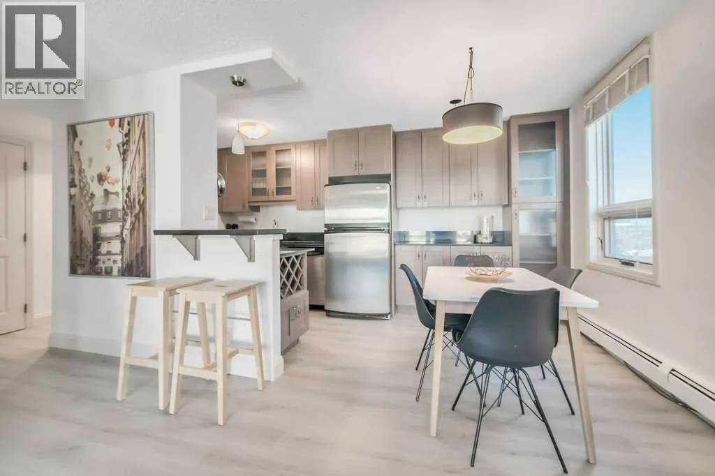 The Ultimate Turn-Key Urban Sanctuary at Centro 733 | 8th Floor Views & All-Inclusive Living. Where sophisticated modern design meets the effortless energy of downtown living in the heart of Calgaryâs most vibrant districtâthe Beltline. This isnât just a condo; it is a meticulously maintained executive residence that offers an unparalleled lifestyle for the urban professional or a high-yield opportunity for the savvy investor. Positioned on the 8th floor, this bright, north west-facing corner unit is flooded with natural light through expansive windows, framing breathtaking city skyline views that transform into a sparkling backdrop of lights every evening. The thoughtfully designed open-concept layout features two spacious bedrooms and 1.5 bathrooms, maximizing both private comfort and social functionality. The primary suite serves as a quiet retreat, complete with a private 2-piece ensuite for added convenience. The secondary bedroom is perfectly versatile, ready to serve as a guest room, or a dedicated home office for those who work remotely. At the heart of the home lies a stylish gourmet kitchen that will delight any chef, featuring sleek granite countertops, custom cabinetry, a built-in wine rack, and a raised breakfast bar. A newer electric stove complements the high-end stainless steel appliances, while brand-new luxury vinyl plank flooring flows throughout the entire unit, providing a modern, durable, and cohesive aesthetic. Every wall has been freshly painted creating a move-in-ready space that feels brand new from the moment you step through the door. What sets this property apart is the incredible value and simplicity it offers. In an era of rising costs, you can enjoy total peace of mind with a monthly condo fee that is truly all-inclusive. Your heat, water, and electricity are all covered, allowing for predictable monthly budgeting with no hidden surprisesâyou know exactly what your living costs are every single month. Furthermore, this is a rare "plug -and-play" real estate opportunity. To make this transition even more seamless, the owner can offer the property fully furnished. From the stylish furniture and curated decorations down to the very last kitchen utensil, everything could be included in the sale. For a first-time homebuyer, this means moving in with nothing but a suitcase. For the investor, this unit is primed to launch as a high-end executive rental from day one. Beyond the unit, residents enjoy access to an onsite fitness center, a social room for gatherings, secure storage lockers, and optional private bike storage. The building is pet-friendly. Outside your door, the best of Calgary awaits. You are mere steps from the iconic 17th Avenue, home to the cityâs trendiest cafés, award-winning restaurants, boutique shops, and lush urban parks. Whether you are commuting to the downtown core on foot, biking along the extensive pathway system, or enjoying a night out at a local pub, everything you need is within reach. Come on buy! (id:27476)