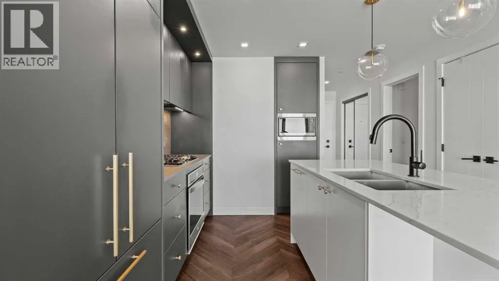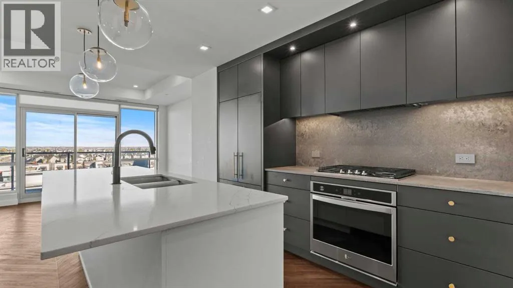Welcome to Gateway by Truman in Calgaryâs premier West Districtâwhere modern design meets urban convenience. This beautifully designed 2-bedroom, 2-bath condo offers 756 sq. ft. of elegant living space plus a private balcony off the living area, perfect for relaxing or entertaining outdoors.Step inside to an open-concept layout featuring a stunning designer kitchen with quartz countertops, full-height cabinetry, and built-in appliances that blend seamlessly into the space. The spacious living room flows naturally onto the balcony, allowing abundant natural light through large windows.The primary suite offers a walk-in closet and a luxurious 3-piece ensuite, while the second bedroom is ideal for guests or a home office, paired with a full 4-piece bathroom.Enjoy the comfort of air conditioning, in-suite laundry, and underground titled parking. The building also features an impressive lobby, retail shops on the main level, and nearby amenities including restaurants, grocery stores, and fitness studiosâall just steps away.Situated in one of Calgaryâs most sought-after communities, this condo delivers the perfect balance of lifestyle, luxury, and locationâjust minutes from downtown and surrounded by parks, pathways, and mountain views. (id:27476)